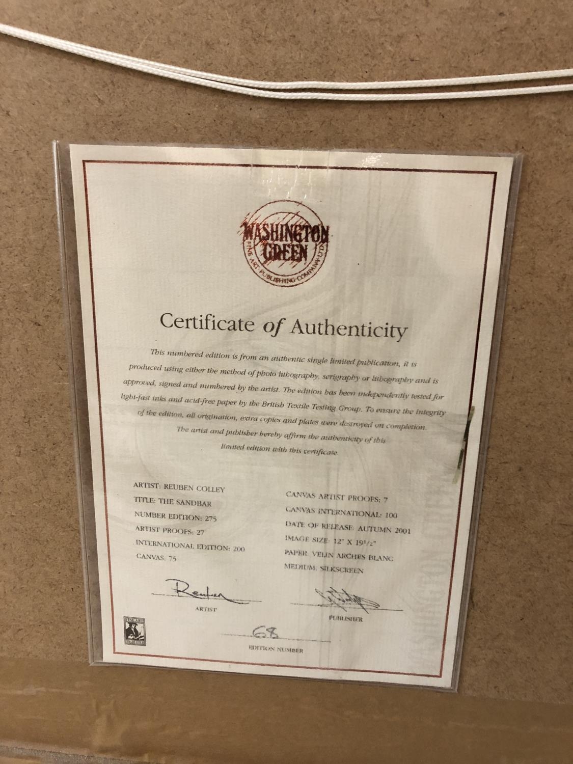 Ruben Colley (b.1976) - 'The Sandbar', signed limited edition silkscreen print on velin arches blanc paper, signed, titled and numbered 68/275 in pencil below, together with Certificate of Authenticity attached verso, 30 x 49 cm, mounted, framed and glazed