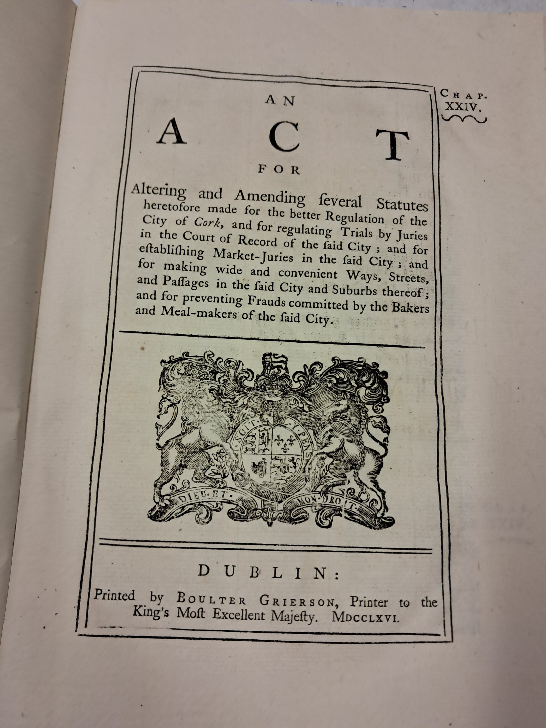 A 1776 Act for Altering and Amending Feveral Statues for the better Regulation of The City of Cork