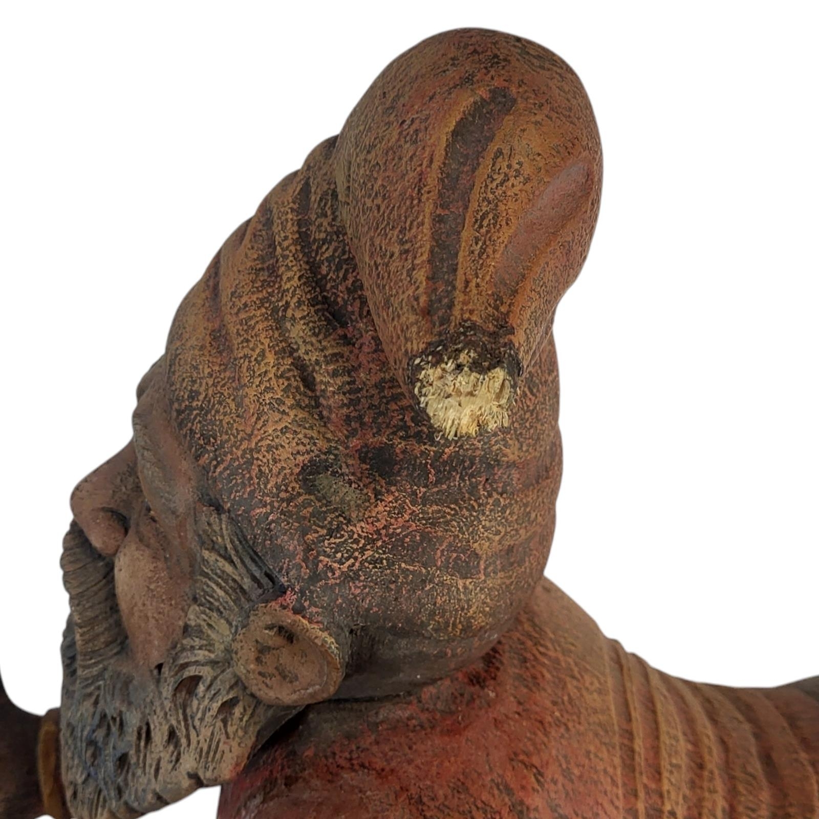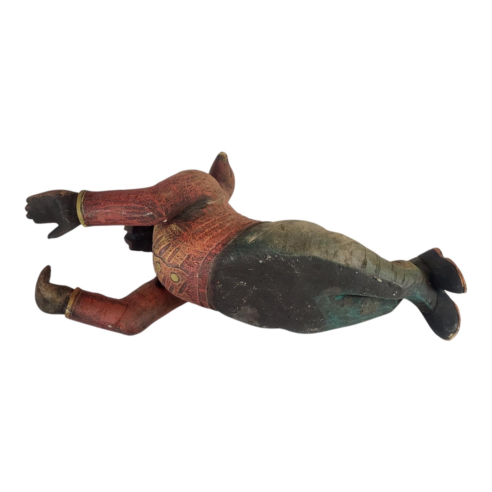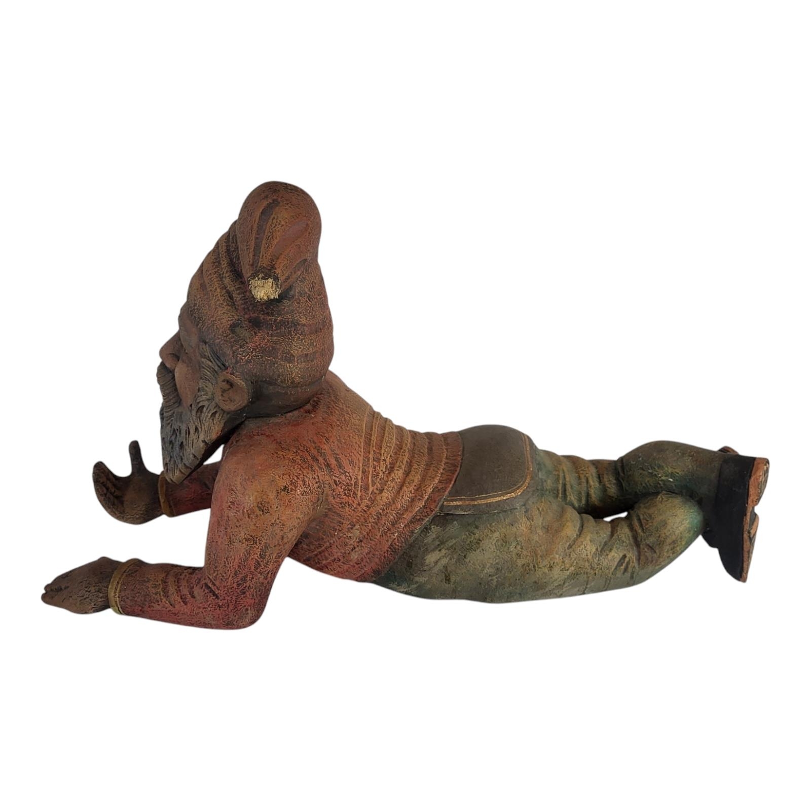 A 20TH CENTURY DECORATIVE WOOD COMPOSITION MODEL OF A GARDEN KNOME RESTING