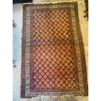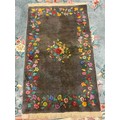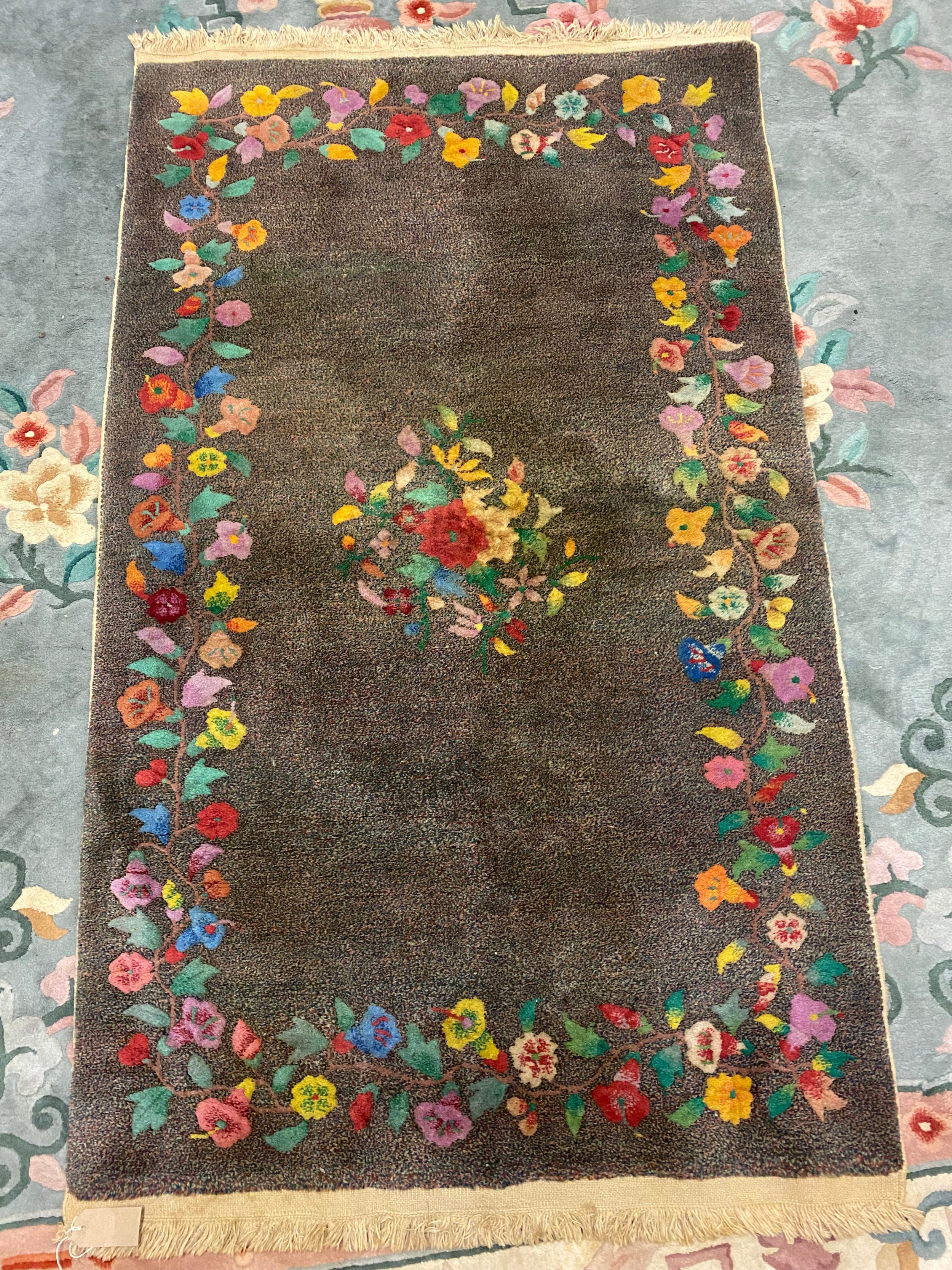 A 1930's rug, multi brown field with floral decorated border, fringed - 57in. x 35in.