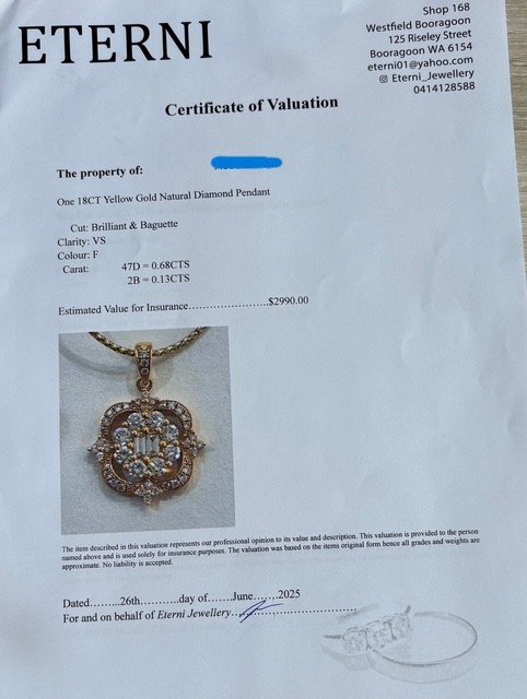 18 Ct Yellow Gold Natural Diamonds pendant. F colour & VS clarity