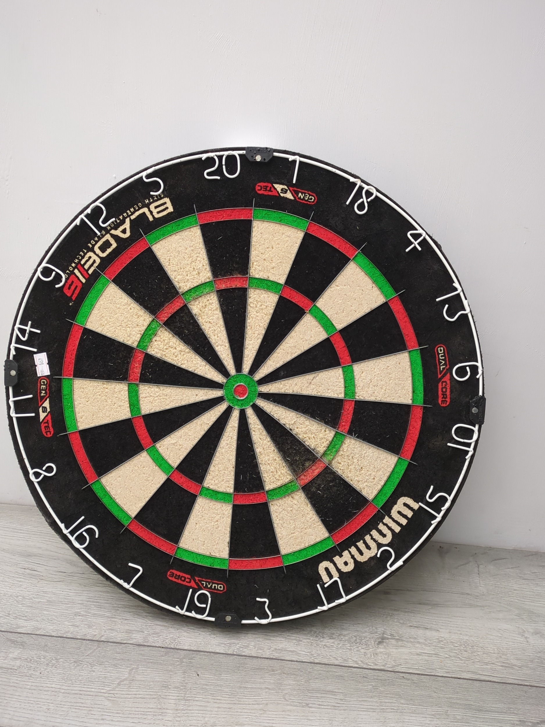 The Winmau Blade 5 dartboard is designed with a traditional style, featuring a high-contrast colour scheme for clear visibility. It utilises dual core technology for enhanced durability and performance, making it suitable for both casual play and competitive use. The numbers around the edge are clearly marked, and the materials used appear durable and well-constructed for outdoor or indoor setups.