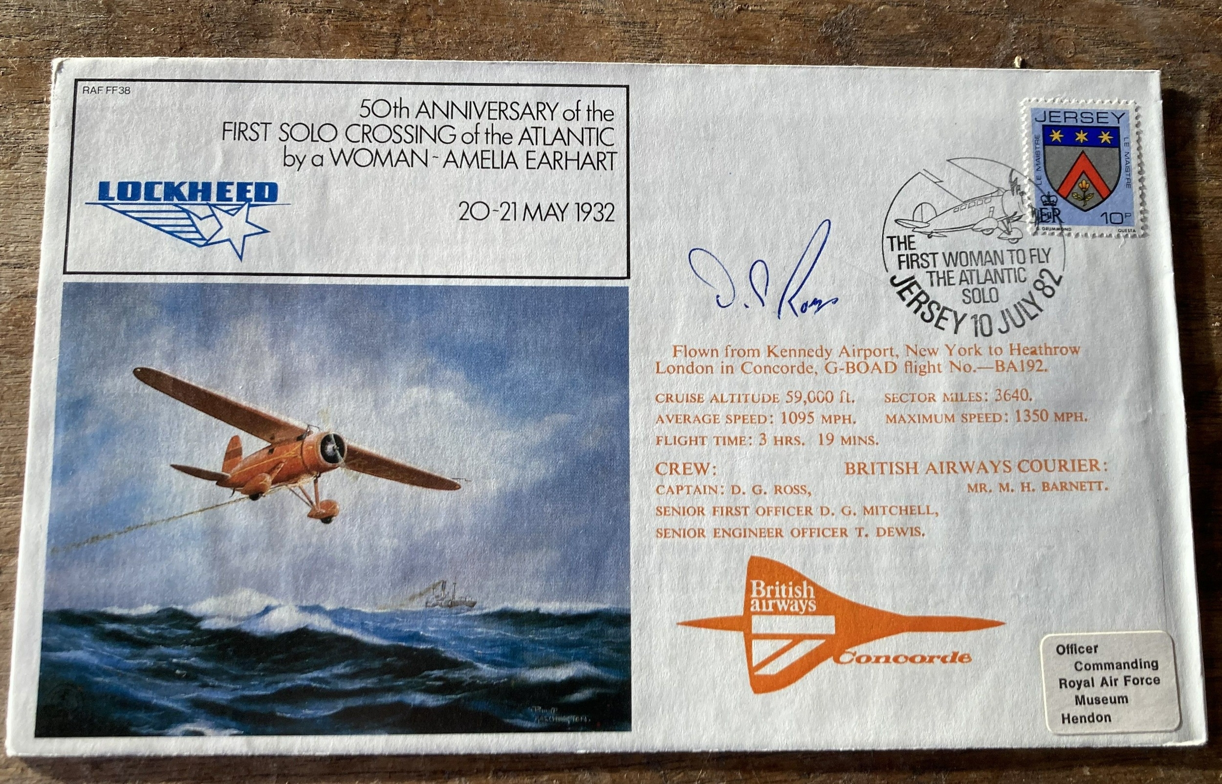 RAF FF38 - 50th anniv of the First Solo Crossing of the Atlantic By a Woman - Amelia Earhart 20-21 May 1932 signed by Capt D G Ross Jersey Jul 82 signed RAF FDC. Single Vendor collection. Good condition. We combine postage on multiple winning lots and can ship worldwide. UK postage from £5.99, EU from £7.99, Rest of World from £9.99.