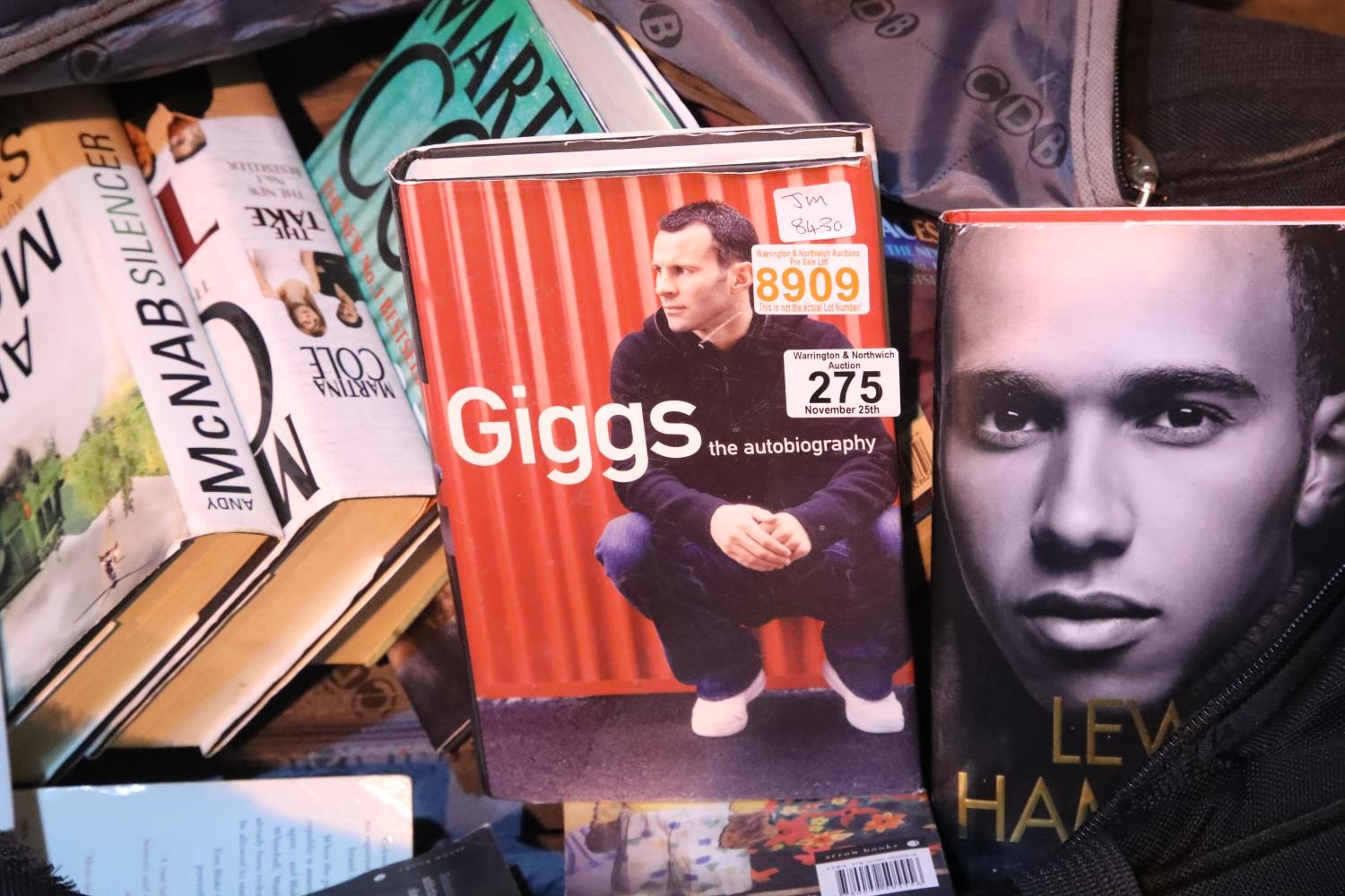 Black holdall containing a quantity of hardback volumes including autobiographies, Ryan Giggs, Lewis Hamilton etc. Not available for in-house P&P