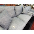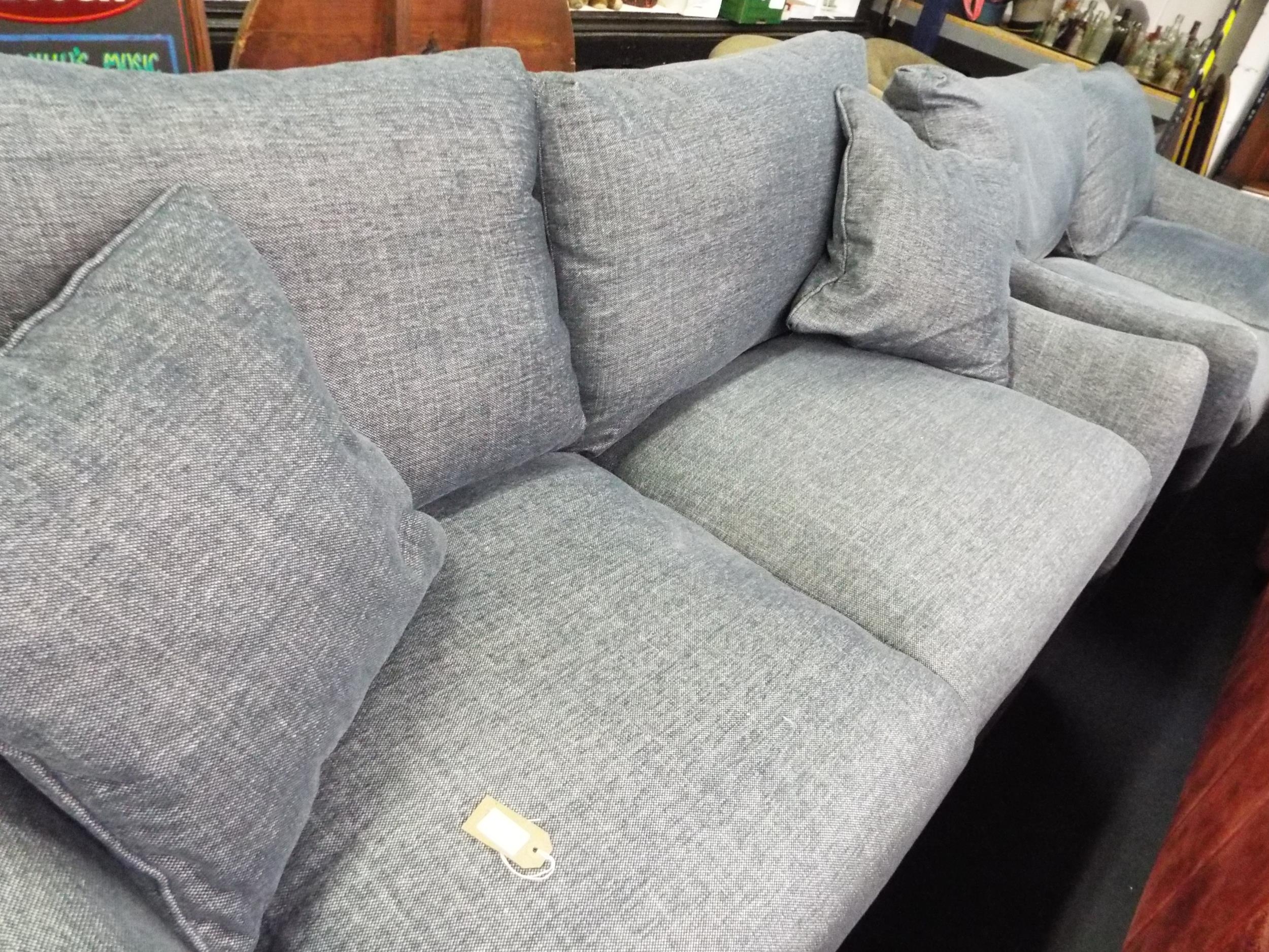 A pair of good quality three seater settees in blue and white fleck colourway