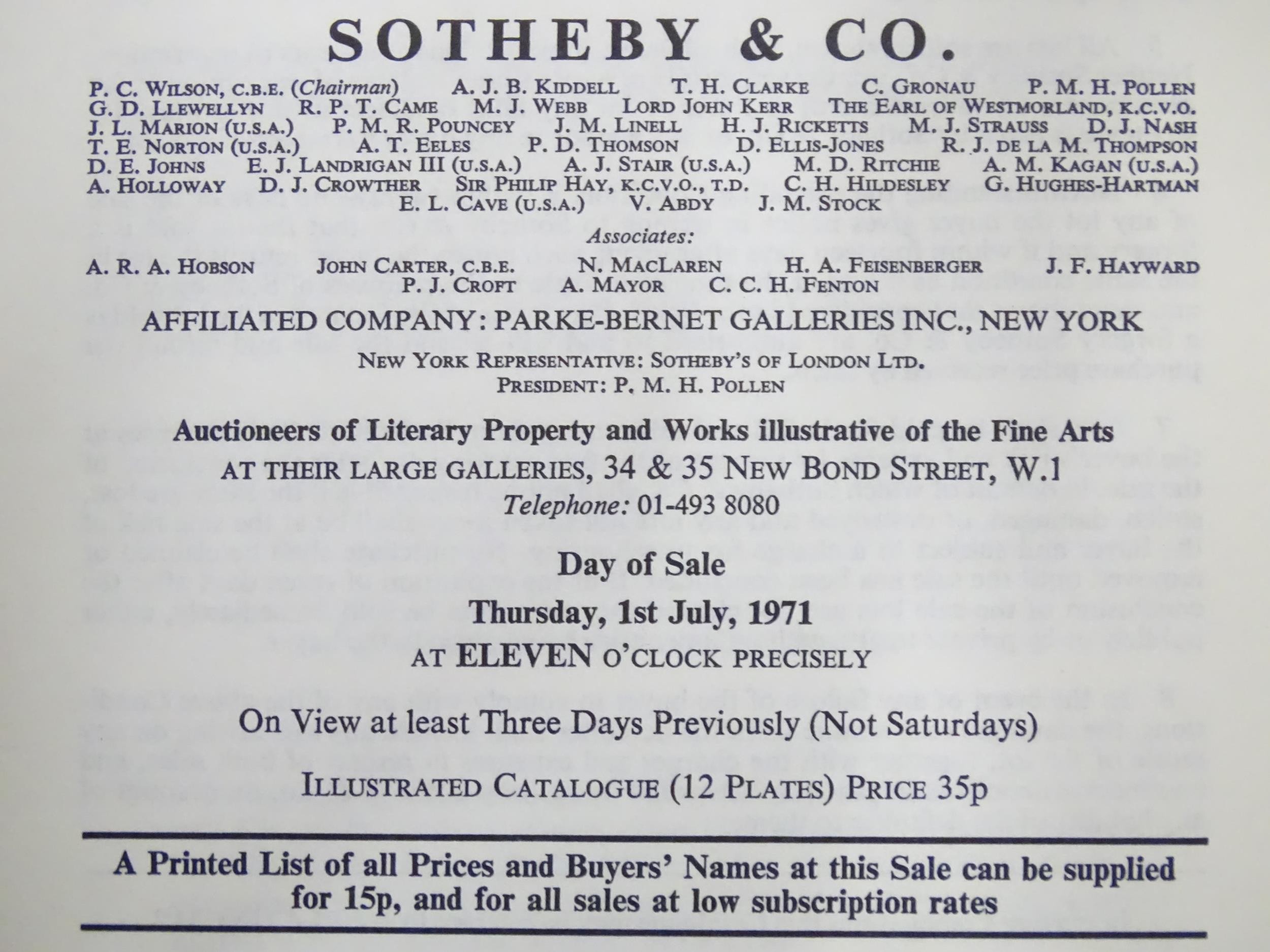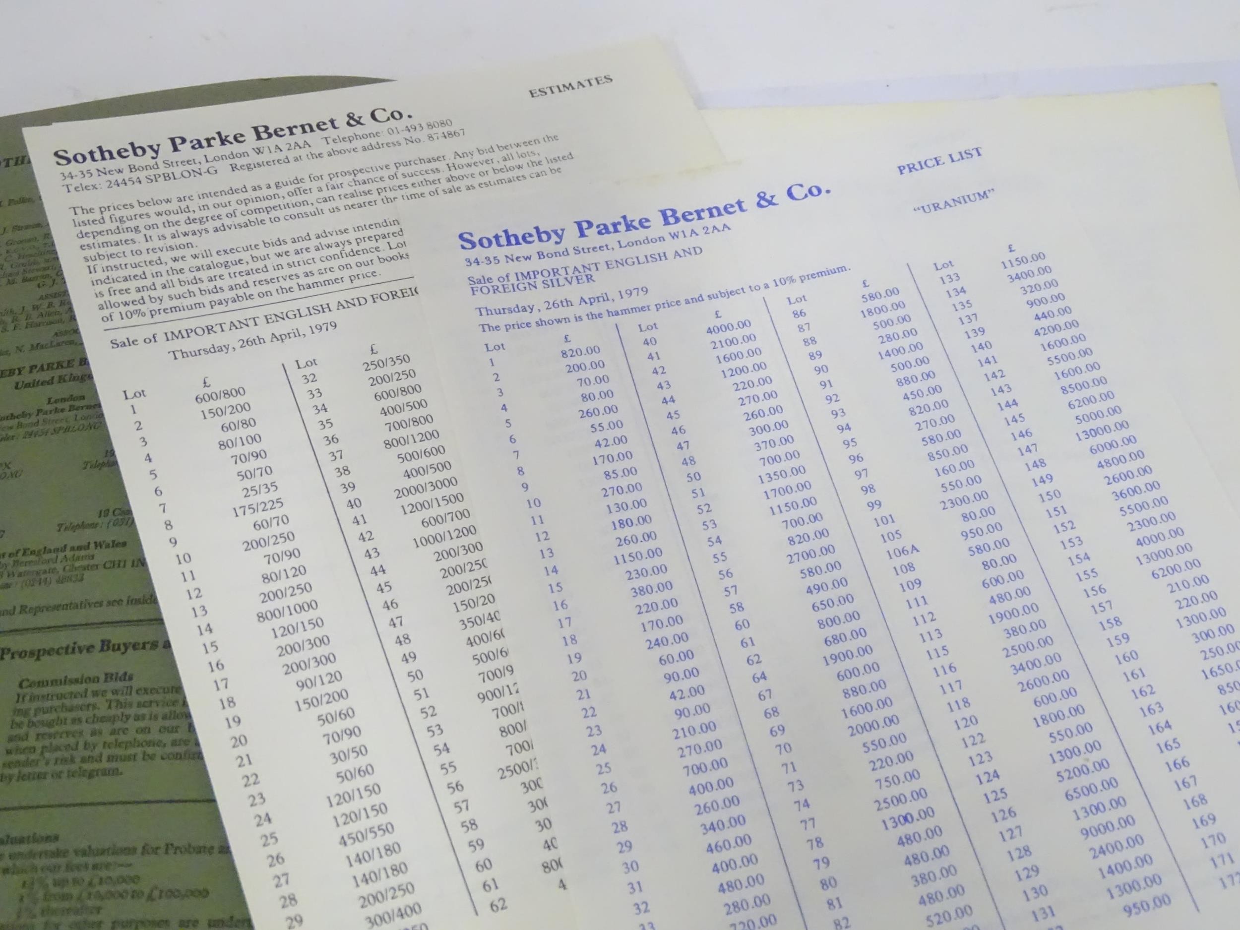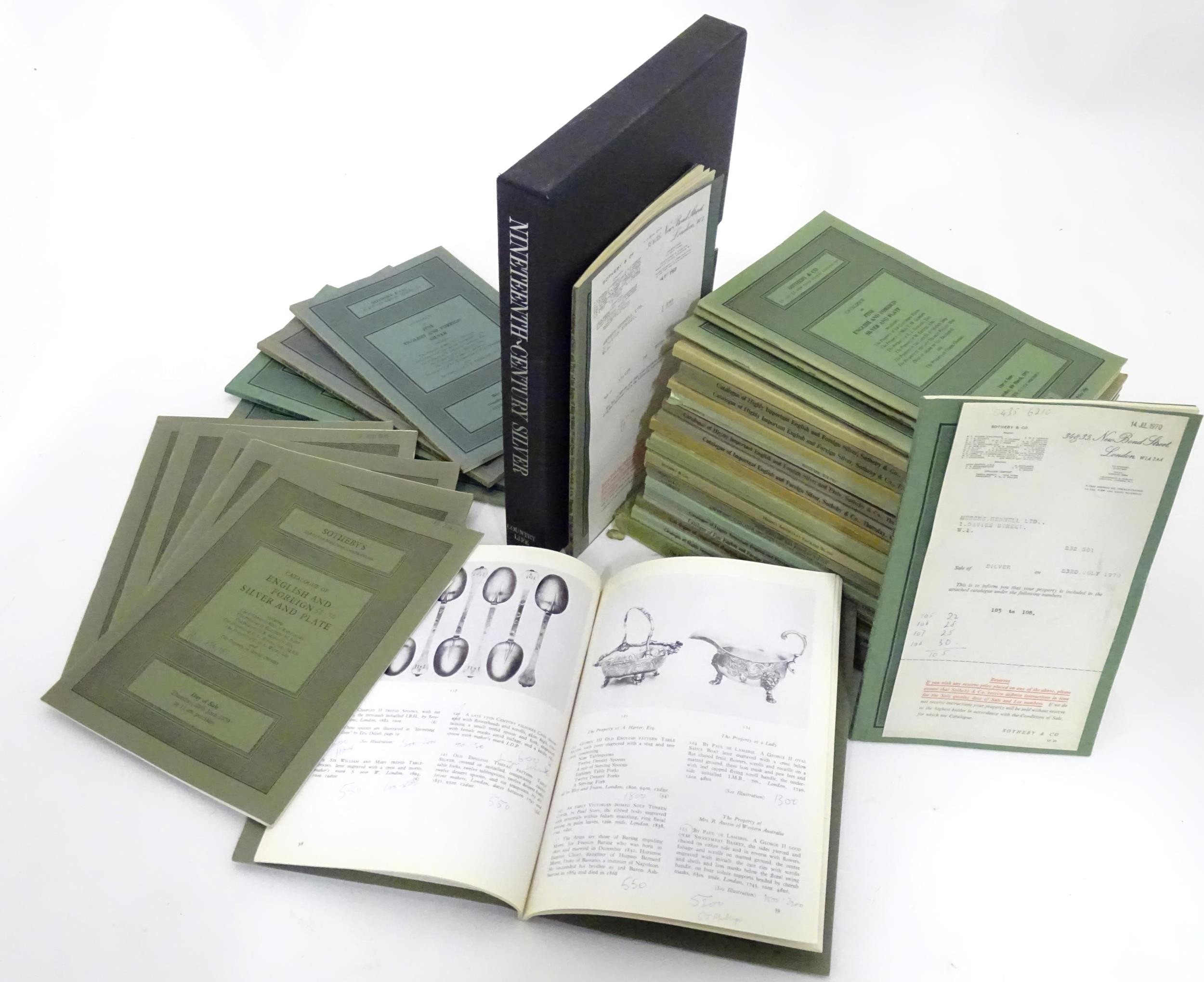 A quantity of 1970s Sotheby's Auction catalogues to include Important English and Foreign Silver, Highly Important English Silver, etc. Together with Nineteenth-Century Silver by John Culne, 1977