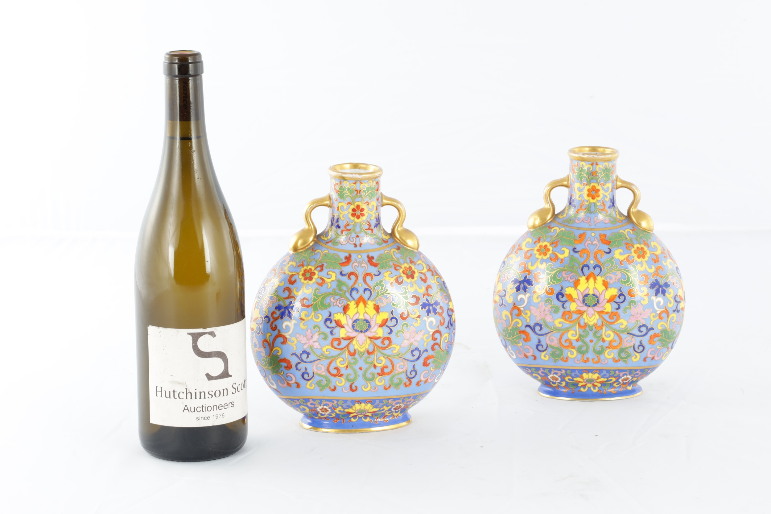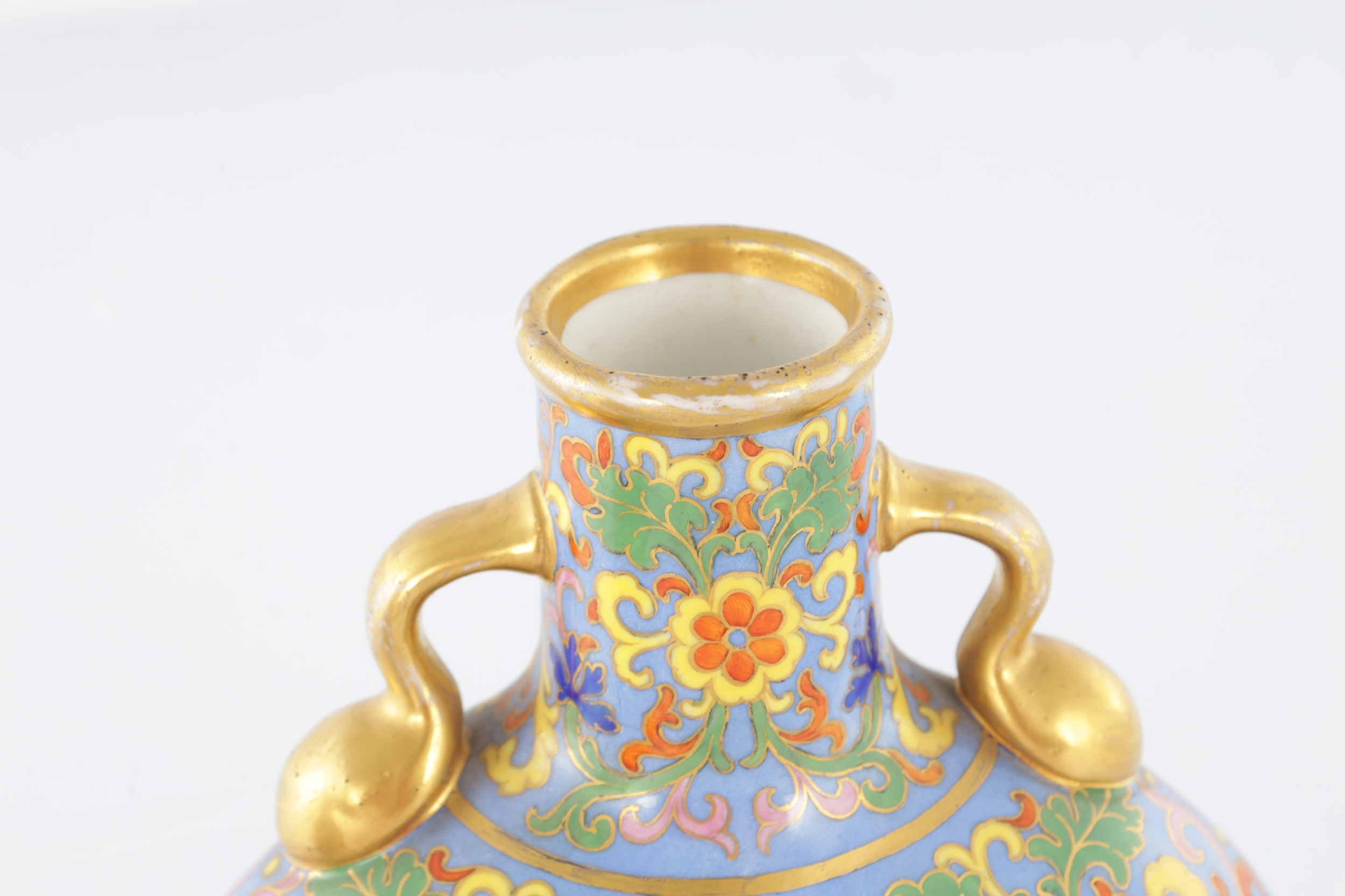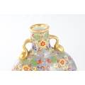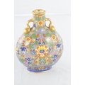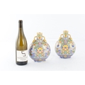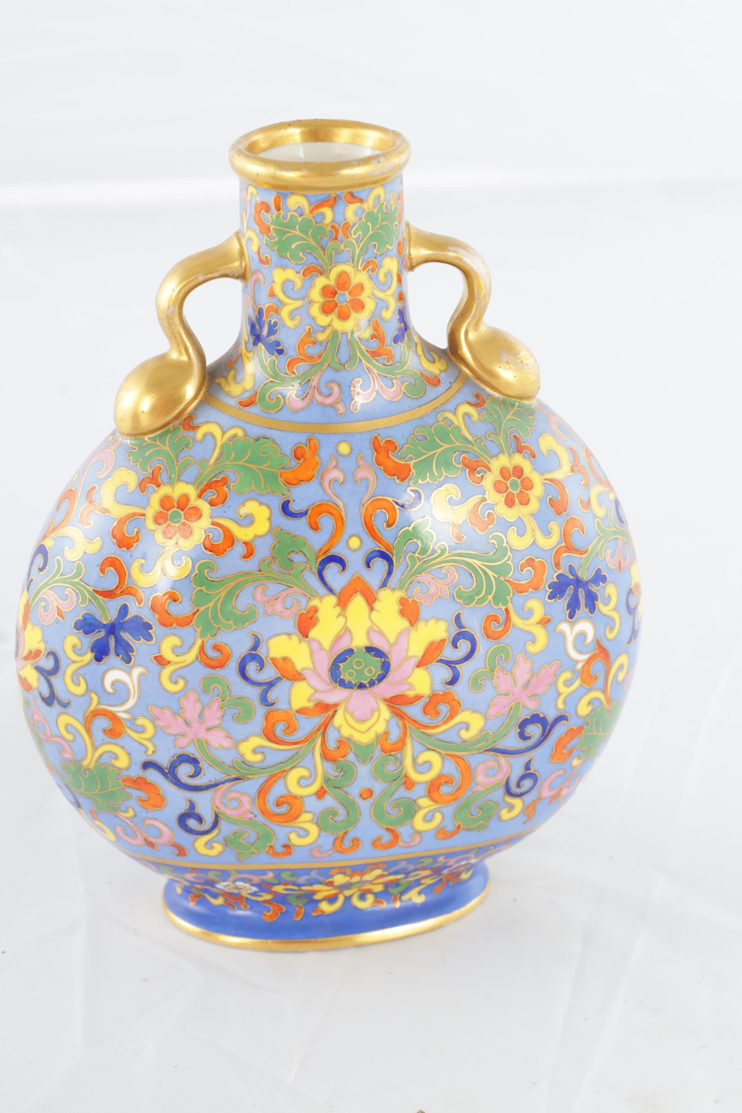 A PAIR OF LATE 19TH CENTURY ENGLISH COALPORT CERAMIC MOON FLASKS brightly coloured with aesthetic floral designs - numbered and marked beneath (20cm high )