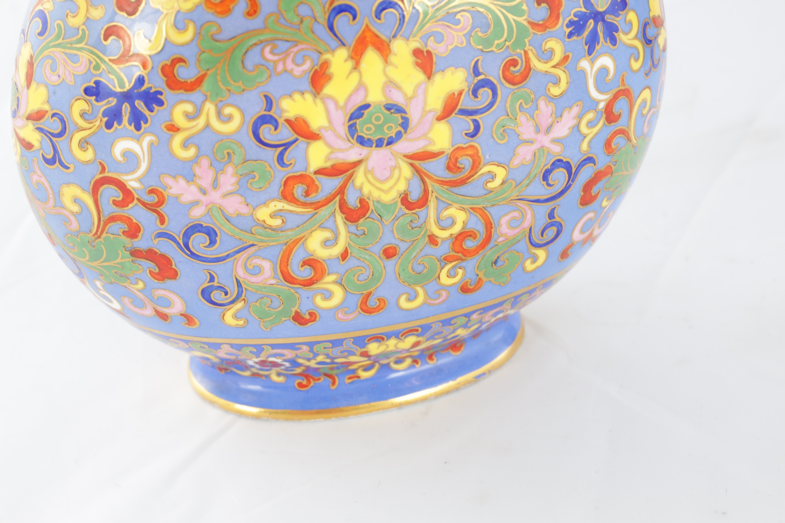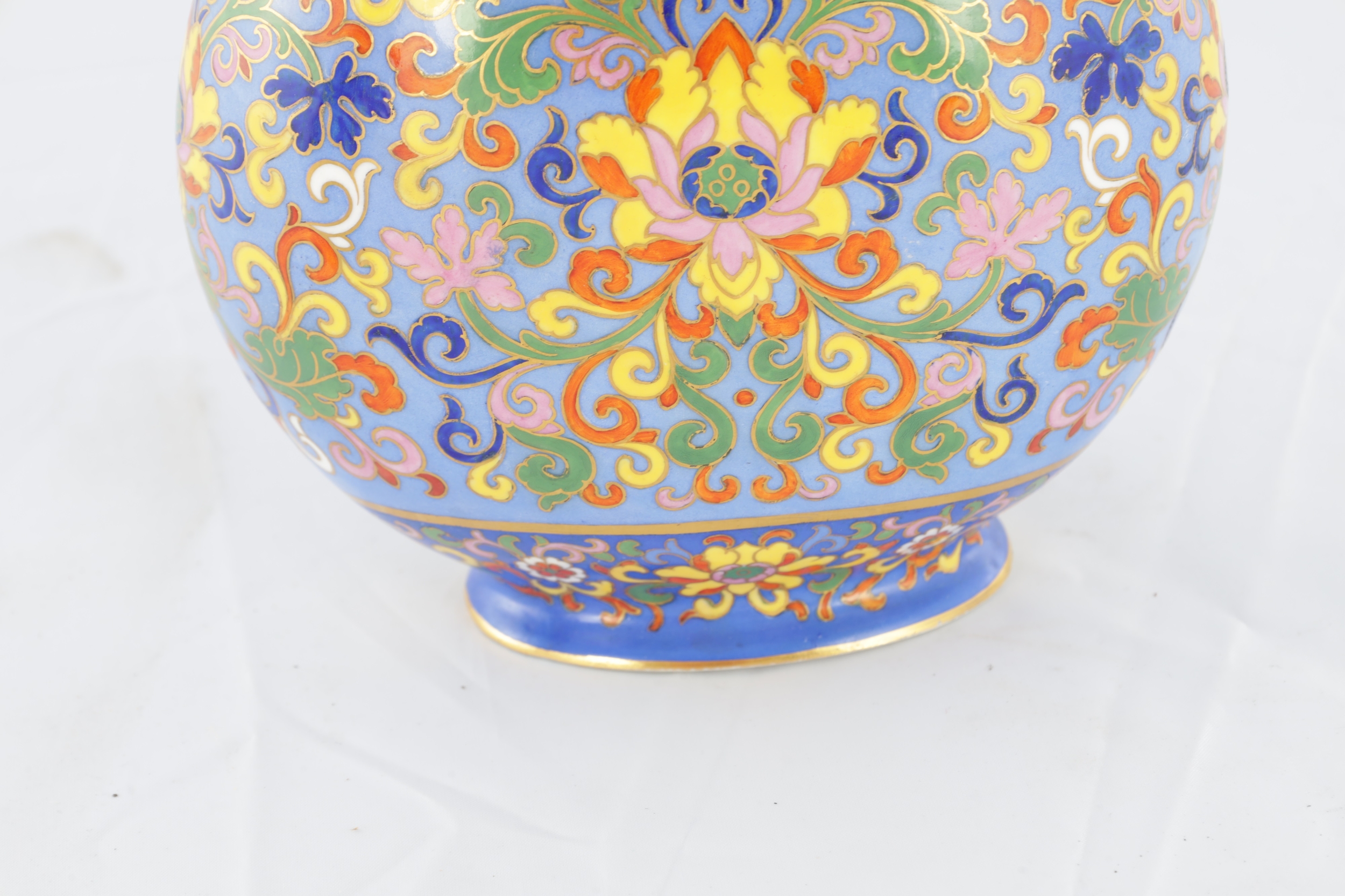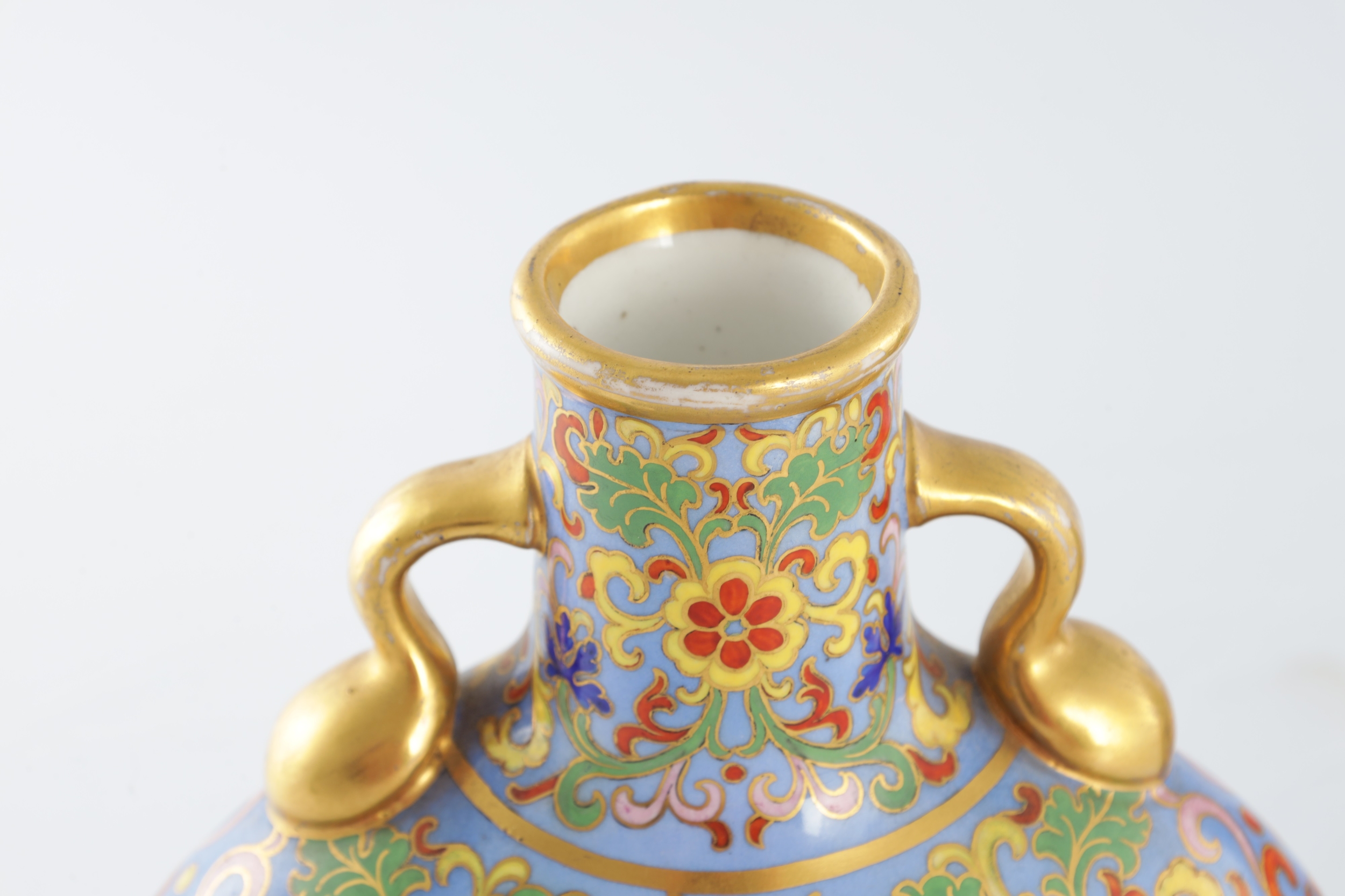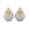 A PAIR OF LATE 19TH CENTURY ENGLISH COALPORT CERAMIC MOON FLASKS brightly coloured with aesthetic floral designs - numbered and marked beneath (20cm high )
