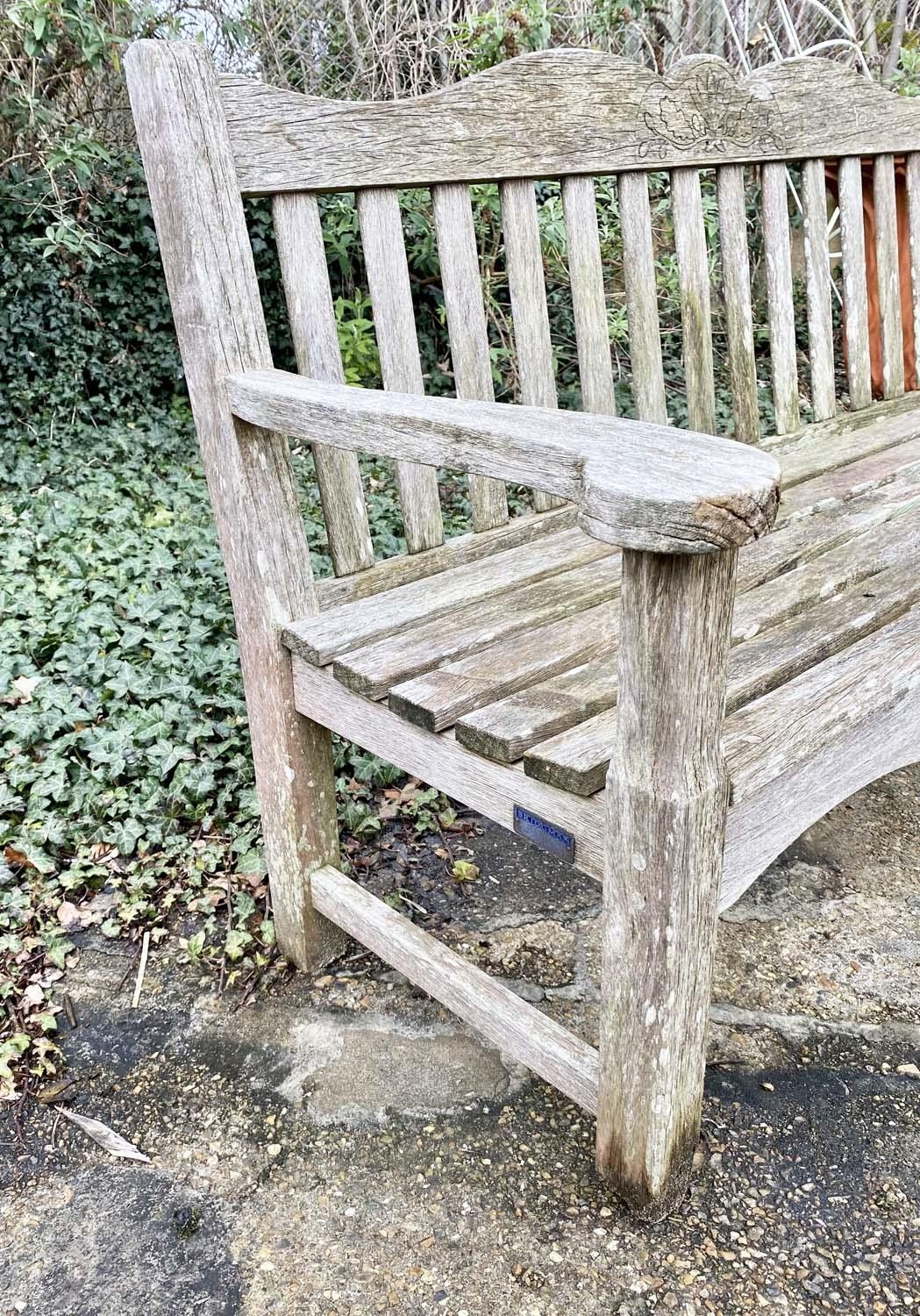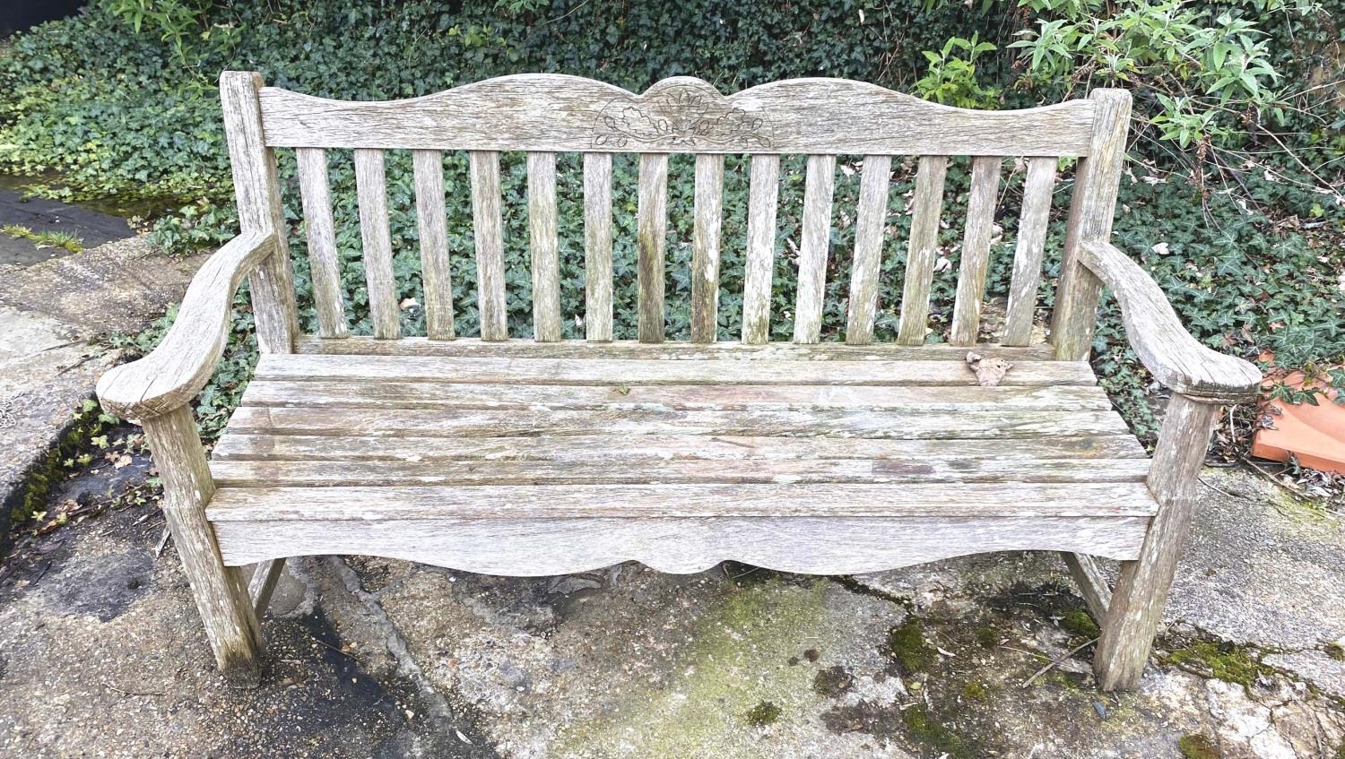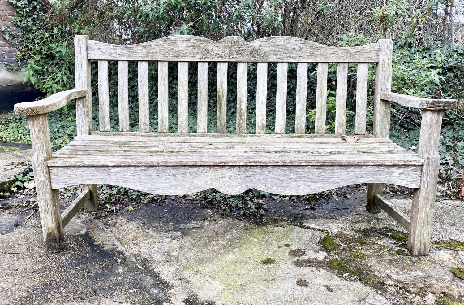 BRIDGMAN GARDEN BENCH, weathered, 84cm x 161cm x 52cm.
