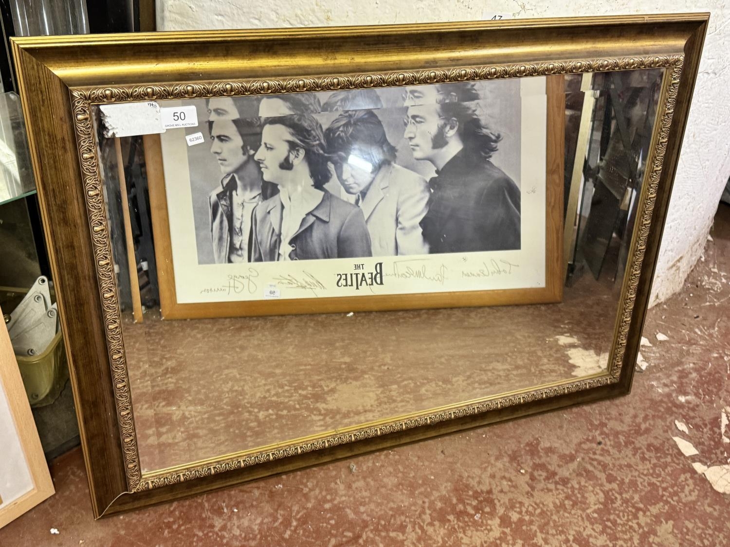 LARGE GILT FRAMED BEVELLED EDGE WALL MIRROR