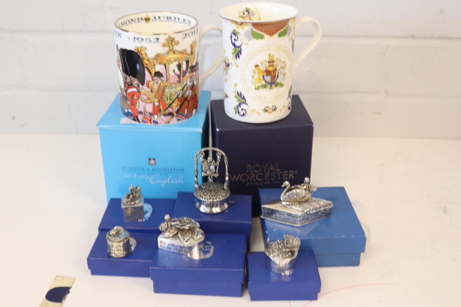 Two commemorative mugs, a selection of 6 silver scenes