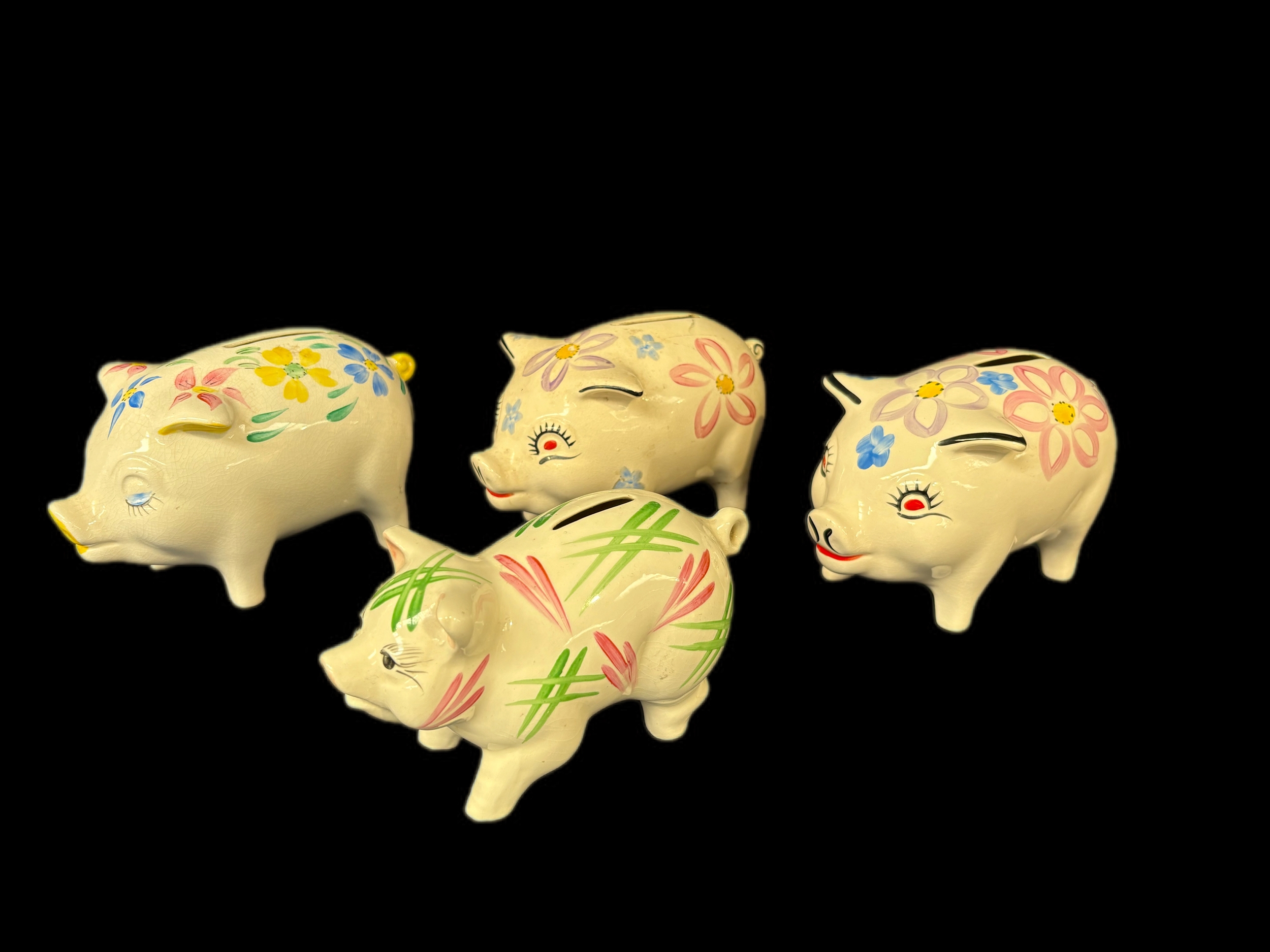 4 vintage ceramic pig money boxes