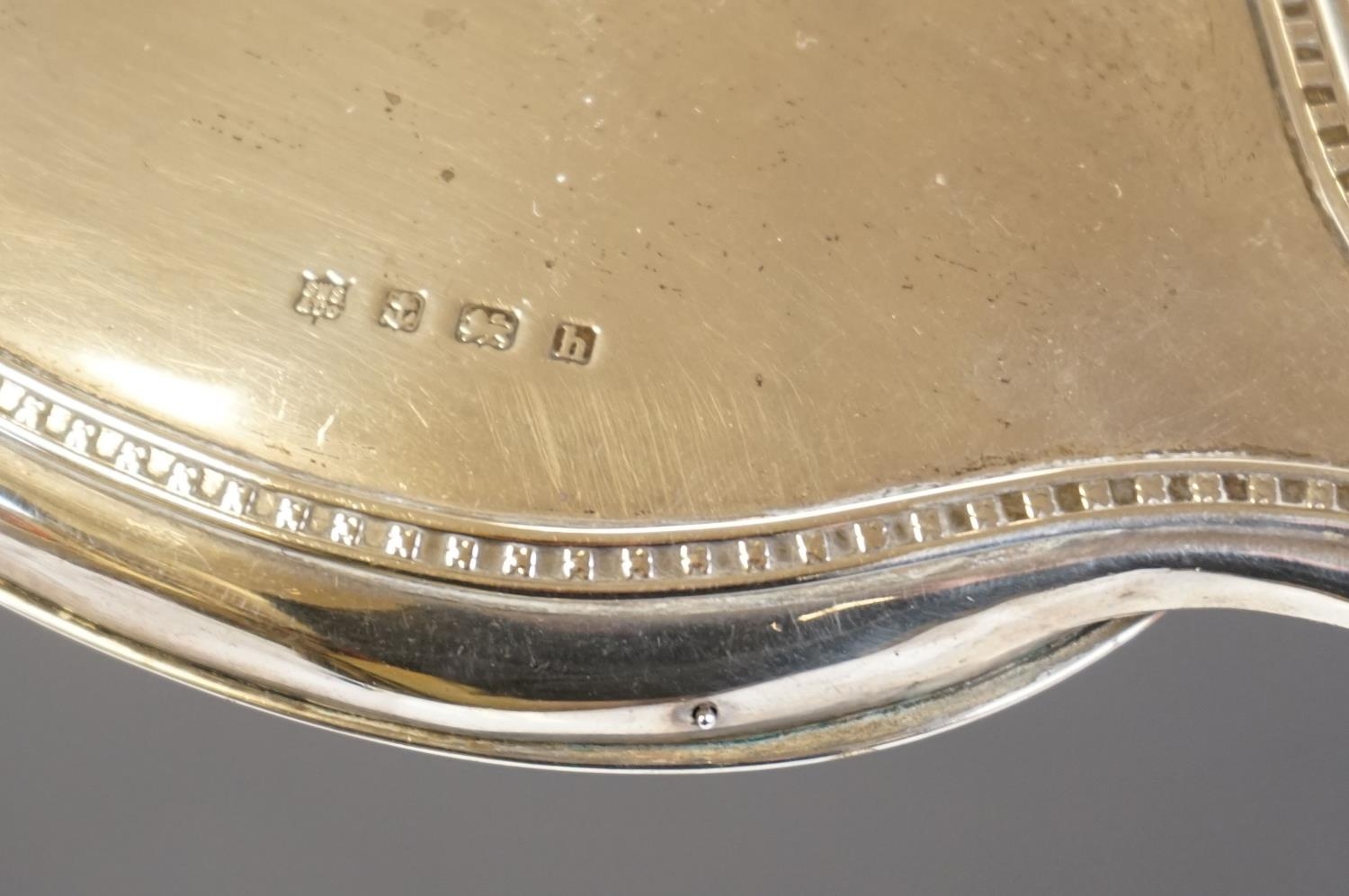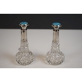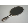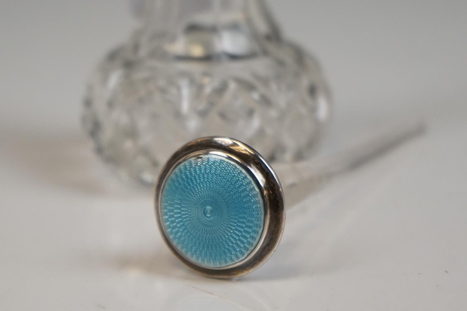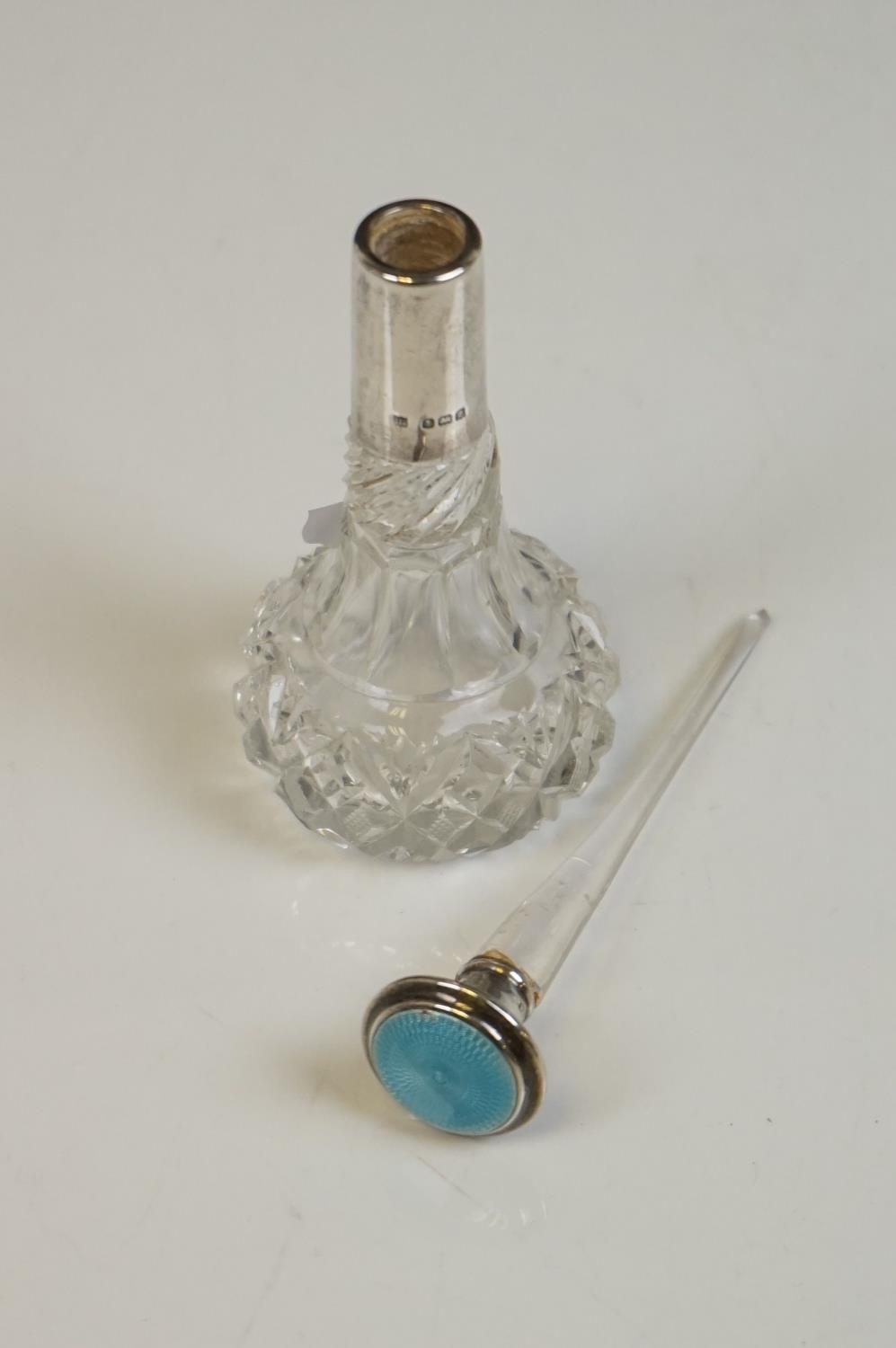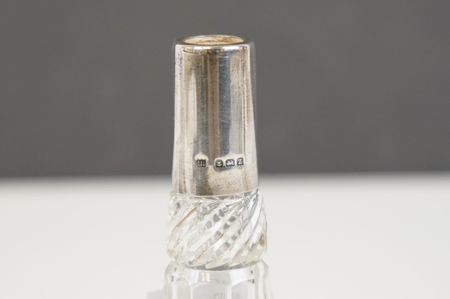 A fully hallmarked sterling silver hand mirror together with two hallmarked silver topped scent bottles with guilloche decoration.