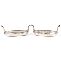 Two early 20th century unmarked silver babies rattles, each 9.5cm wide in length, total 53.4g.