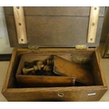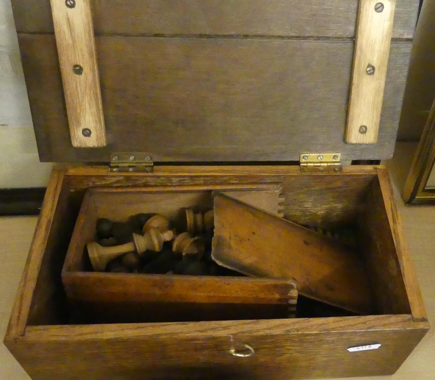 Oak Box Containing Wooden Chess Pieces