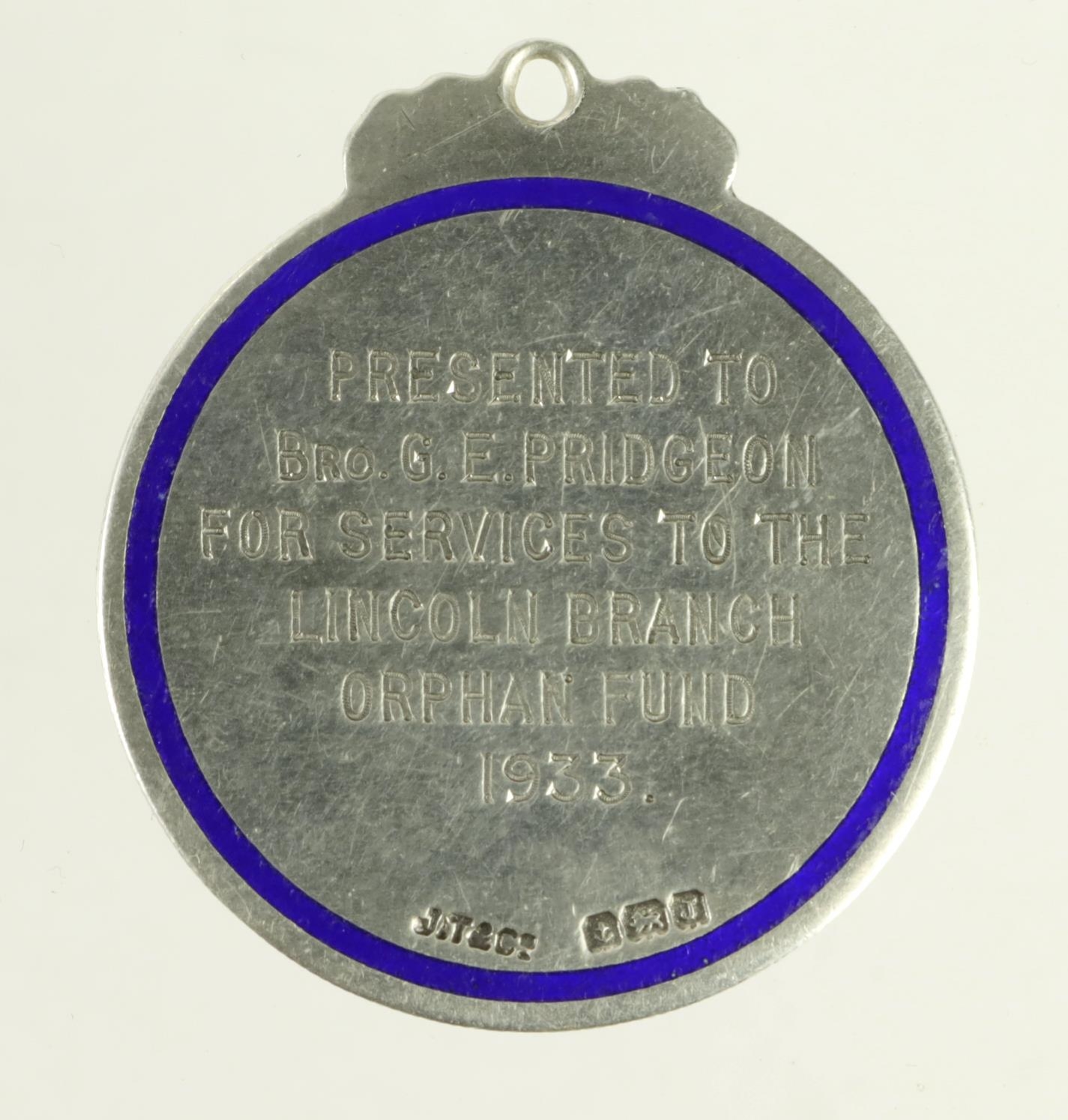 Railway related - National Union of Railwaymen silver & enamel medal hallmarked JT& Co., Birm. 1933 - reads on the back "Presented to Bro. G.E. Pridgeon for service to the Lincoln Branch Orphan Fund, 1933". Weighs 14.6gms.