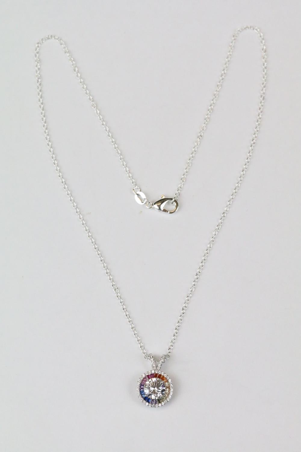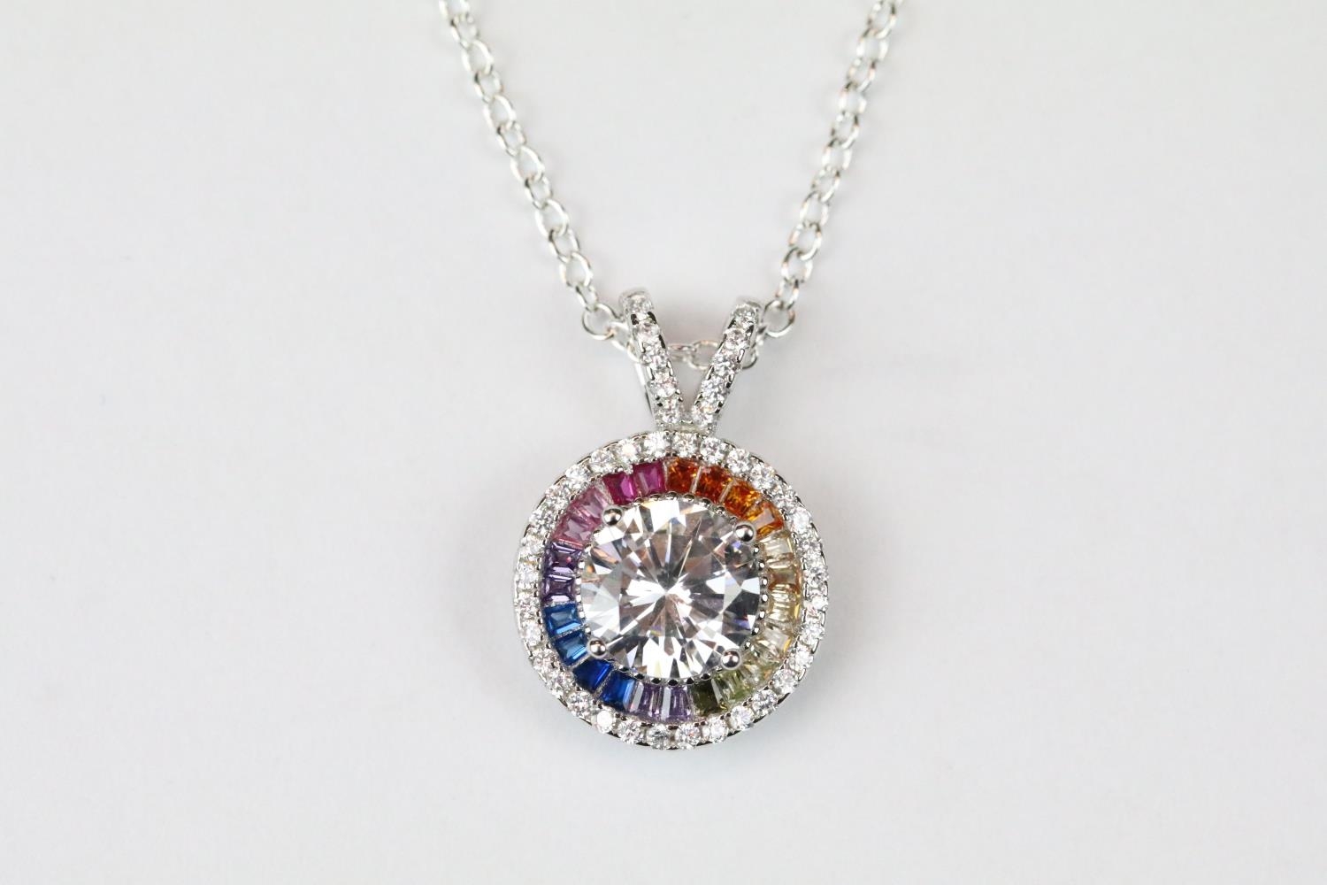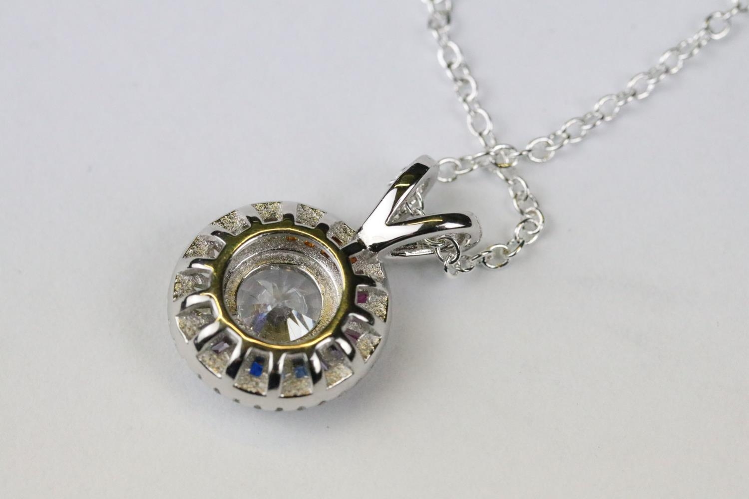 Silver CZ halo style pendant necklace