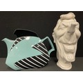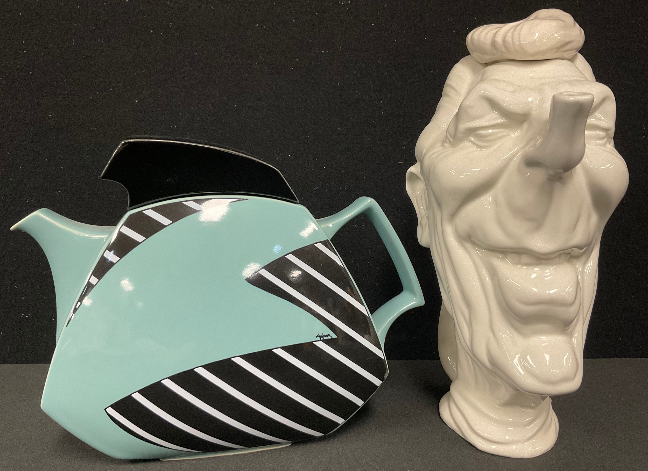 A Luck & Flaw novelty satirical teapot, as Ronald Reagan, in the manner of Spitting Image, 28cm high; a Rosenthal Flash teapot, designed by Dorothy Hafner, 19cm high (2)