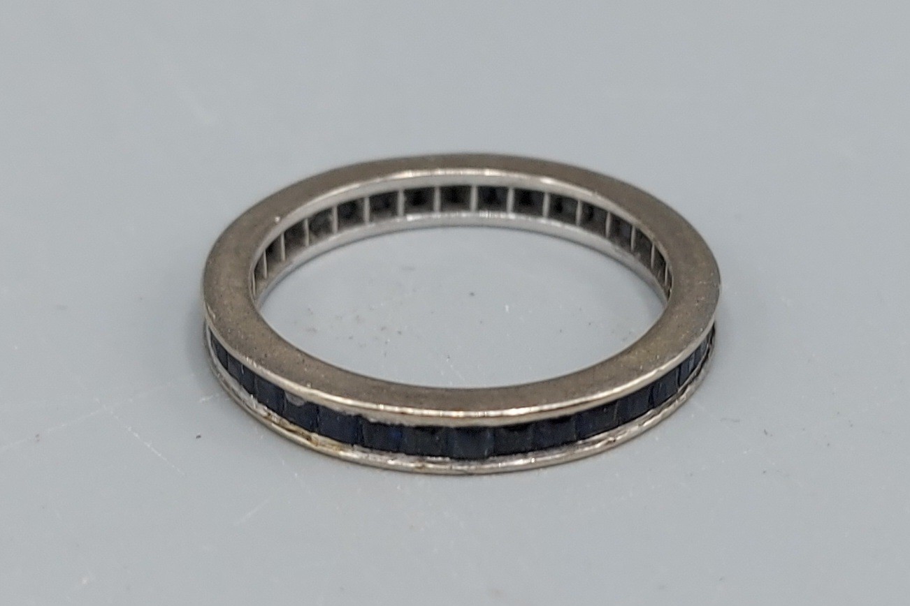 A white gold Sapphire set full Eternity ring, 2.7gms, ring size K