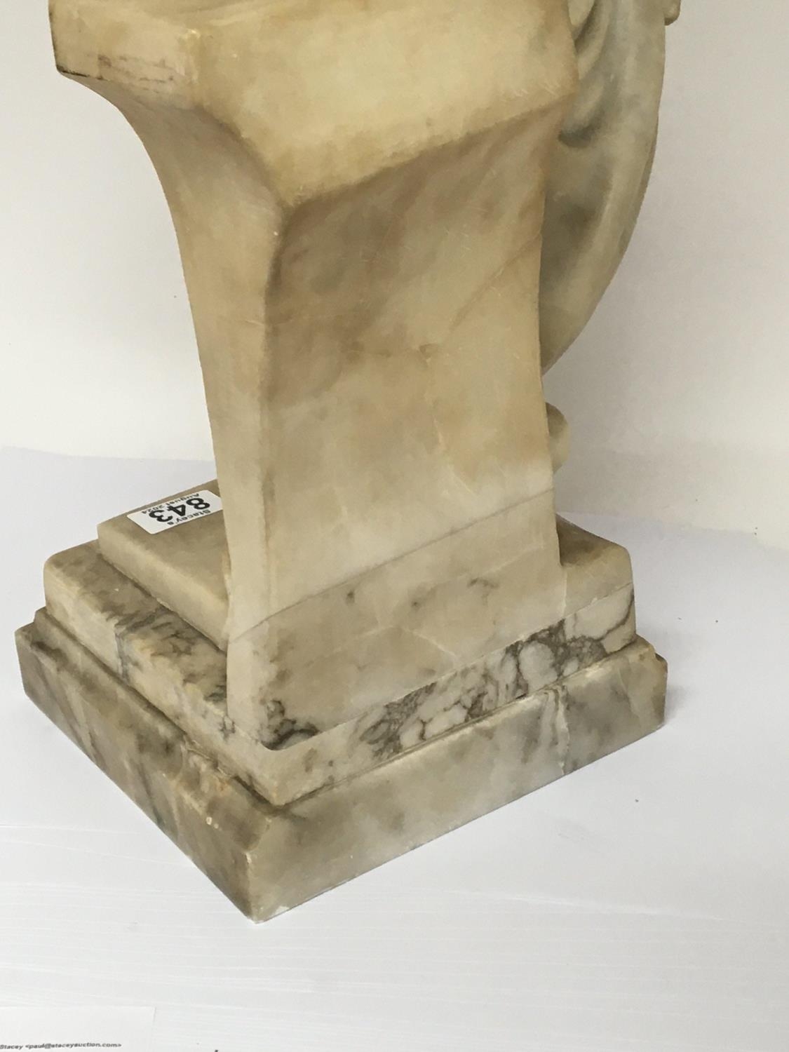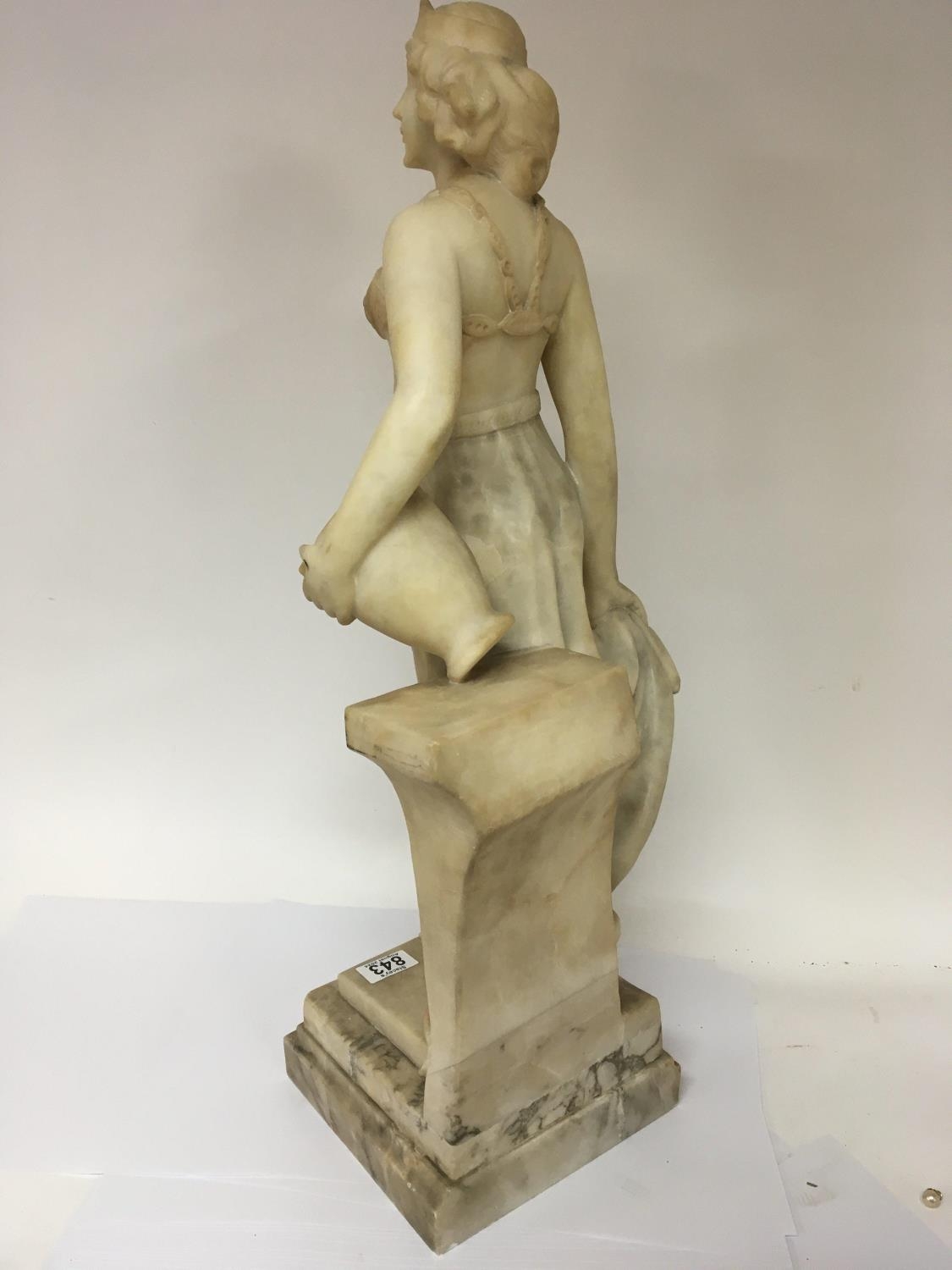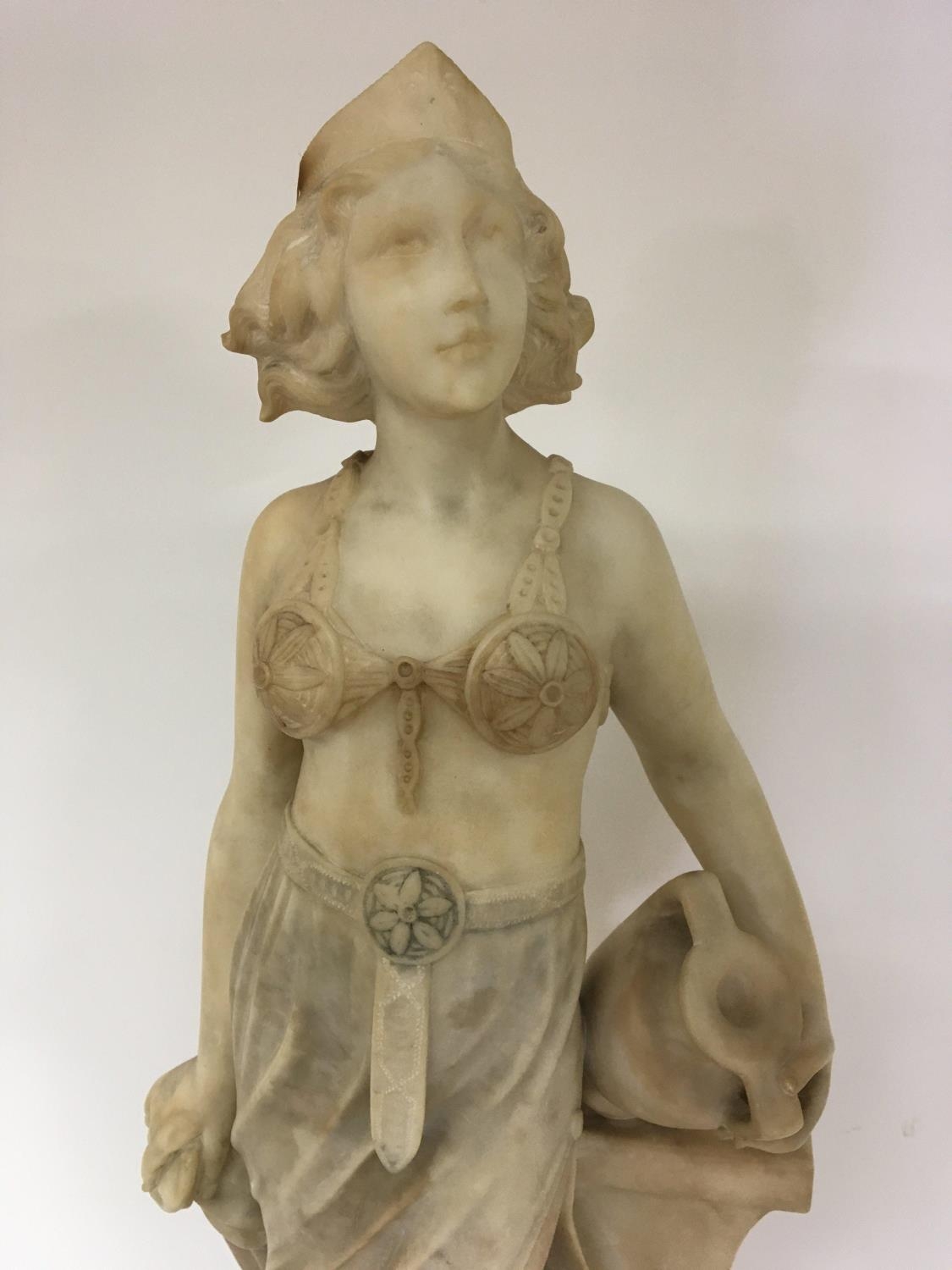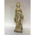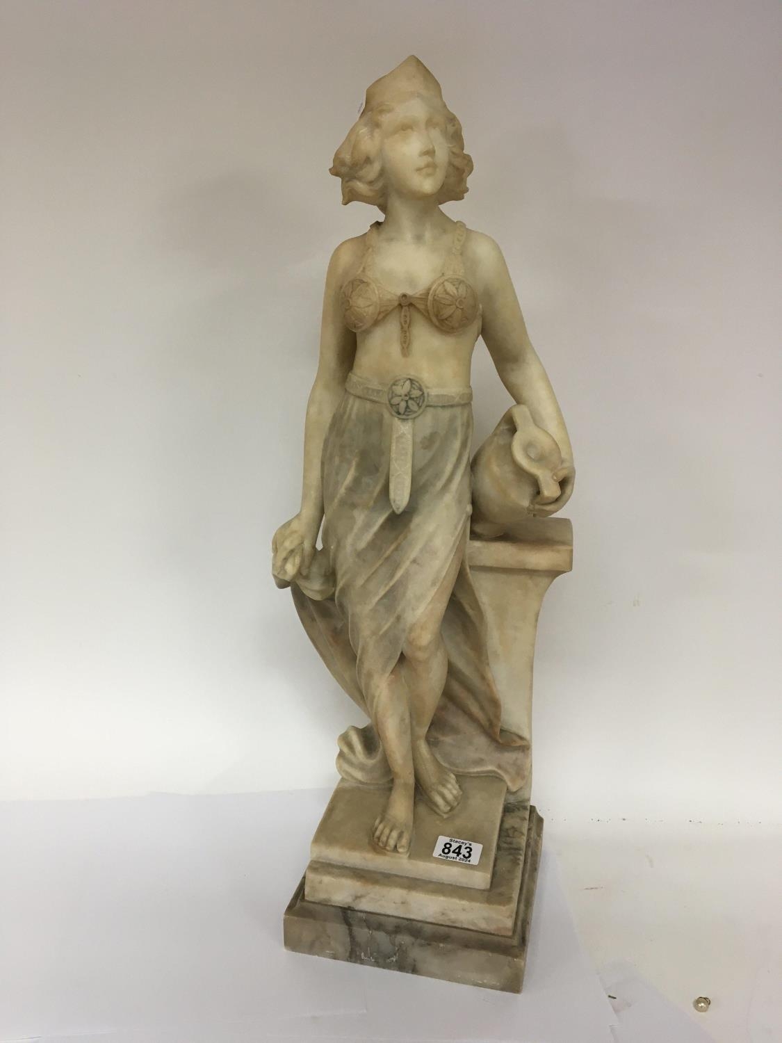 A Quality Art Deco carved Carrera Marble figure a full length lady of Art Deco dress and with Neo classical influences holding an urn on a stepped base no obvious damage. Height 70cm