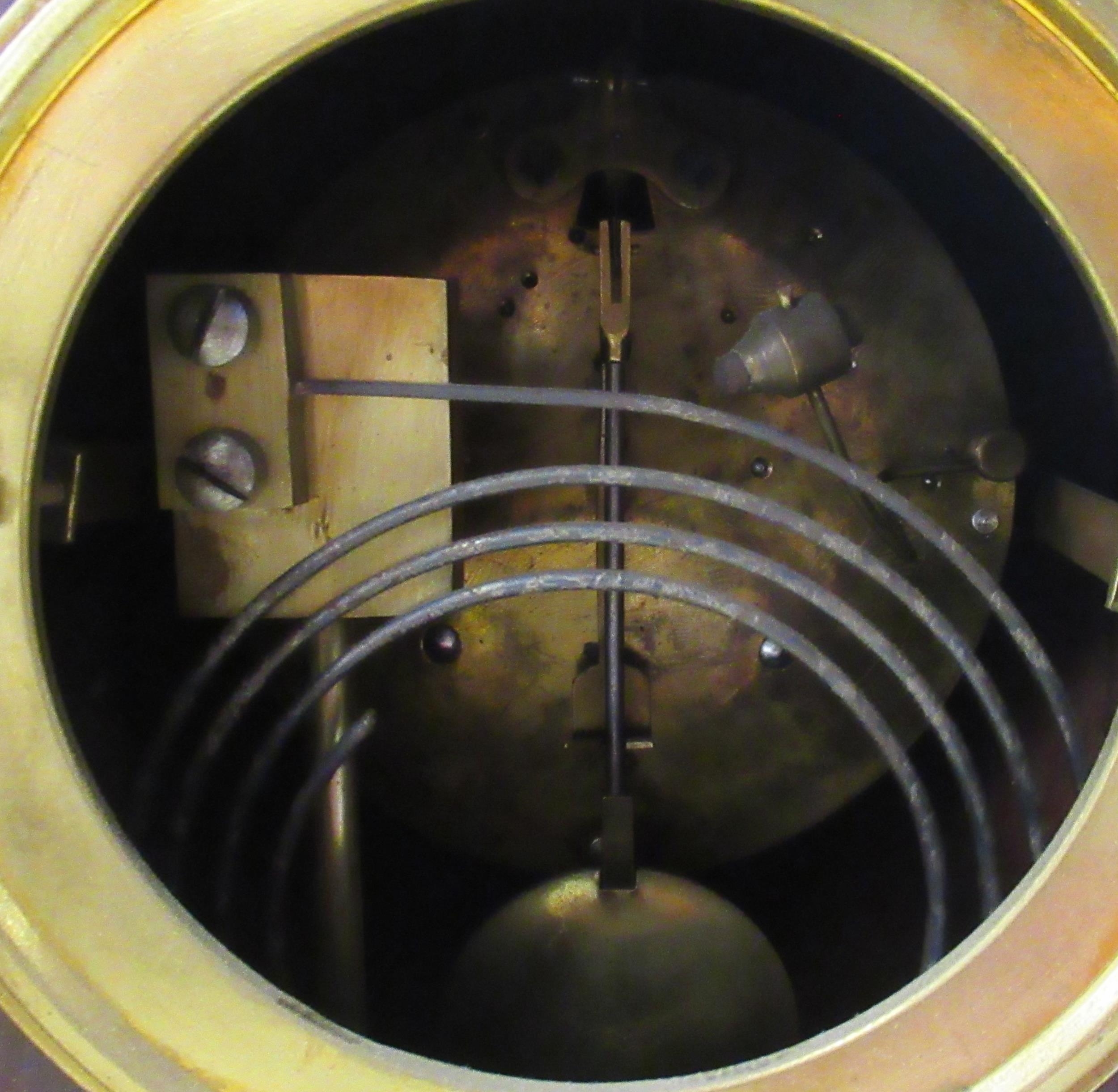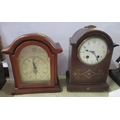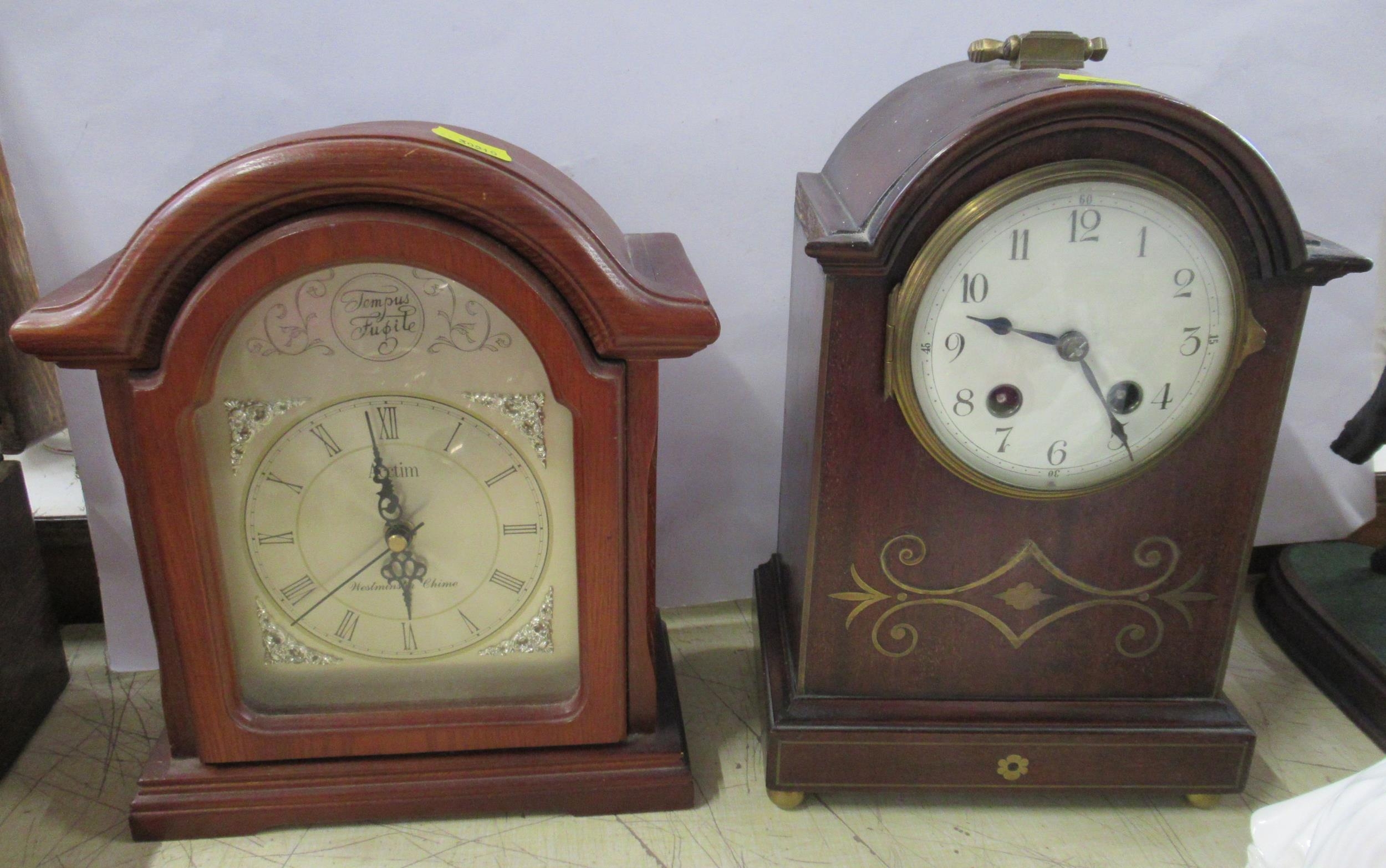 An Edwardian mantel clock, with brass inlay, together with a modern mantel clock