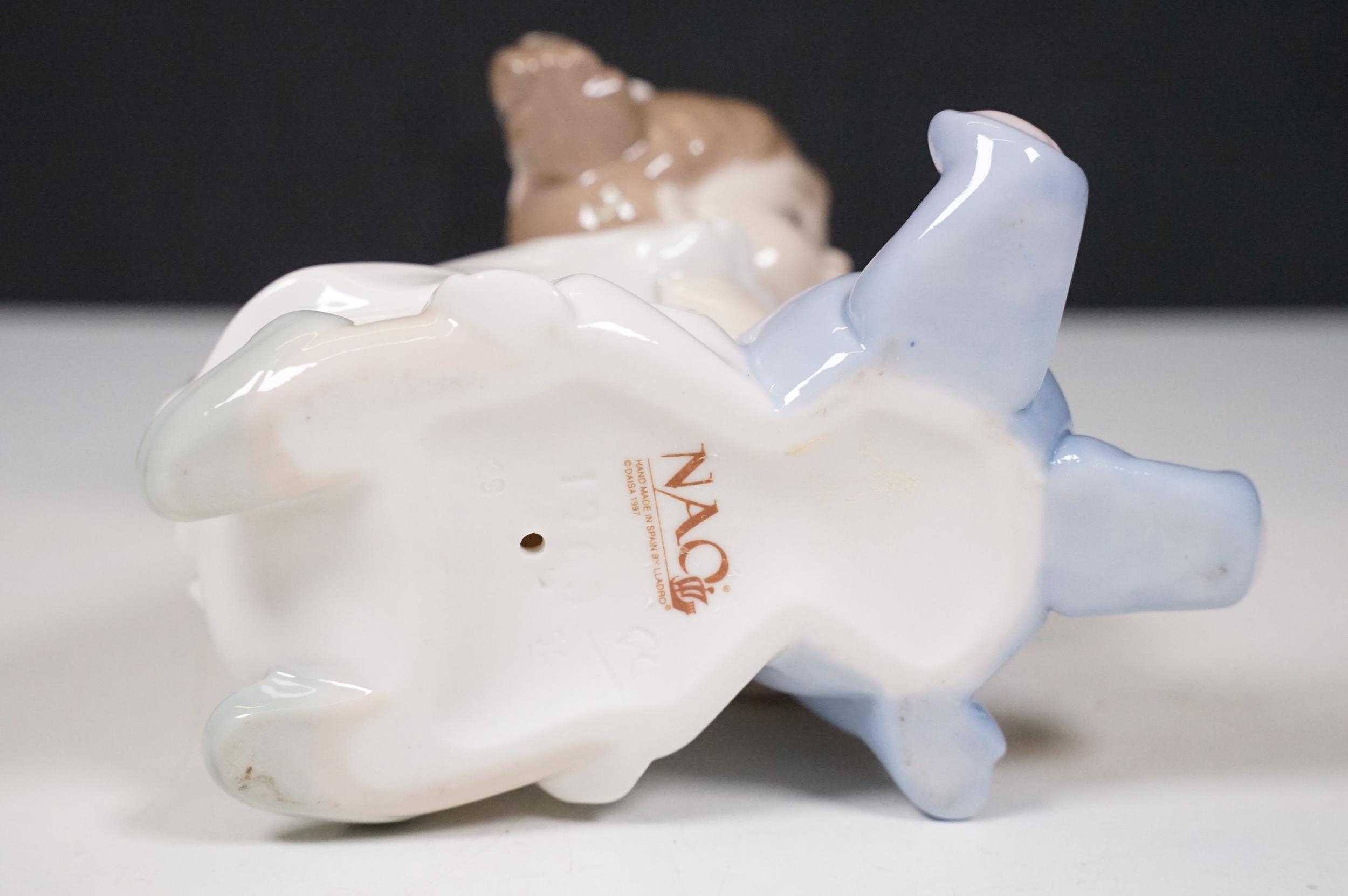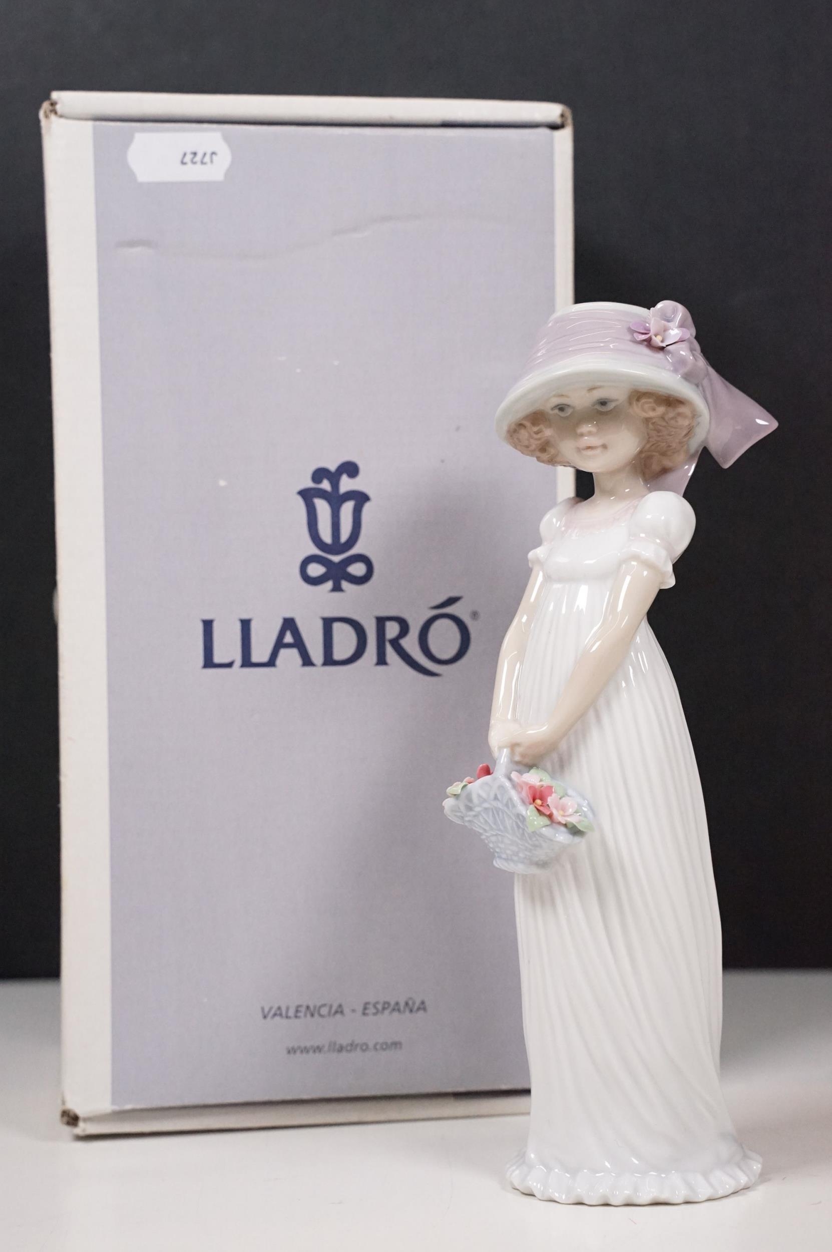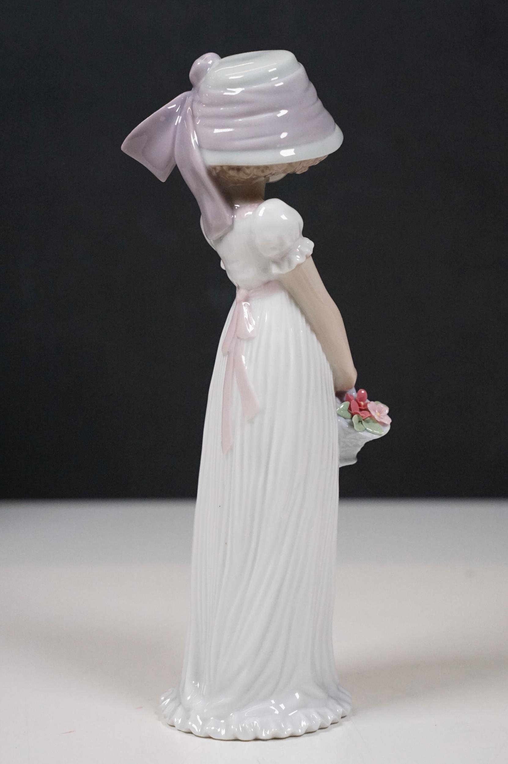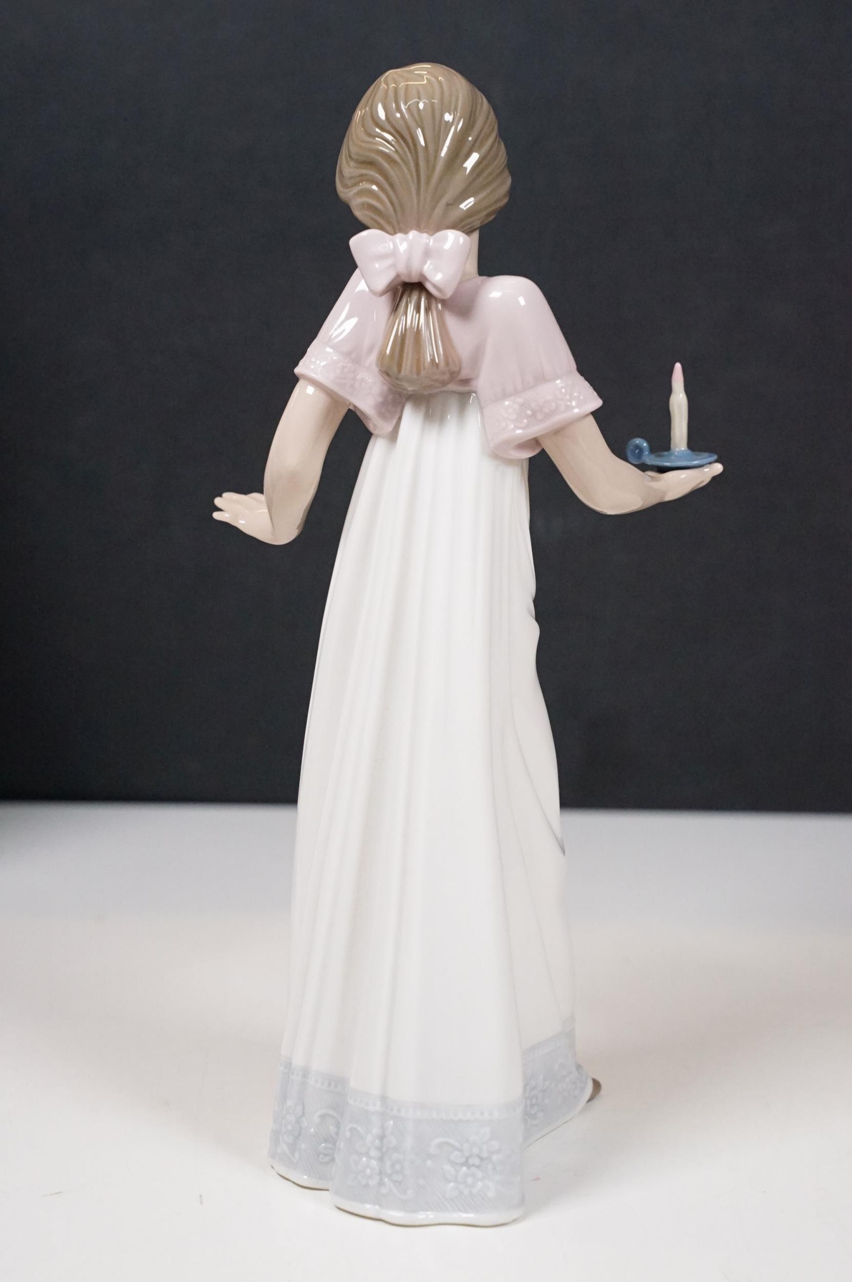 Group of Lladro and Nao figurines to include 'Little Lady', 'Seated lady with umbrella', 'Girl with toy rabbit', 'Seated ballerina' 1456, 'Girl with candle' 1155 and large example of 'Girl with dog and umbrella', H 39cm