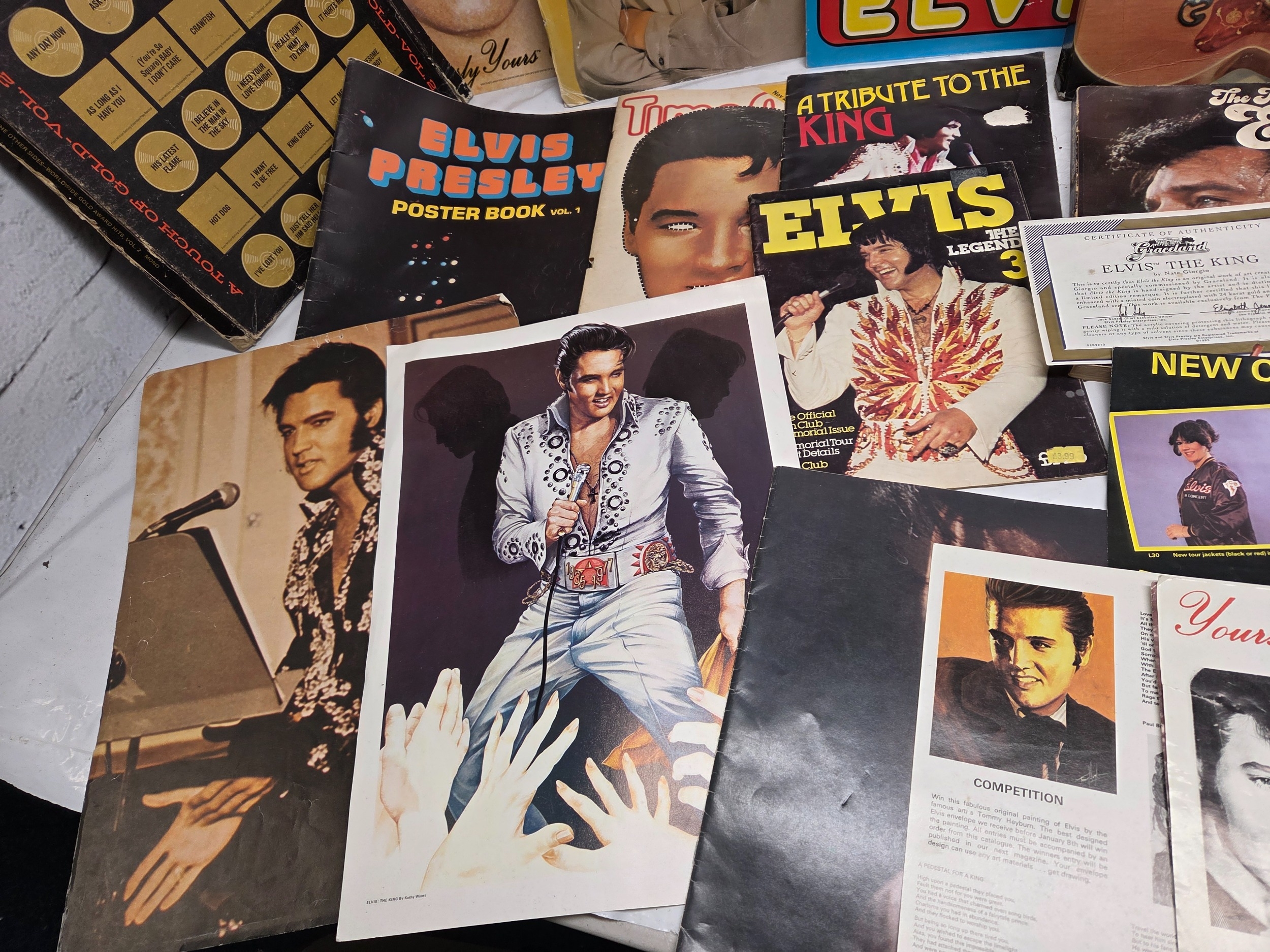 A Collection of Elvis Presley Memorabilia to include Vinyl, Magazines and more