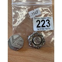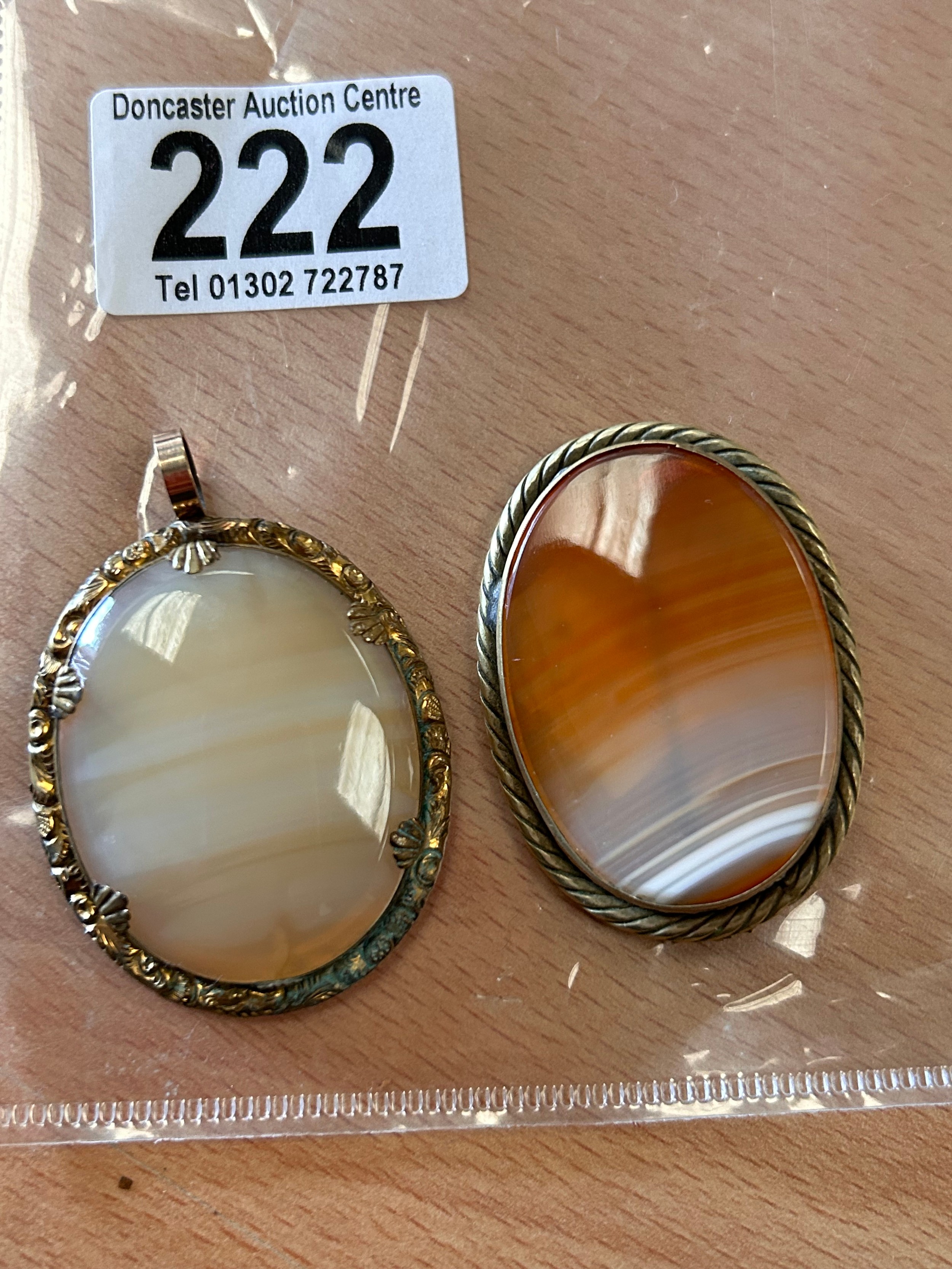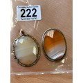 Yellow Metal And Agate Brooch And Pendant.