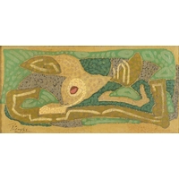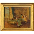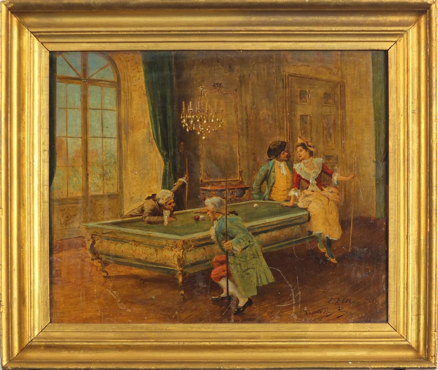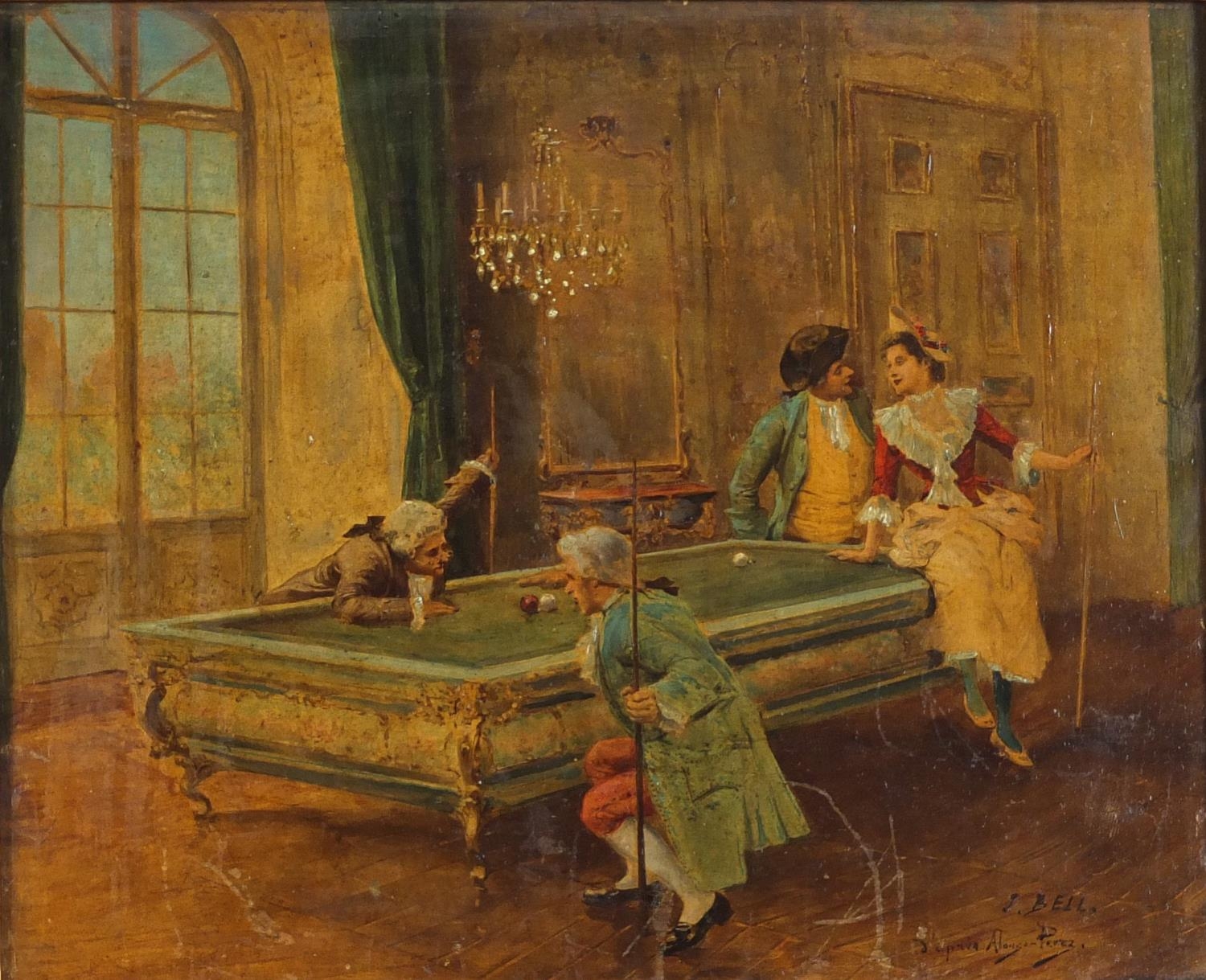 J Bell- The Billiard Room over painted photograph, 26cm x 22cm