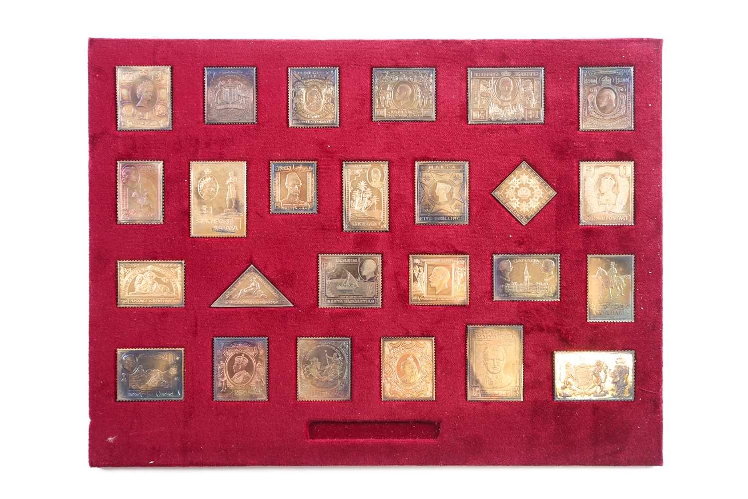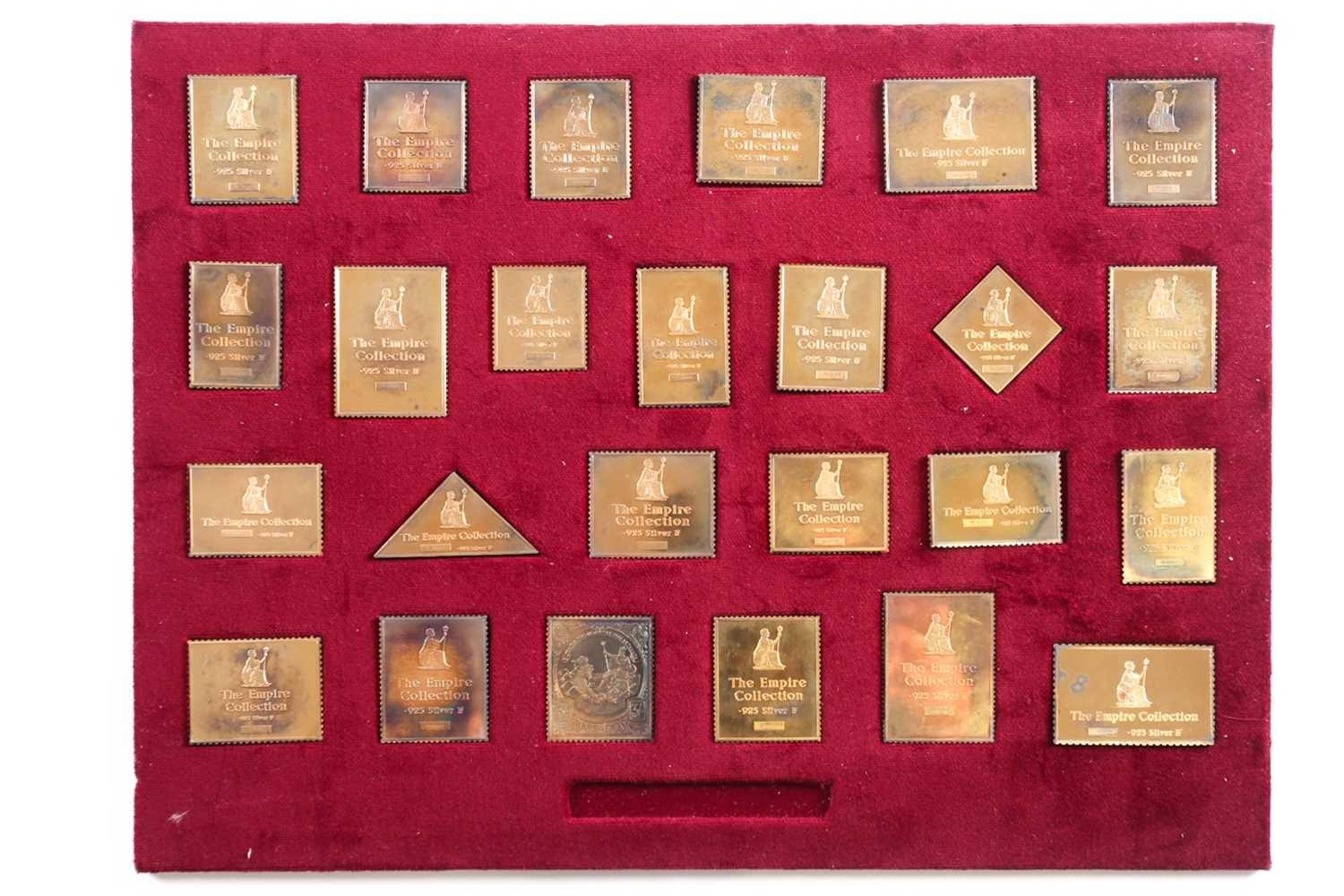 A set of twenty-five 925 silver commemorative Empire Collection Stamps, in presentation tray.