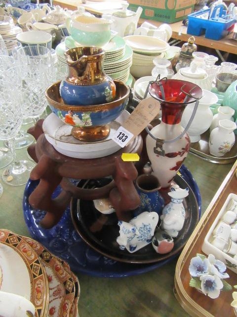 ASSORTED CHINA AND GLASS INCLUDING CHINESE WARRIOR FIGURE