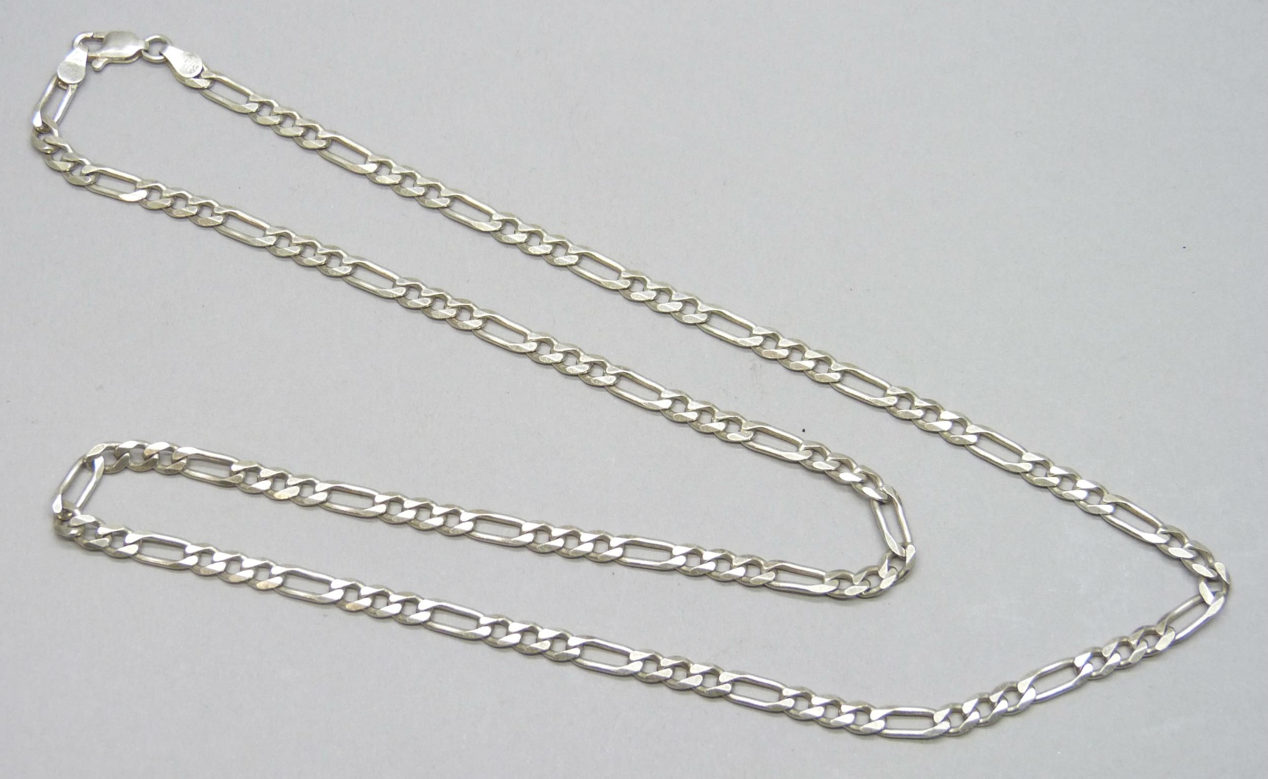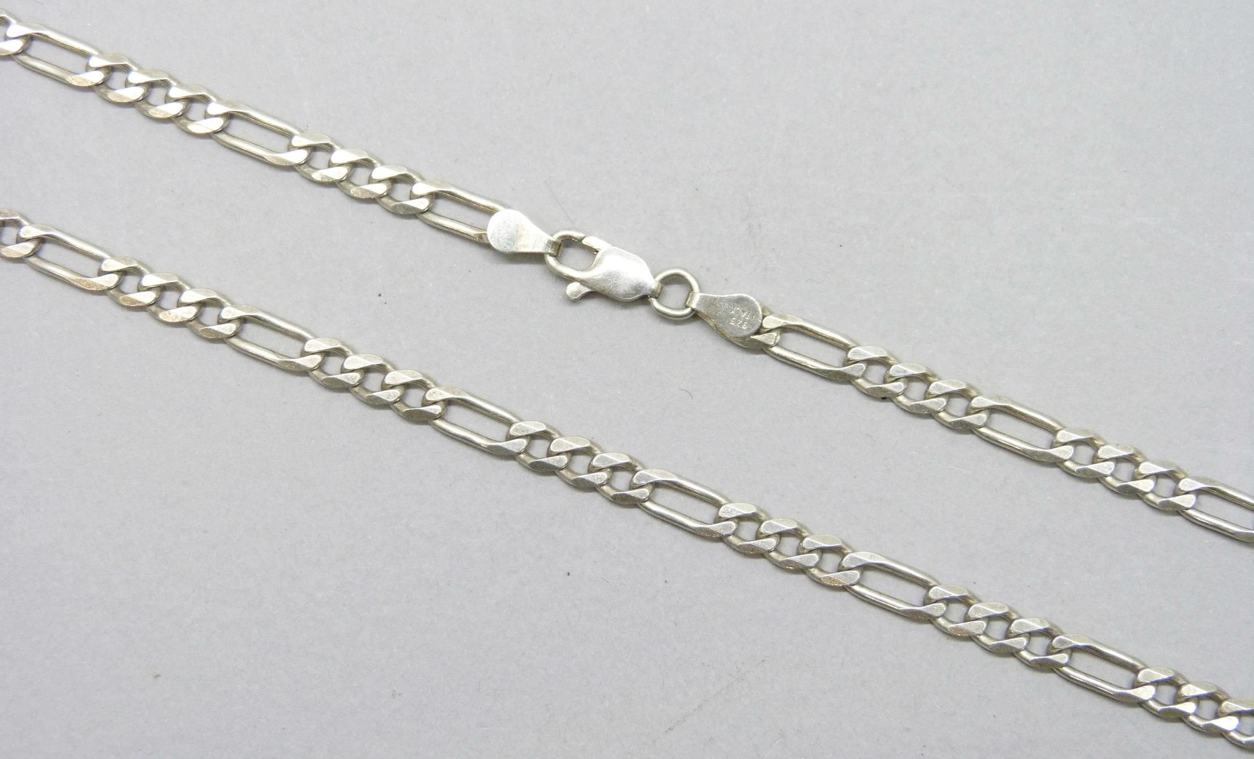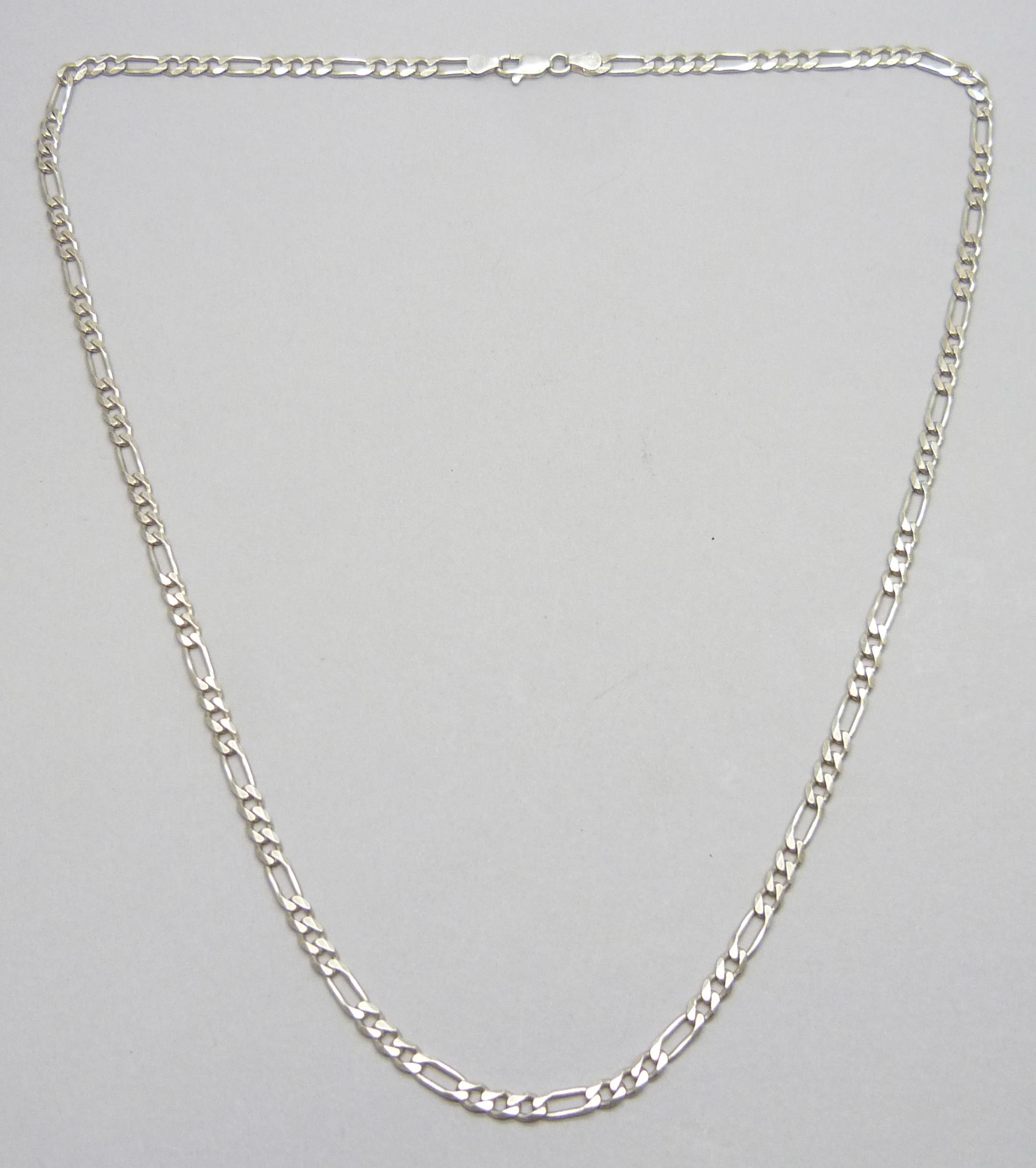A silver figaro link necklace chain, 19g, 61cm, 4mm wide