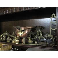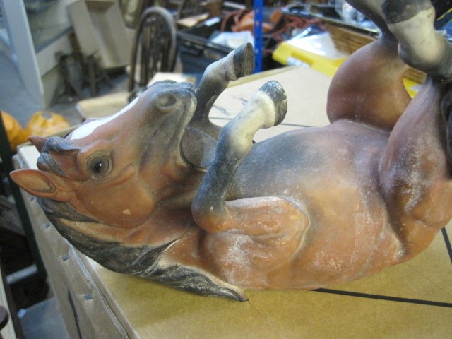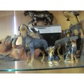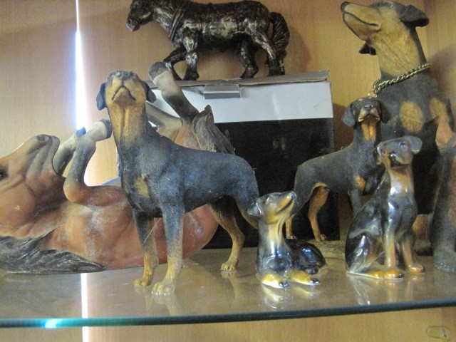 Collection of bone china and other Rottweiler figures, plus other items a wooden horse bottle stand and bookends/doorstops