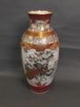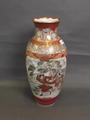 A Japanese Kutani vase with painted panels depicting peacocks and samurai warriors, indistinct mark to base, 18' high (restored)