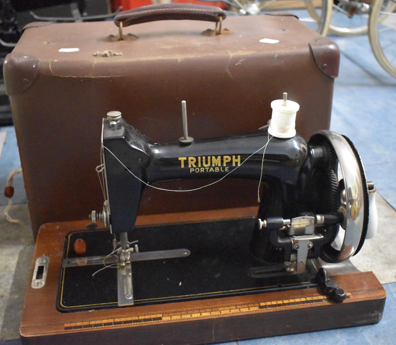 A Triumph Portable Manual Sewing Machine, 58cms Wide