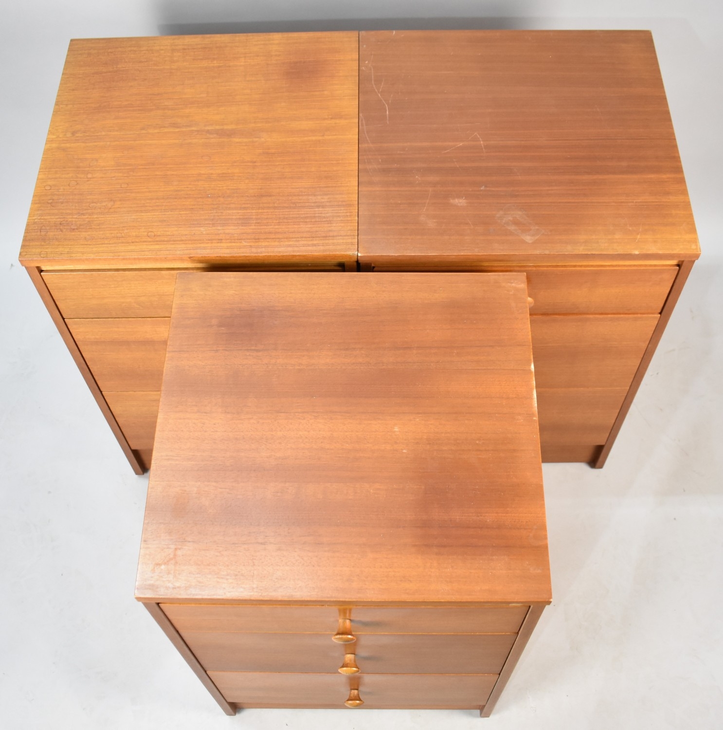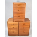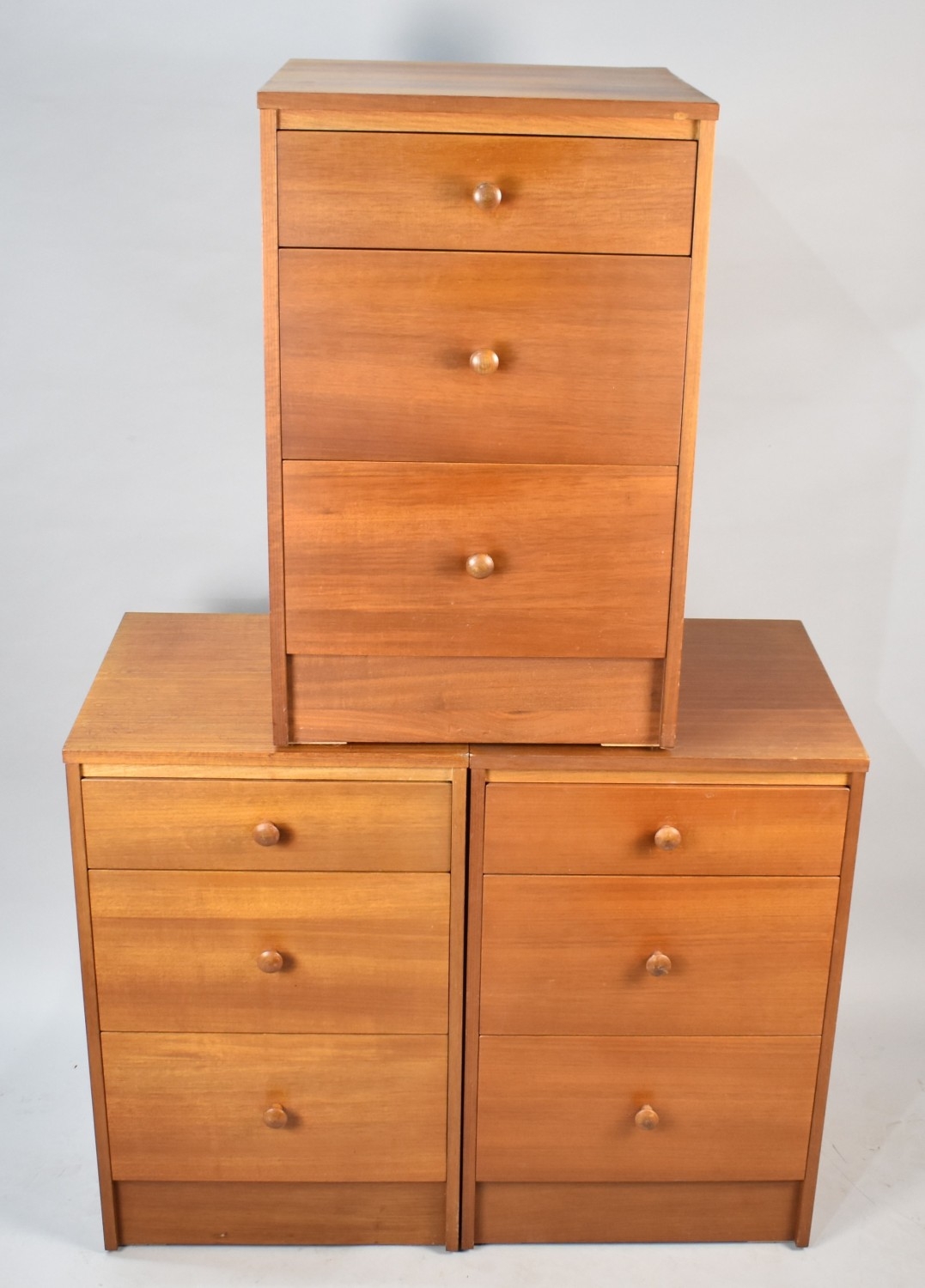 A Set of Three 1970s Teak Three Drawer Bedside Chests, 44cms Wide
