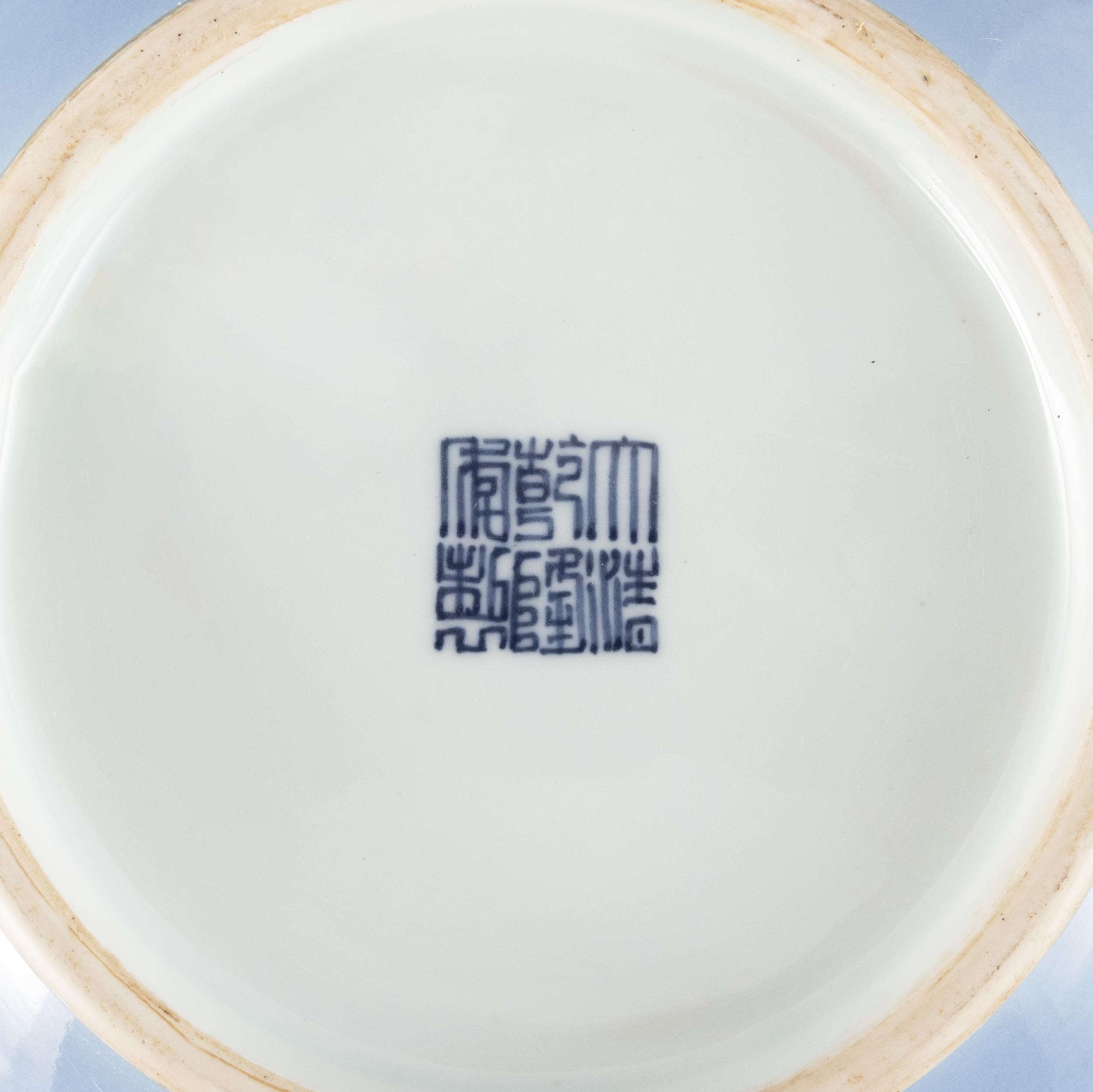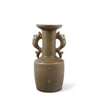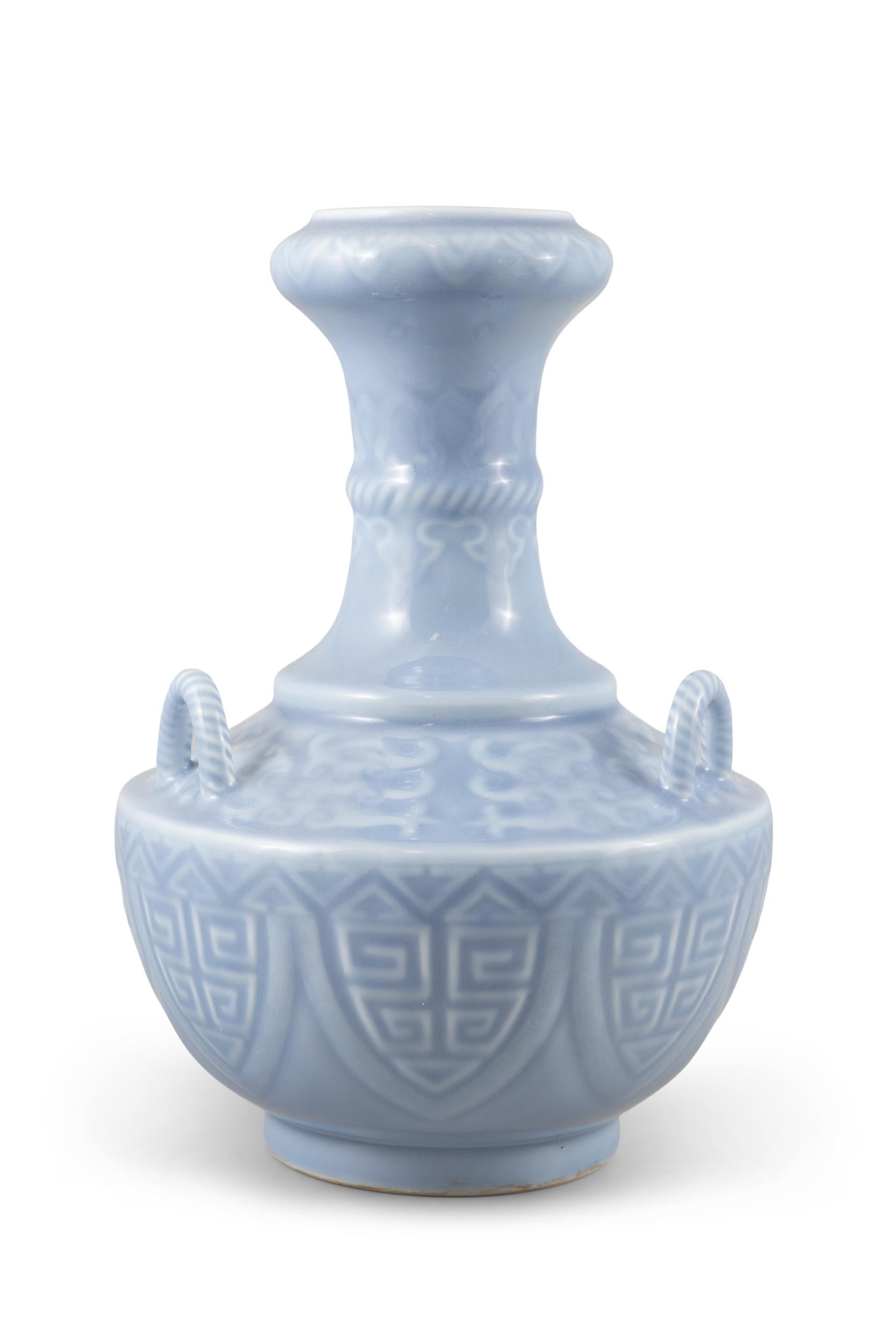 A CLAIR-DE-LUNE GLAZED PORCELAIN VASE IN ARCHAIC BRONZE FORM WITH THREE HANDLES, MARKED QIANLONG ??20?? ??? ?????? China, 20th century H: 30.7cm