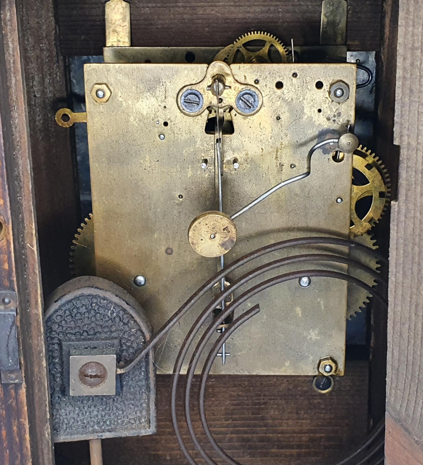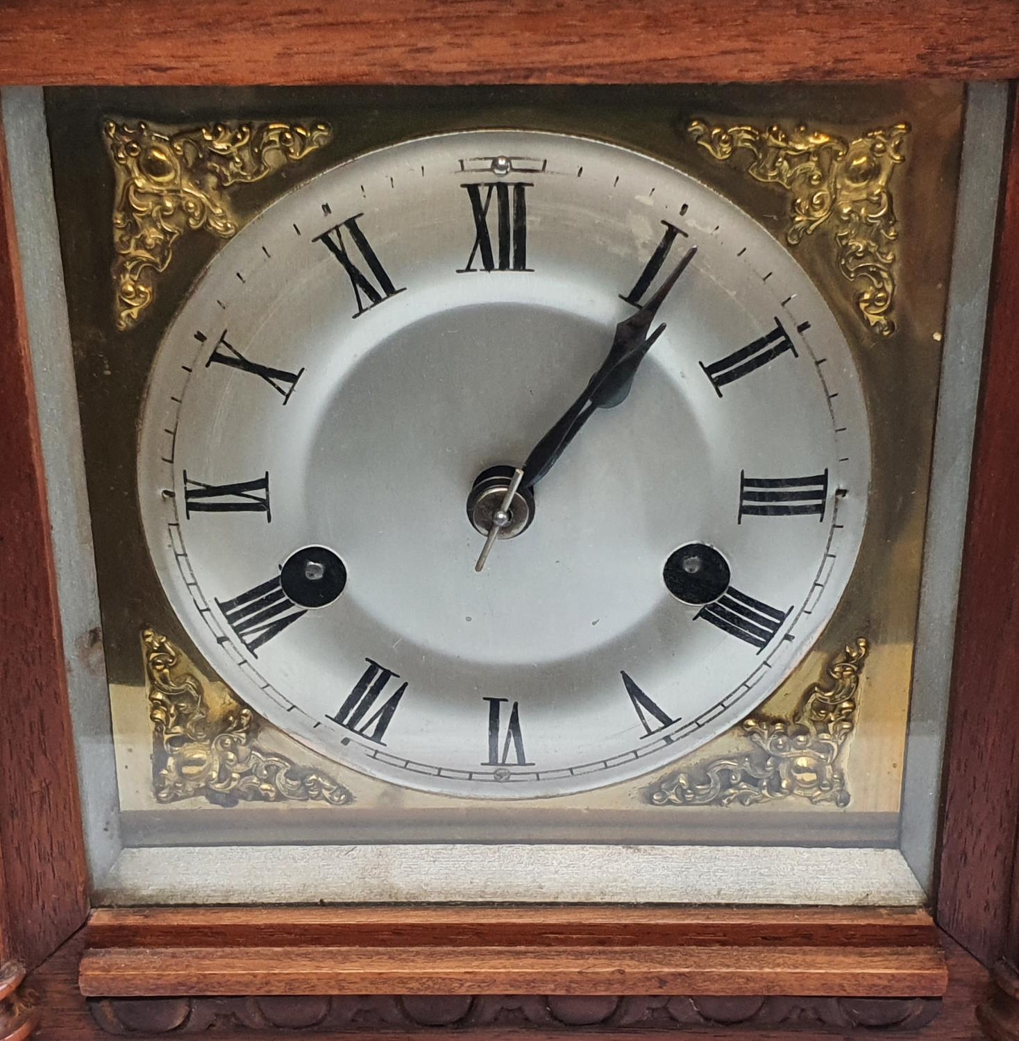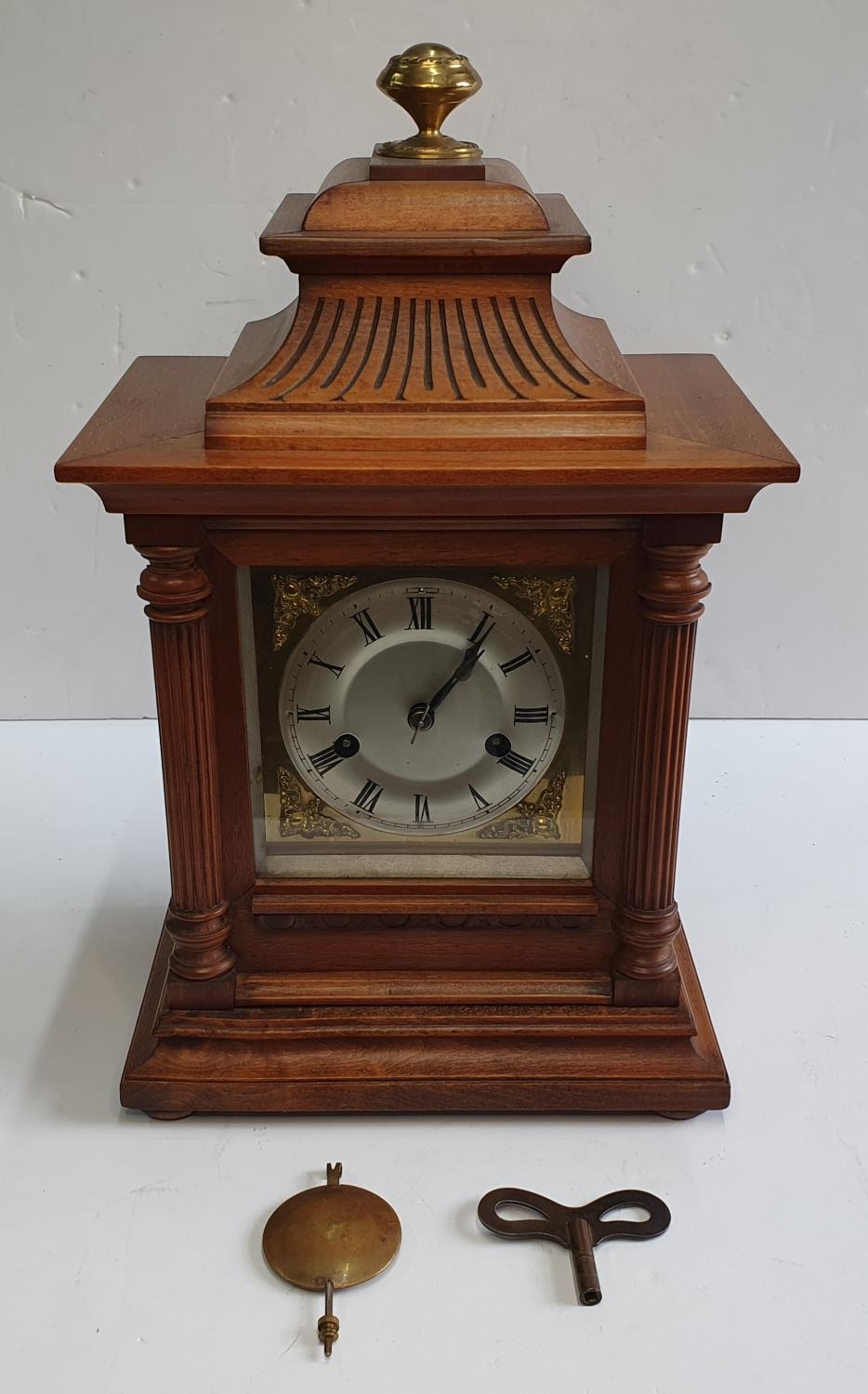Fine quality antique hardwood mantle clock compete with pendulam and keys