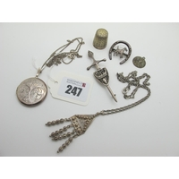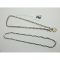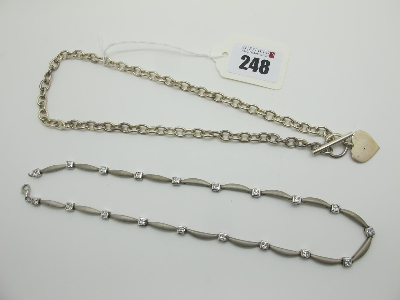 A Modern Necklace, composed of shaped satin finish links and square collet set highlights, stamped "925"; together with a belcher link necklace with T-bar and loop fastener. (2)
