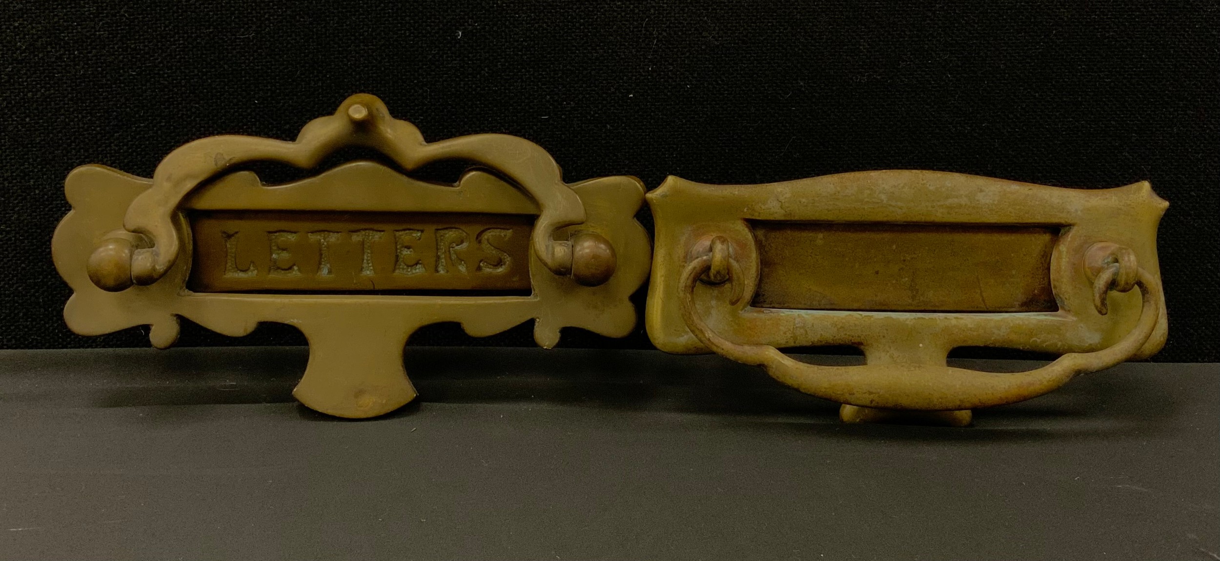 An Art Nouveau brass letterbox cover and knocker plate, approx 10cm high, 21cm wide another 9cm x 19cm (2)