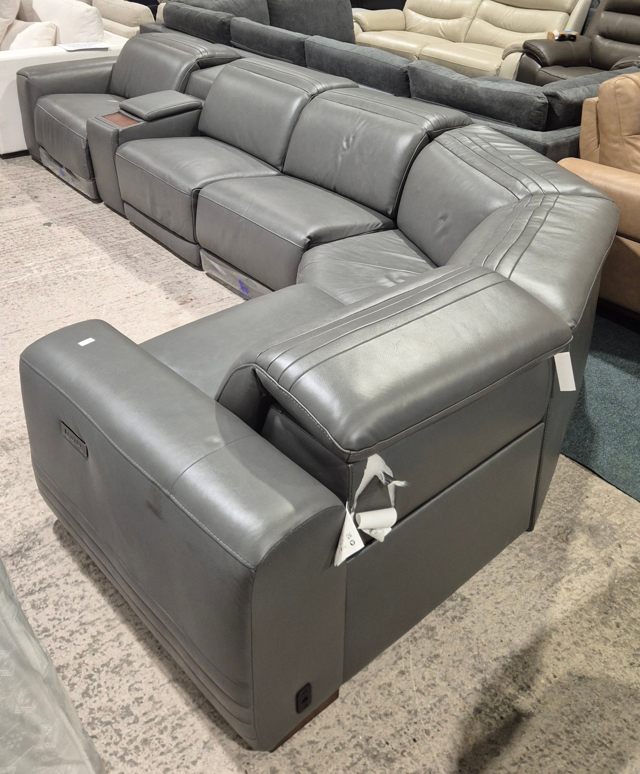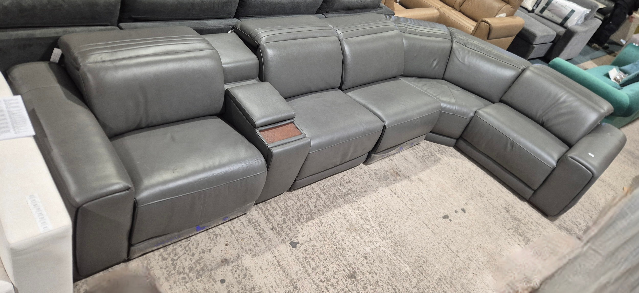 An Aiden & Ivy Karson 6 piece dark grey leather sofa (marked/torn) original RRP £1833.33 + VAT (4245-17) *This lot is subject to VAT