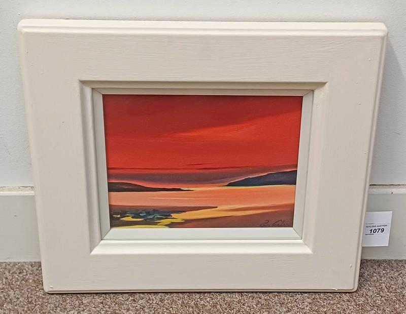 PAM CARTER - (ARR) 'ISLAND SUNSET' SIGNED FRAMED OIL ON CANVAS 21.5 CM X 28 CM