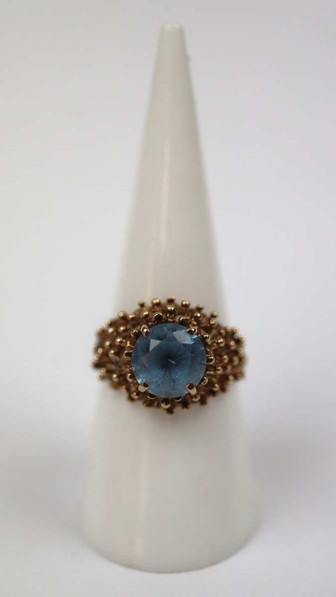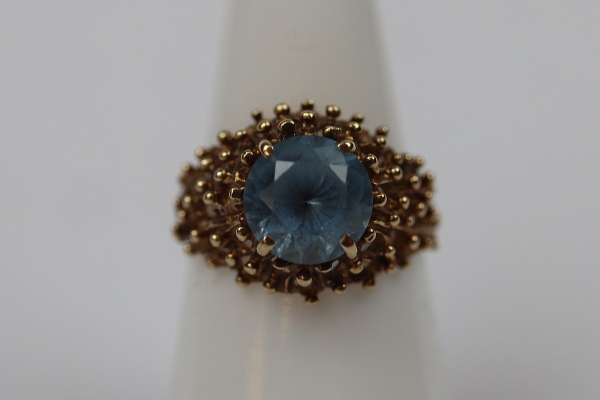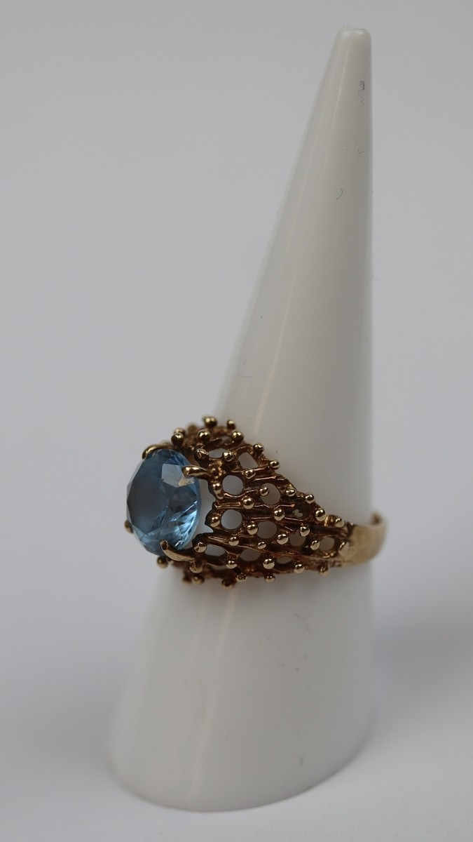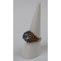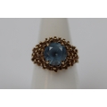 9ct gold blue topaz ring - Size N - Approx 3.5g