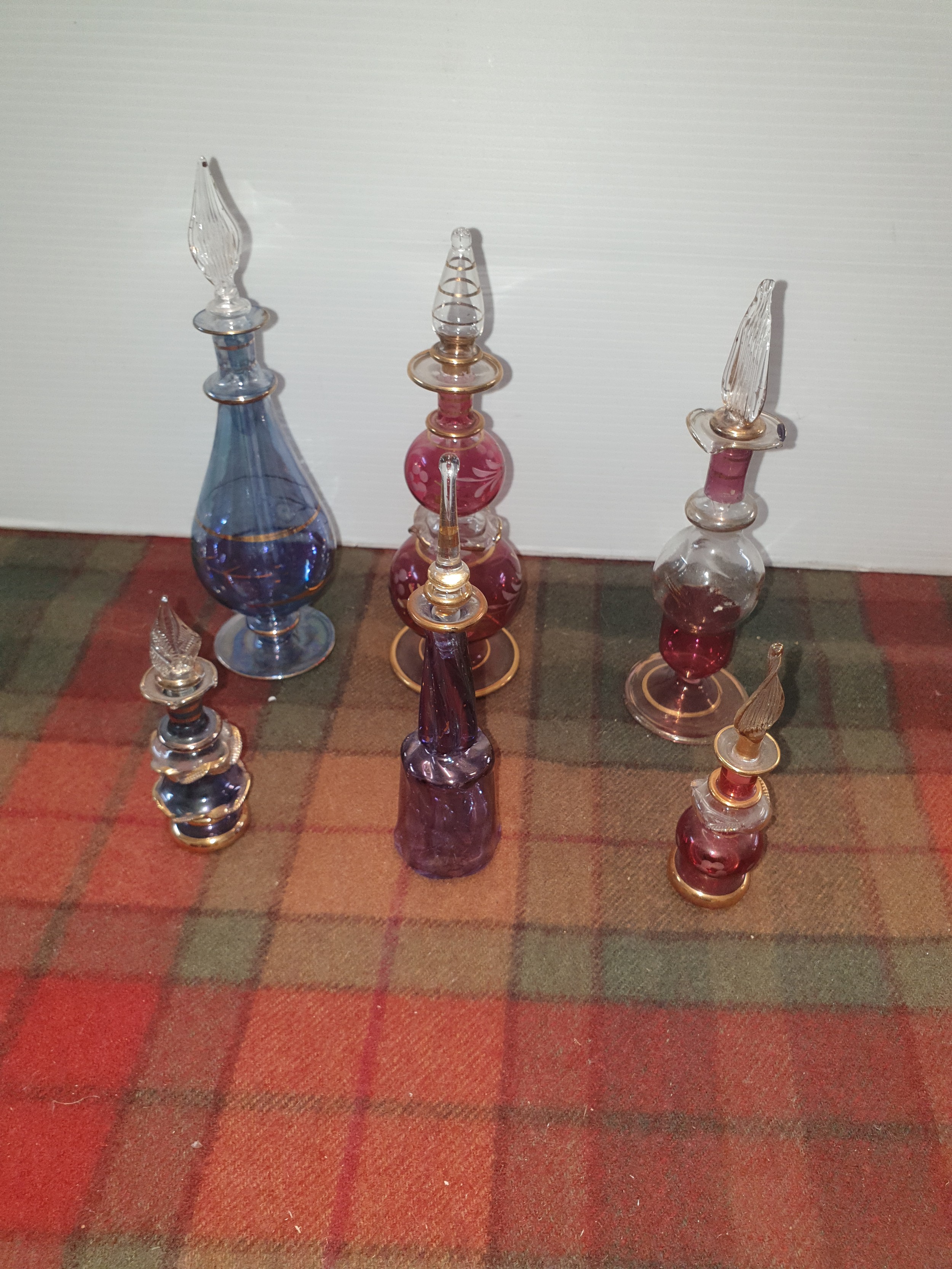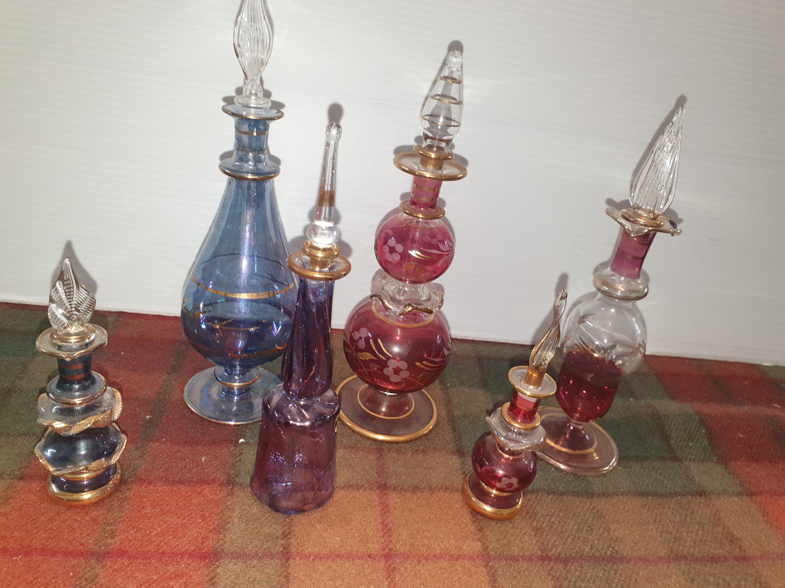 6 Assorted Beautiful Perfume Bottles Complete With Stoppers