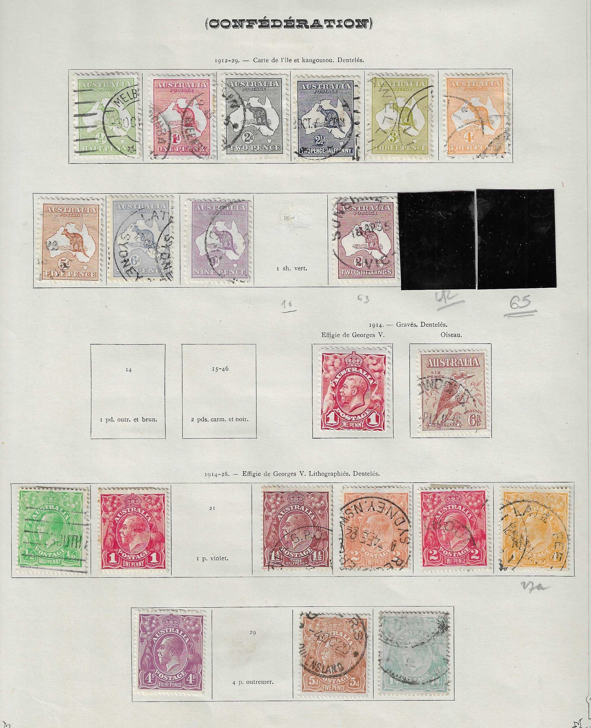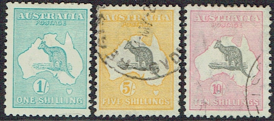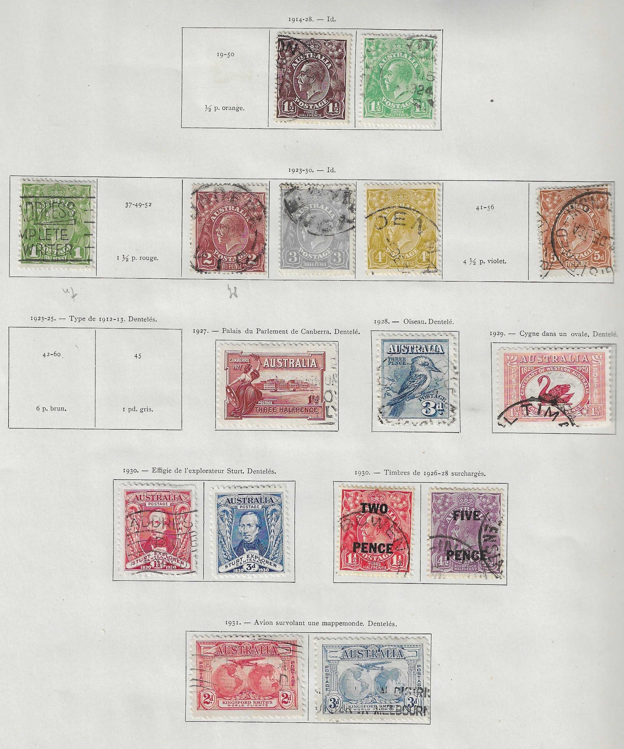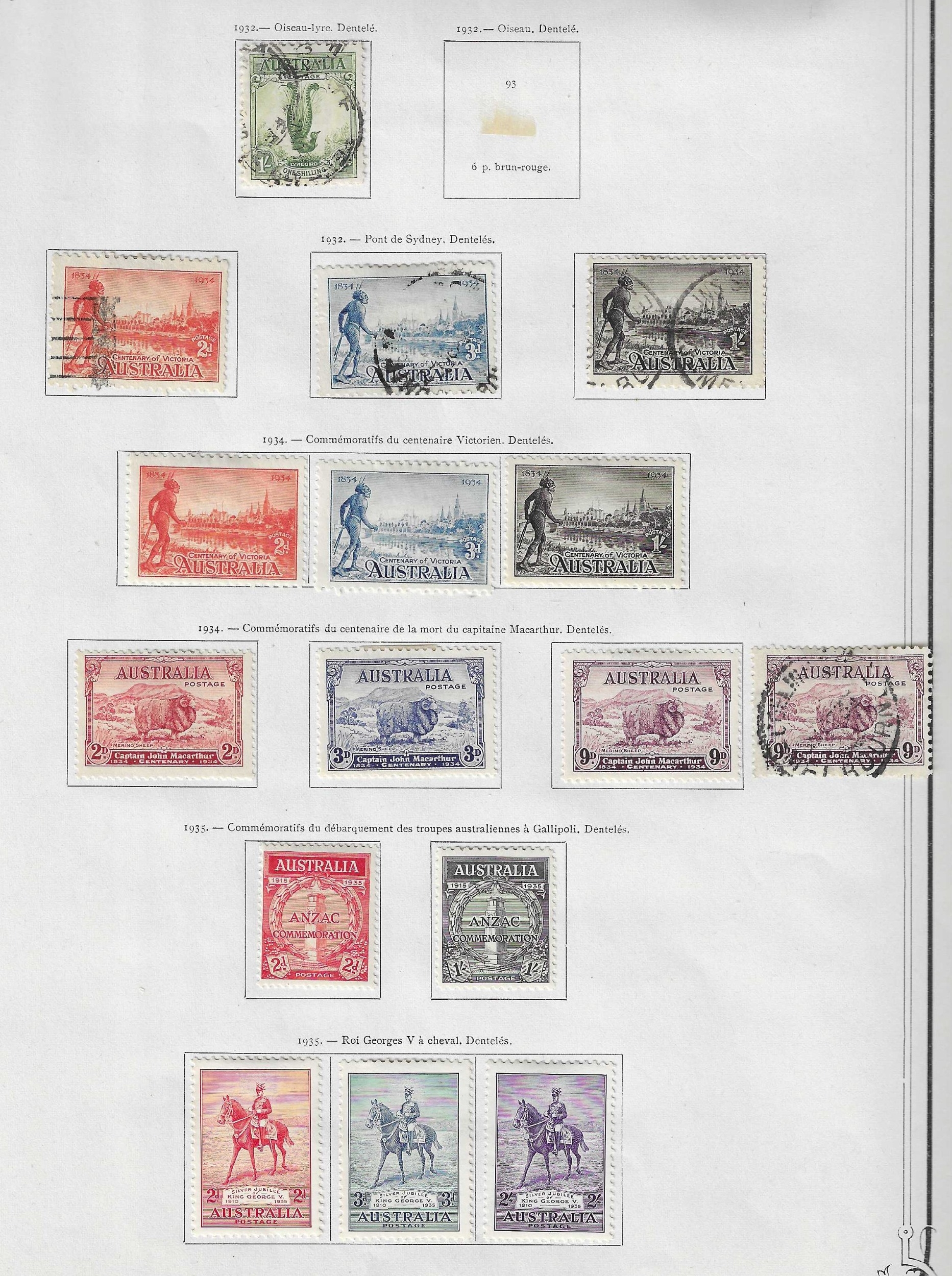 AUSTRALIA - Collection of small ranges on Yvert printed leaves with three better stamps noted 1916 Narrow Crown 1s blue-green mint (Cat £70), 5s grey and yellow very fine used (SG 42 Cat £120), 1932 C of A 10s grey & pink very fine used cds (SG 136 Cat £160), other Roos to 2s maroon, GV heads to 1/4d used, 4d violet mint, 1935 SJ set mint, 1934 Macarthur set 3 mint, Centenary set 3 mint, Officials 1929 Air OS perfin mint, nice little lot. (c80).