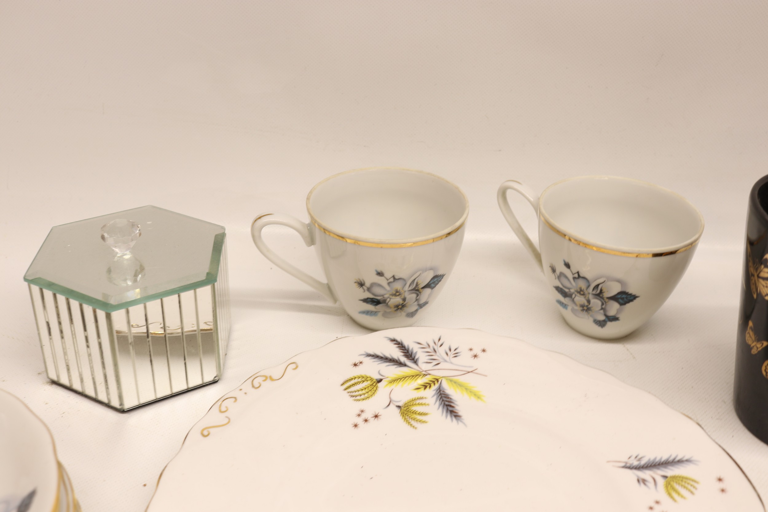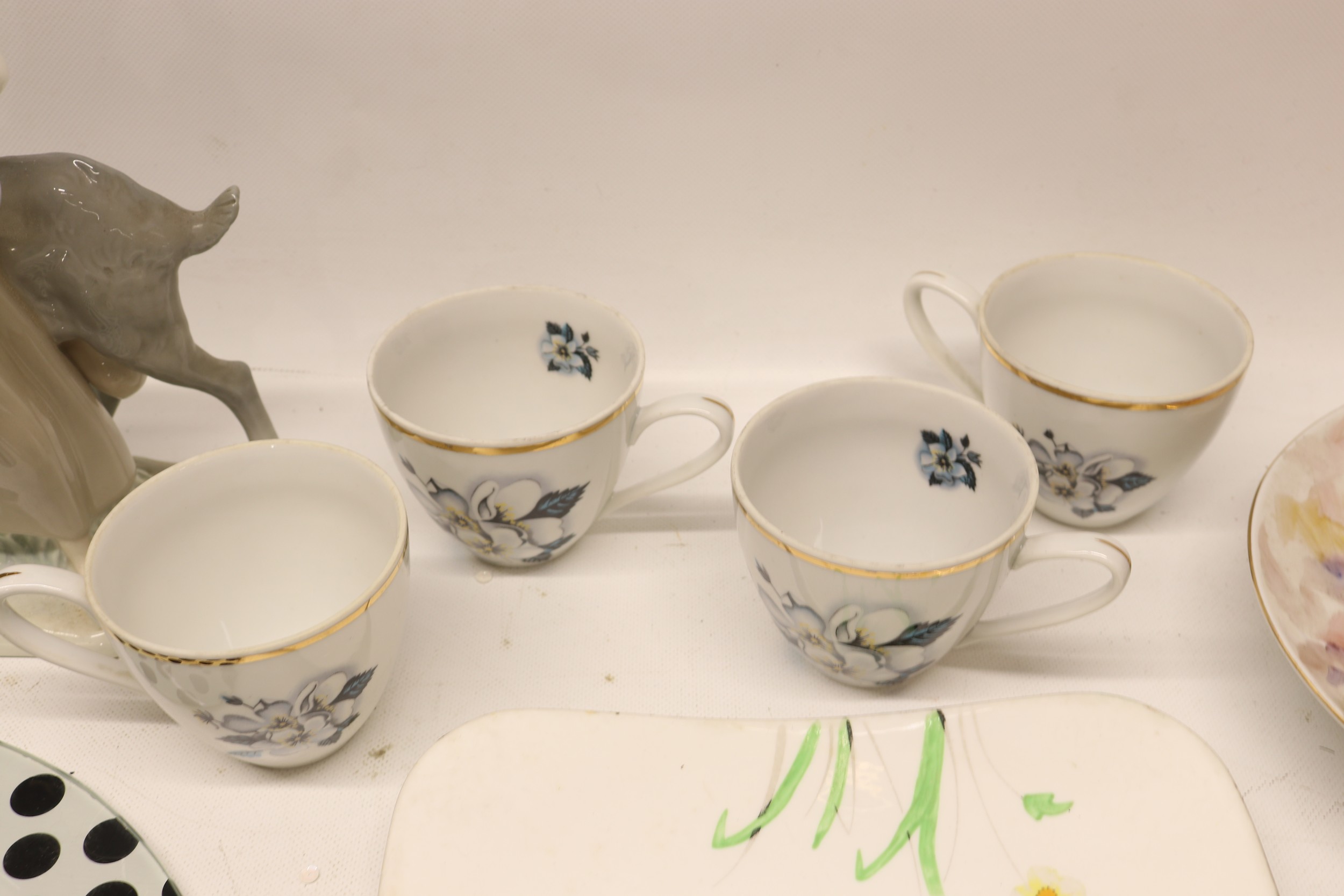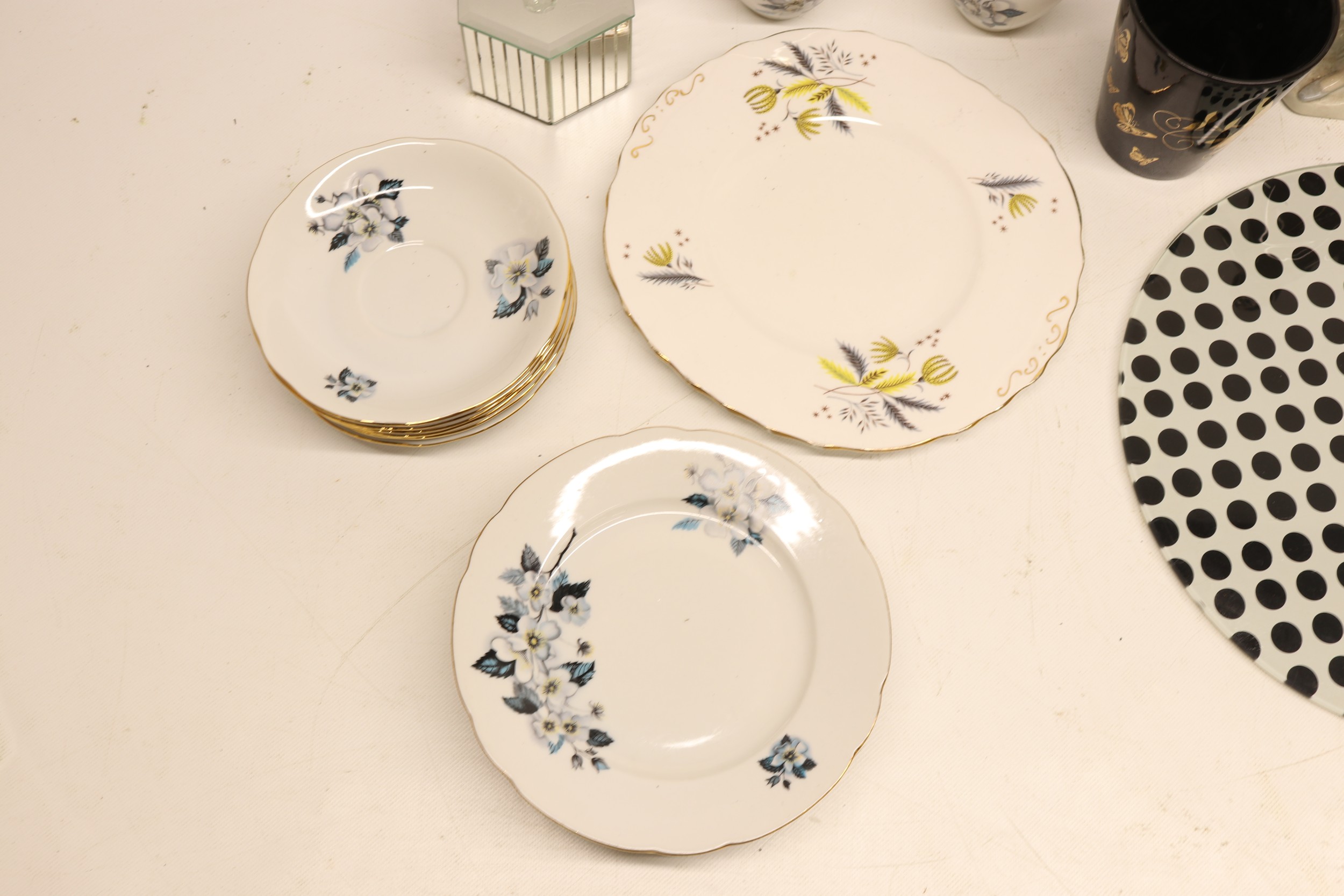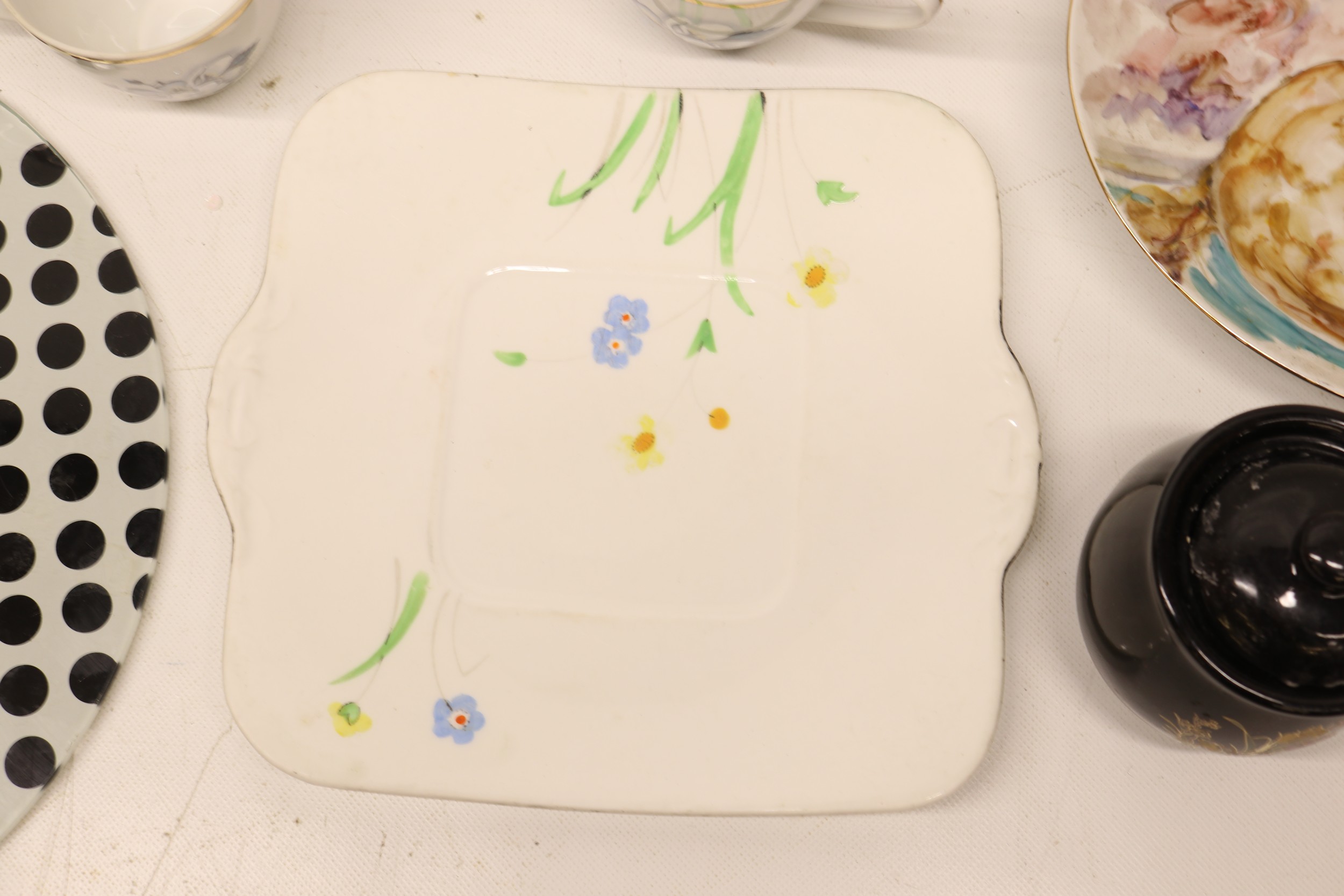 The Peter Shilton Collection: Assorted collection of ceramics/general ware incl. cups and saucers, serving plates, hand-painted horse-racing themed plate etc., Qty 1 box