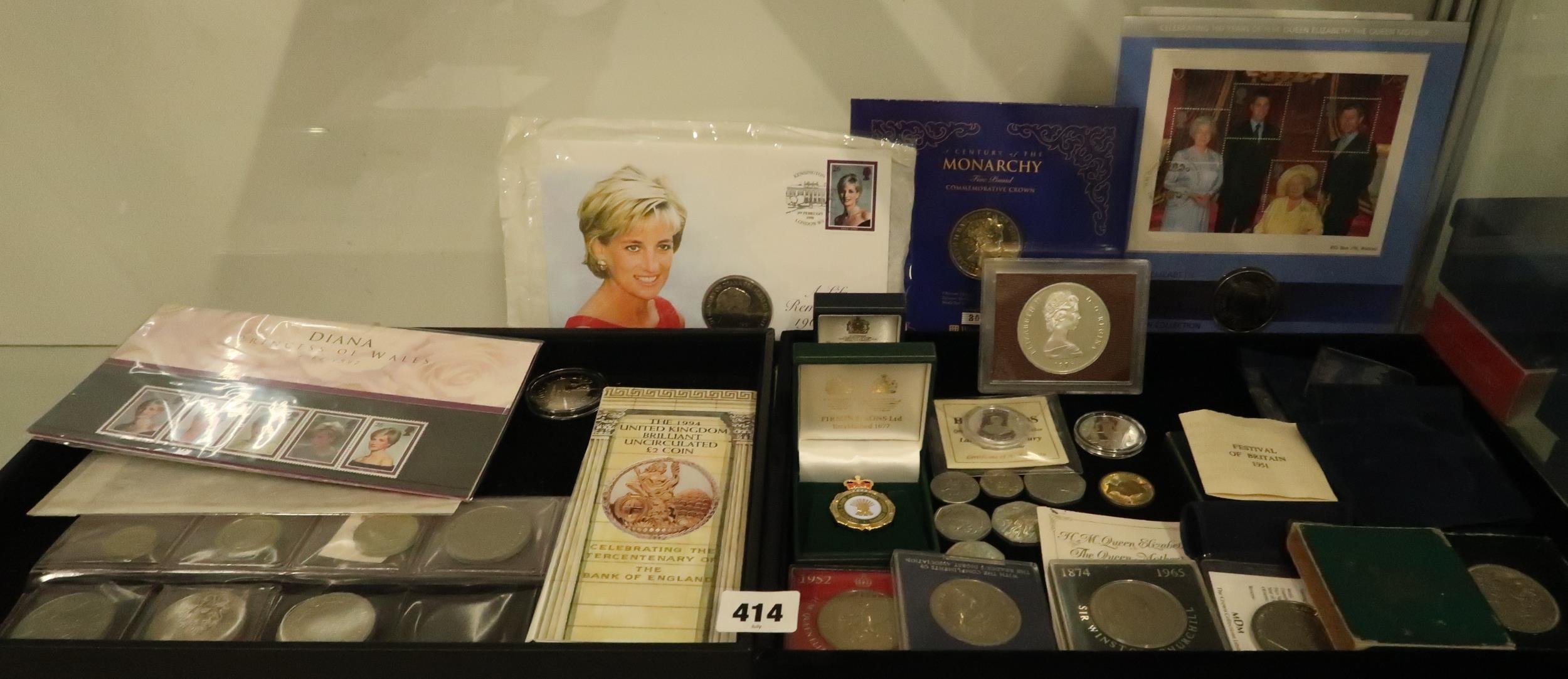 A Selection of Silver & Commemorative coinage to include Seven five pound coins, Elizabeth II Silver .925 Turks and Caicos Islands 50 Crowns, Sir Bobby Charlton Silver .925 Coin, Queen Mother Silver .925 Barbados One Dollar and assorted commemorative.
