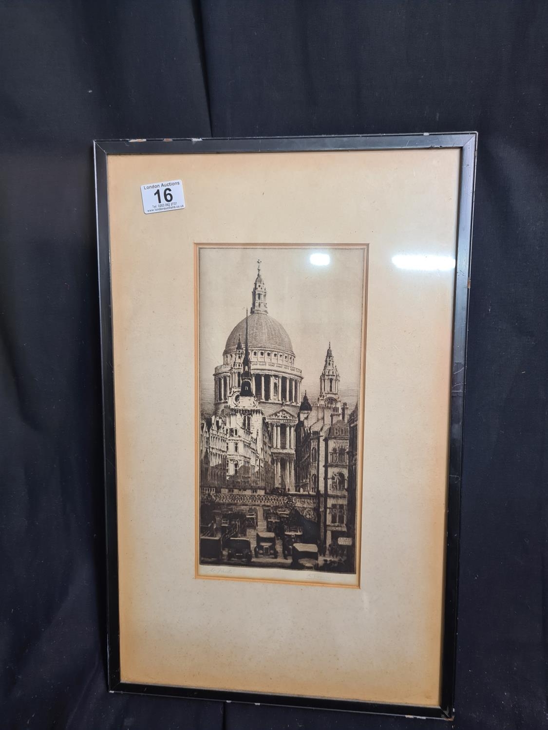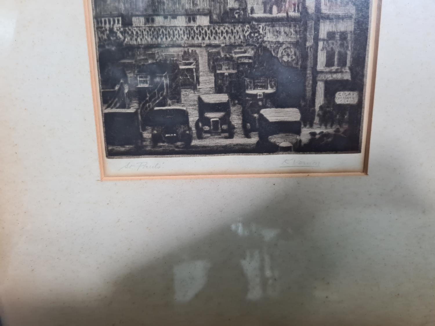 Framed 1920s Etching of St Pauls Signed K Vernon (21"x13")