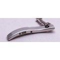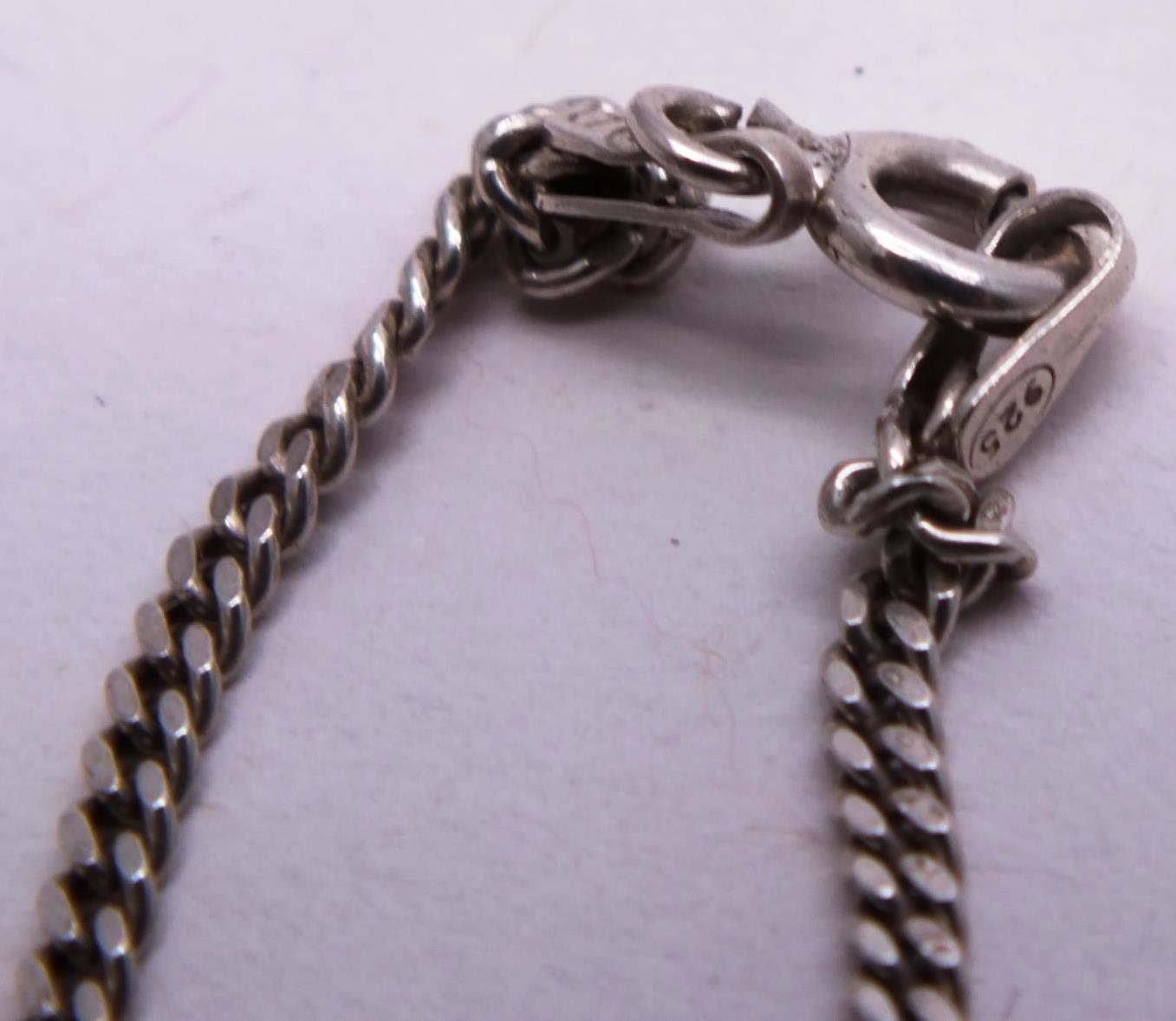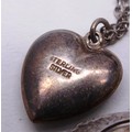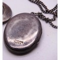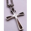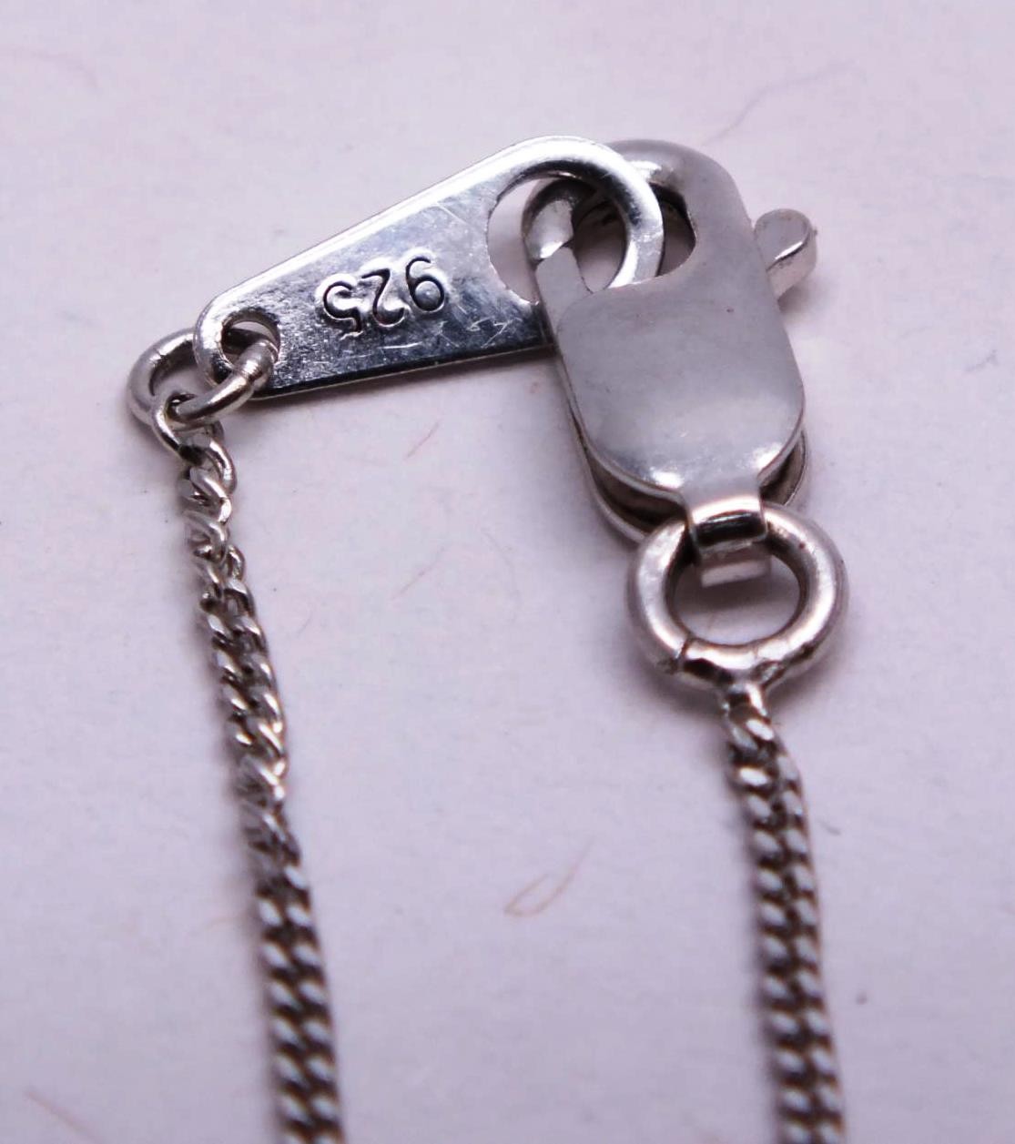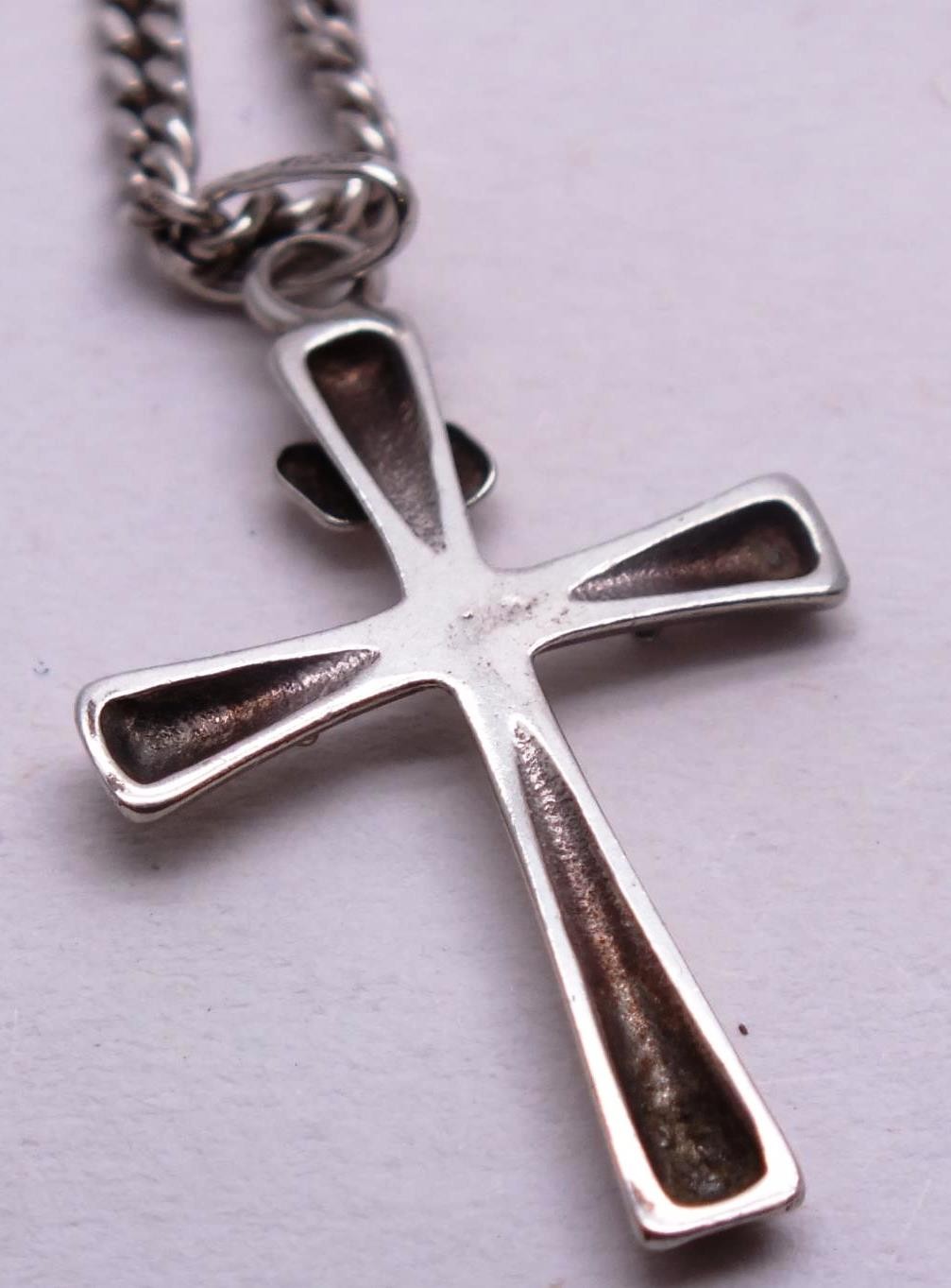 SIX STERLING SILVER NECKLACES, LOCKETS, CROSSES ETC.