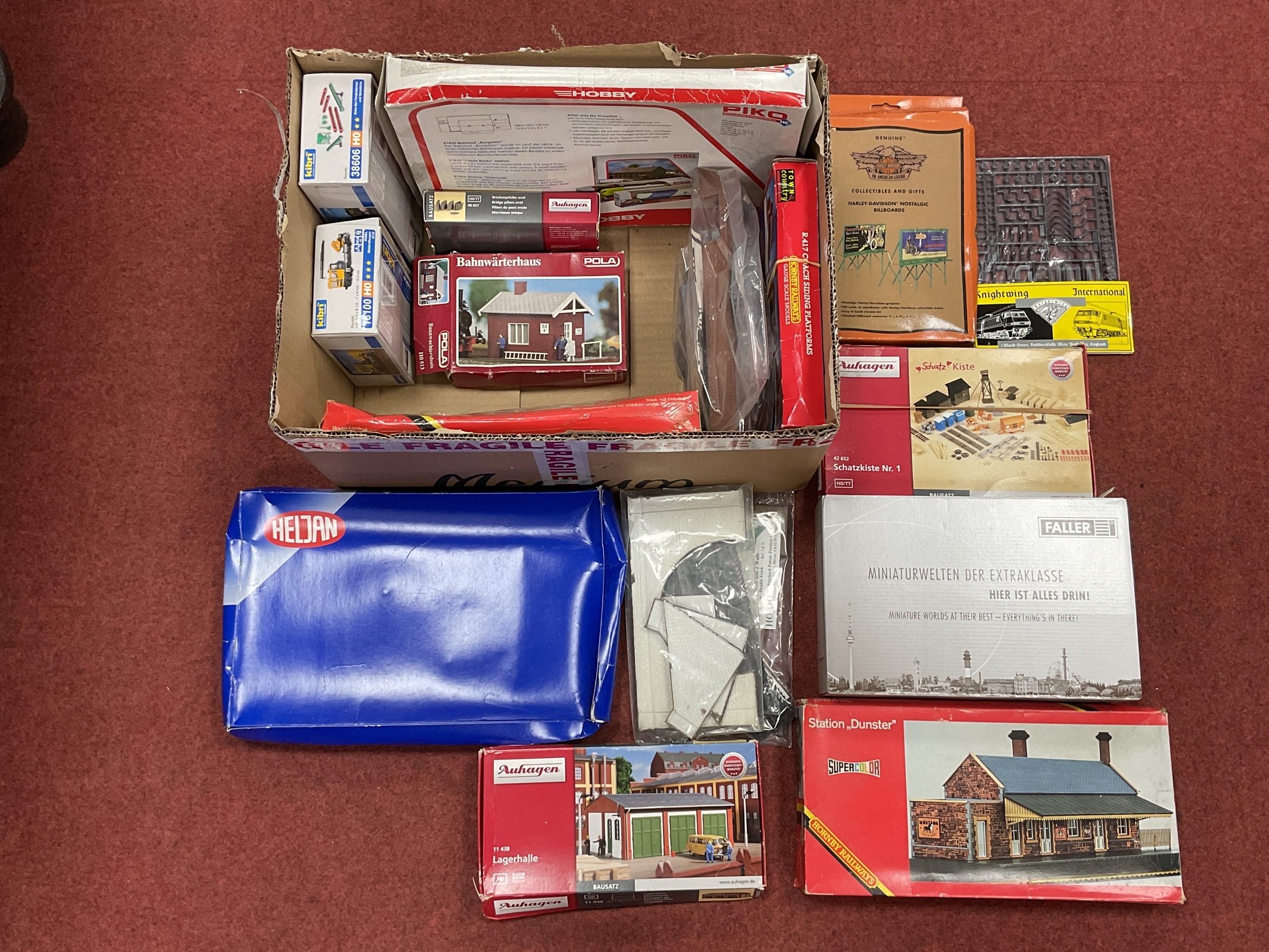 A quantity of 00/HO building kits by Kibri, Faller, Heljan, Bachmann and others; all unchecked.